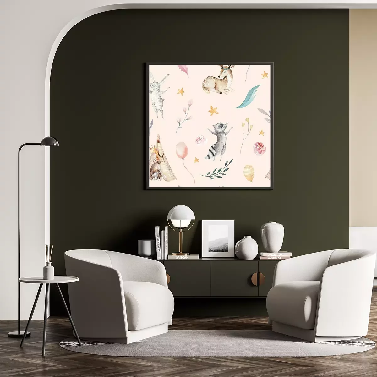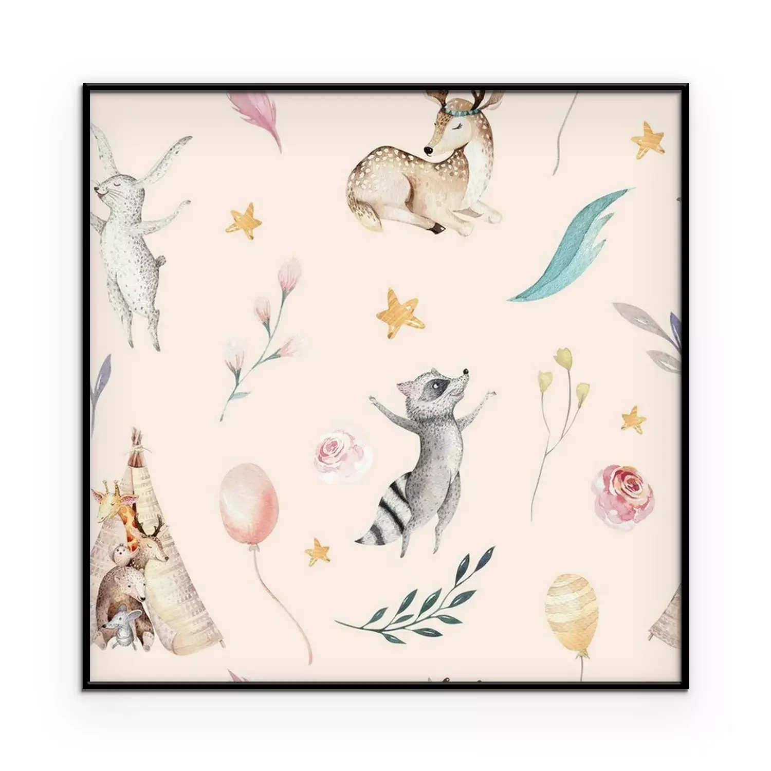 Aquarel boho bosdierenProbleemloze bezorging verzorgd door vertrouwde vervoerders