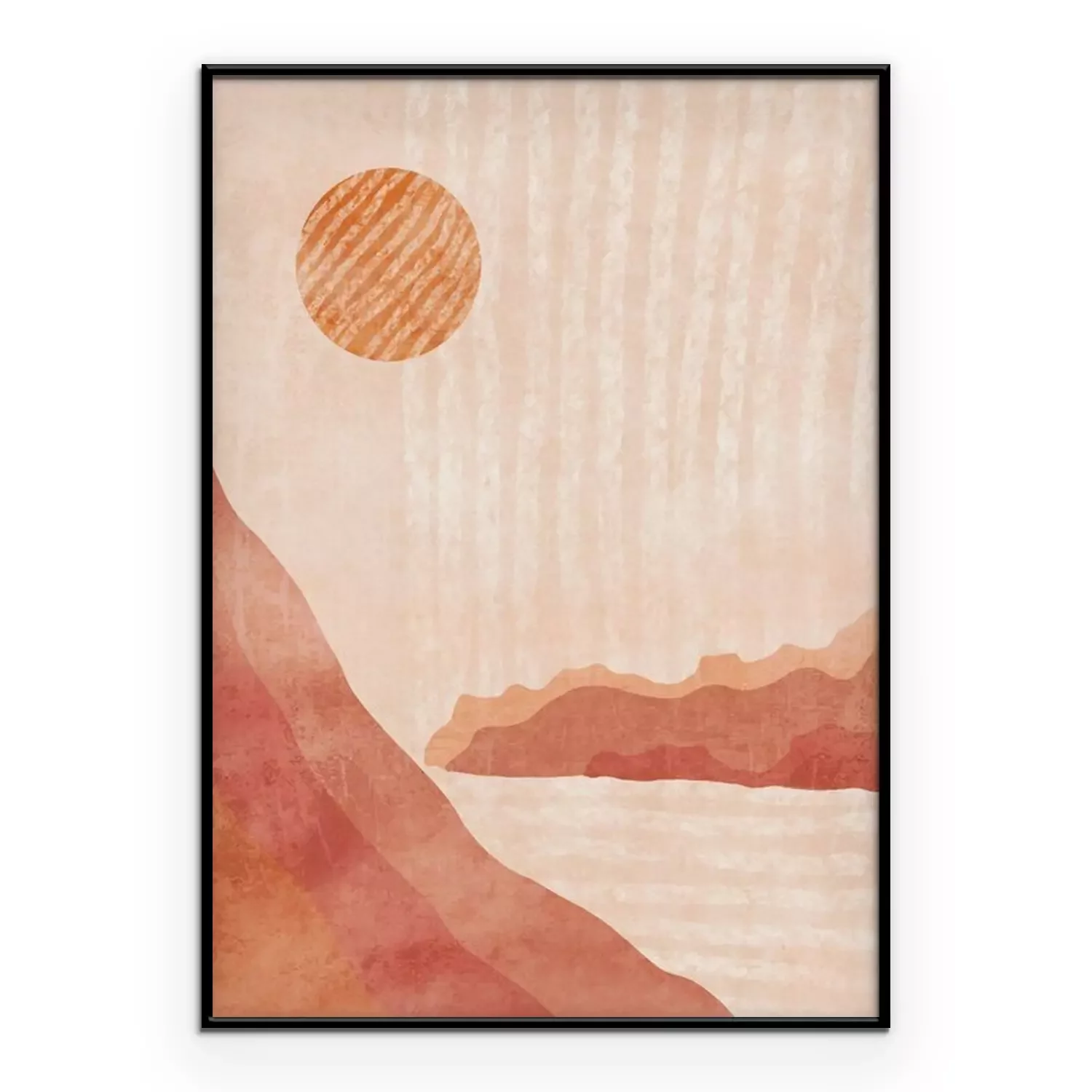 Poster: Boho Print. Abstract Clifs with Sea Background. Terracotta Poster. Abstract Arrangements. Landscapes, mountains. Posters. Terracotta, blush, pink, ivory, beige watercolor Modern print set. Wall art