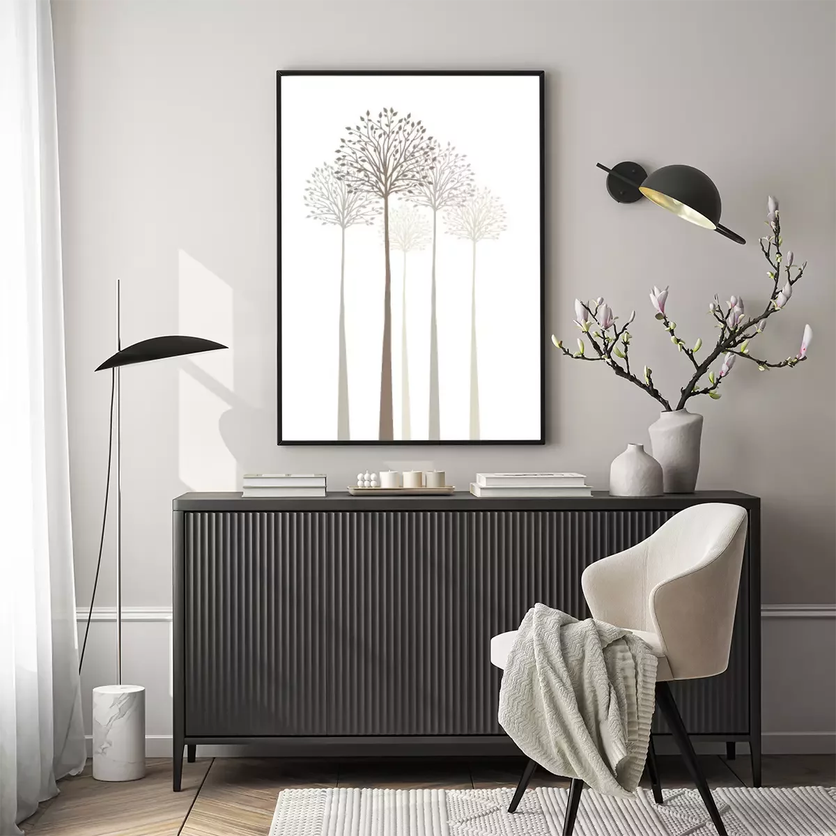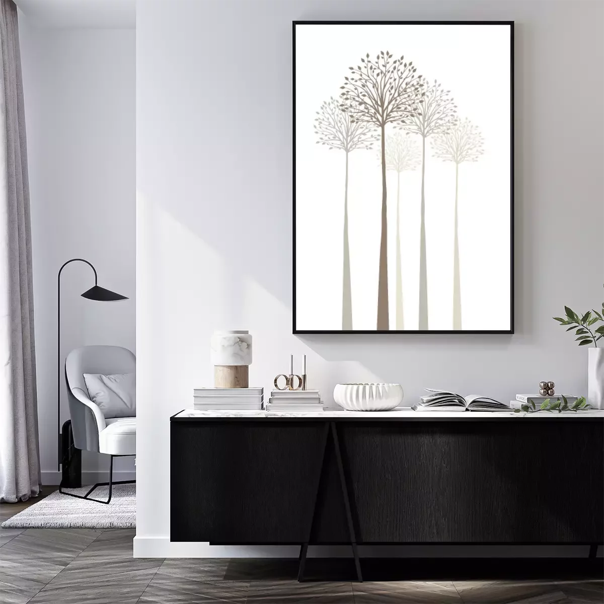 Poster: Bomen in mistige beige kleur