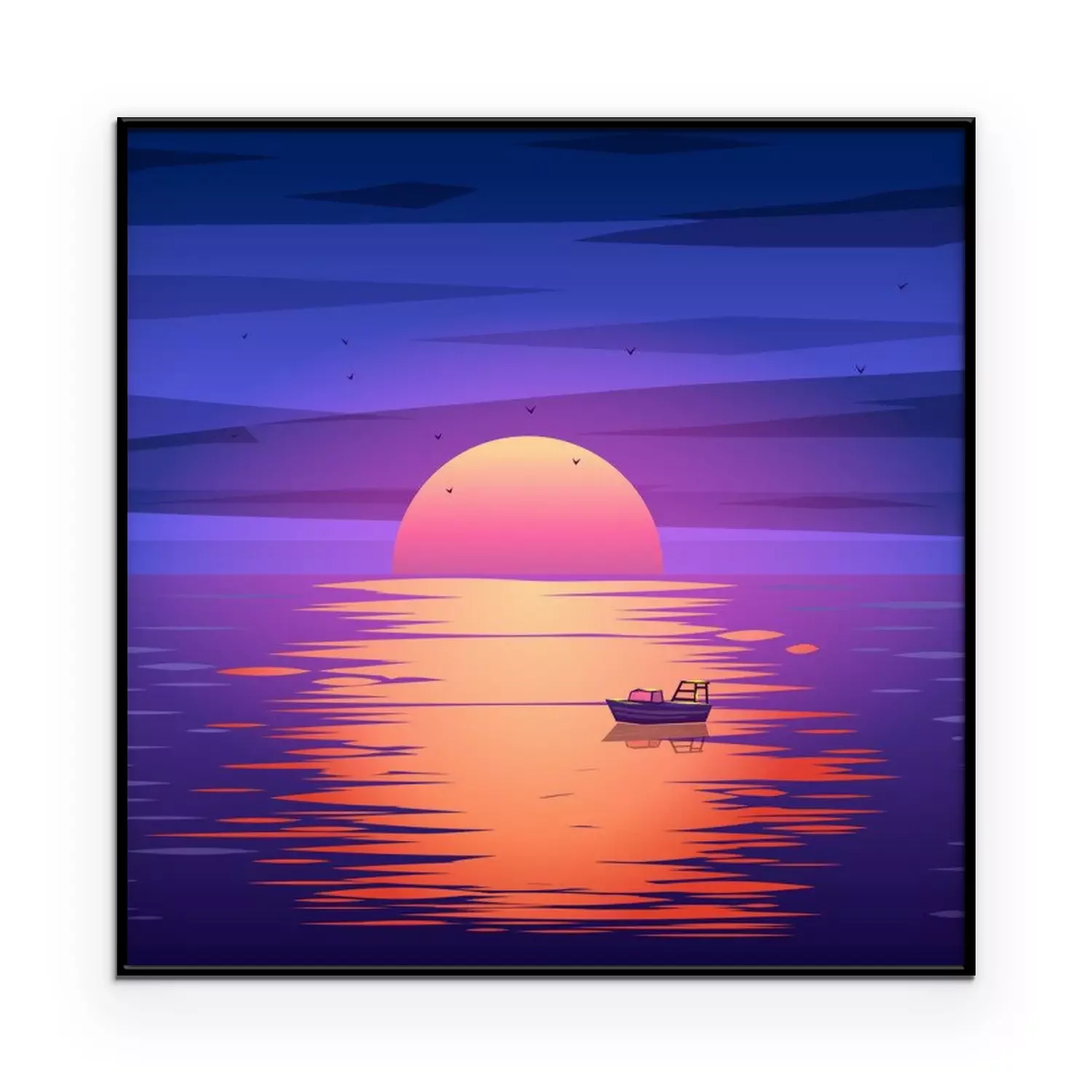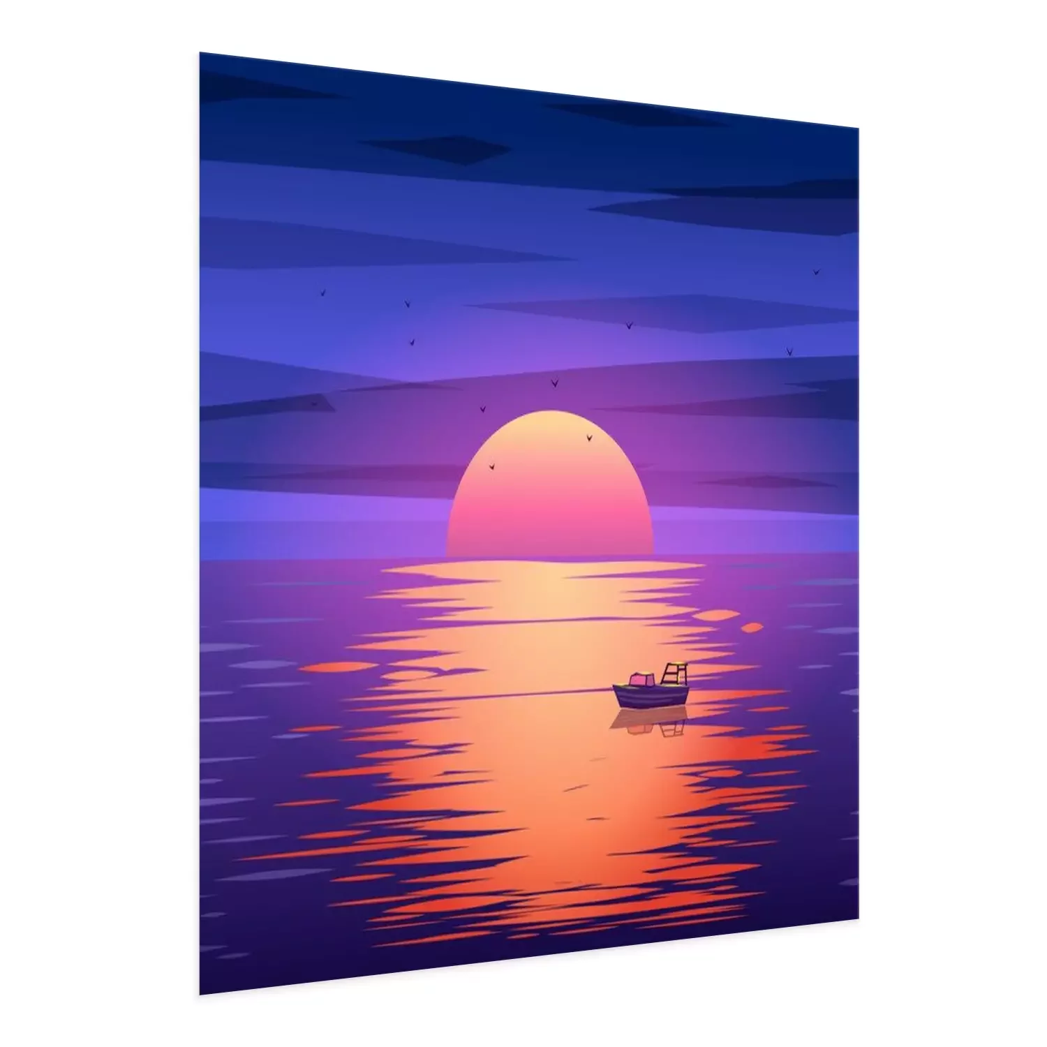 Poster Boot tegen een achtergrond van de ondergaande zon