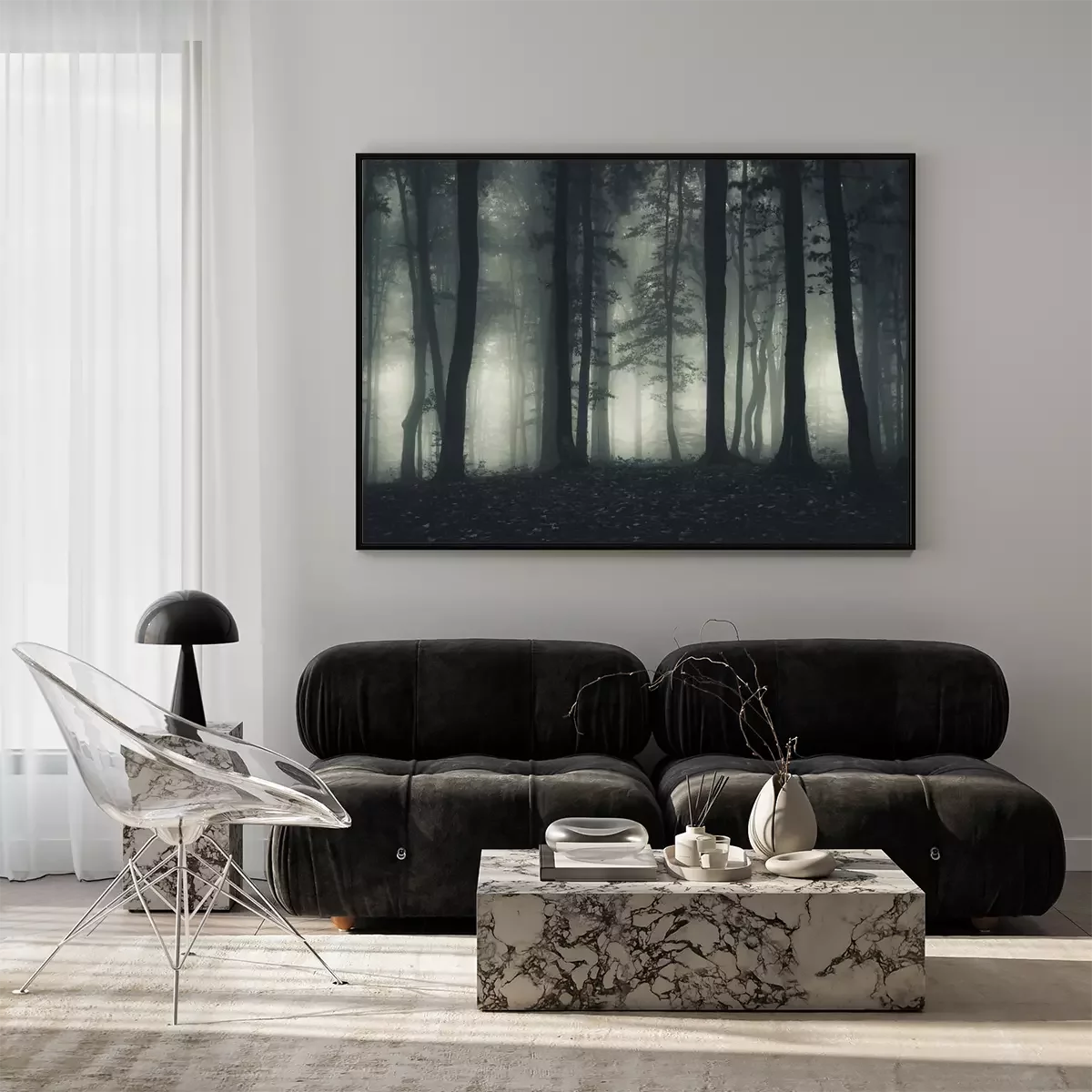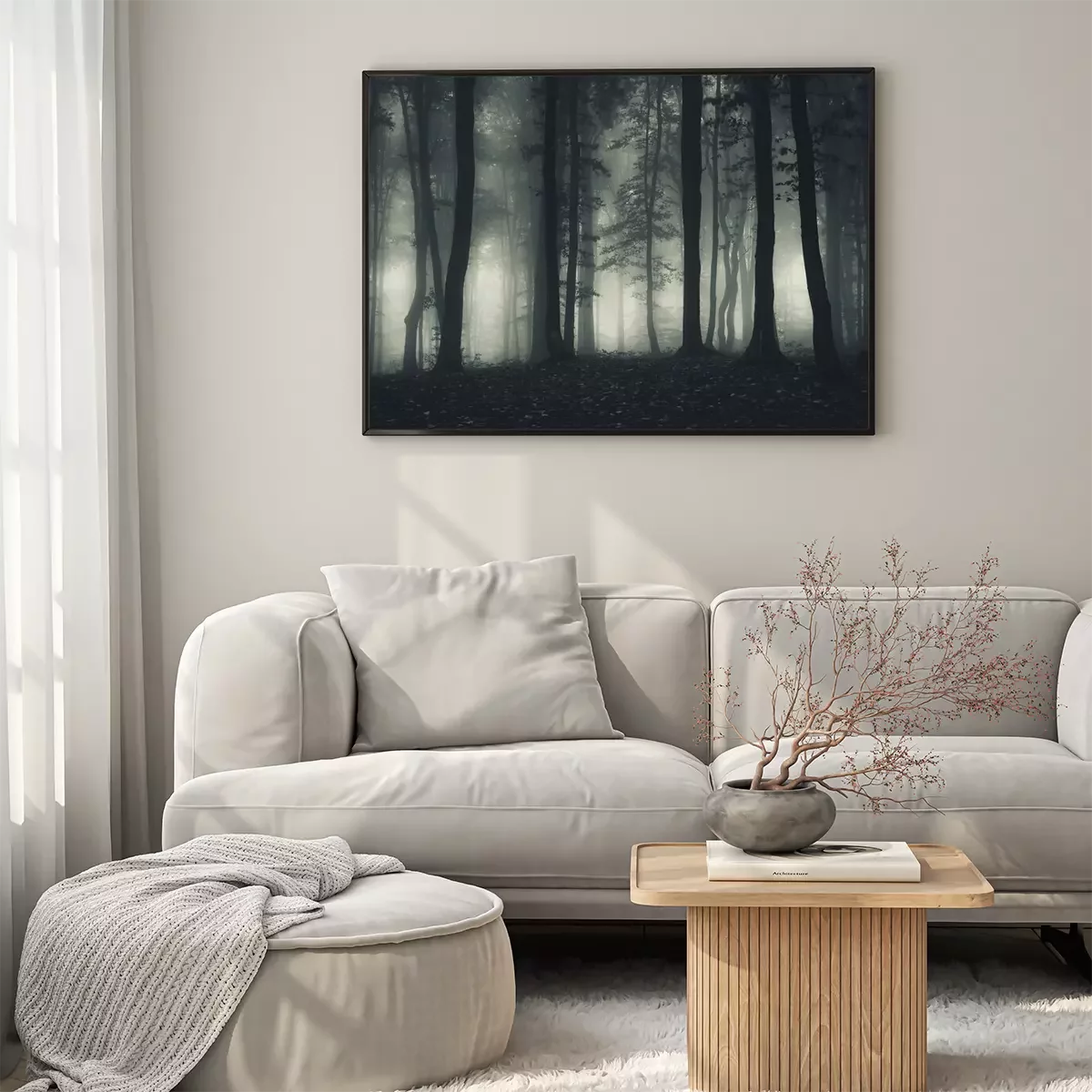 Poster: Bos in de mist 's nachts