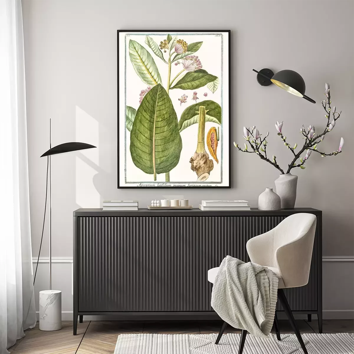 Gravure van een exotische plant in een groene lijst