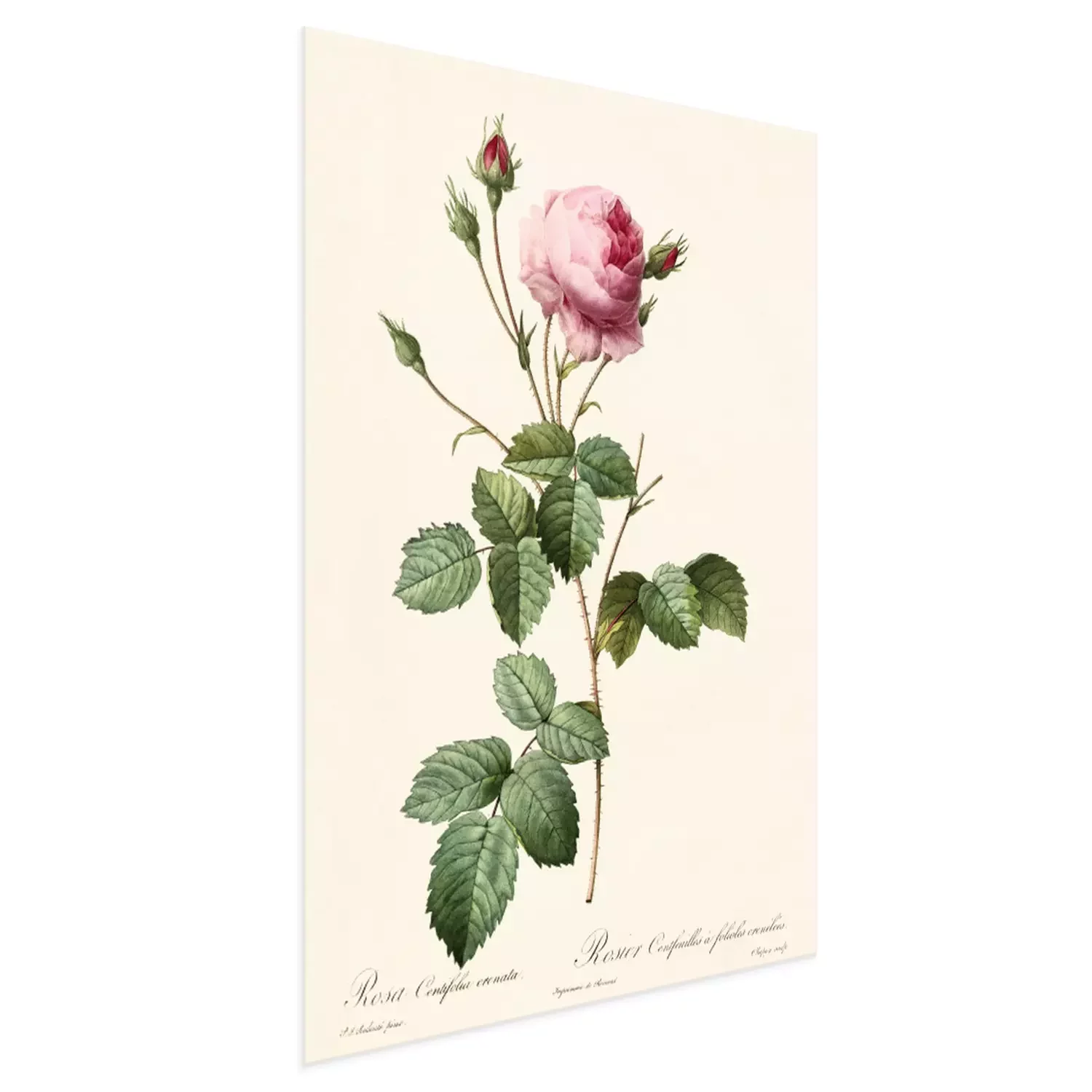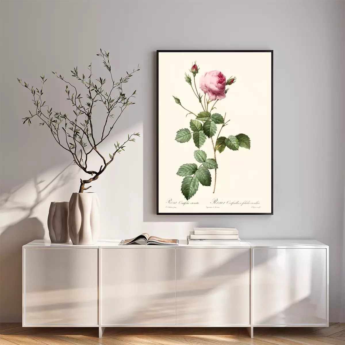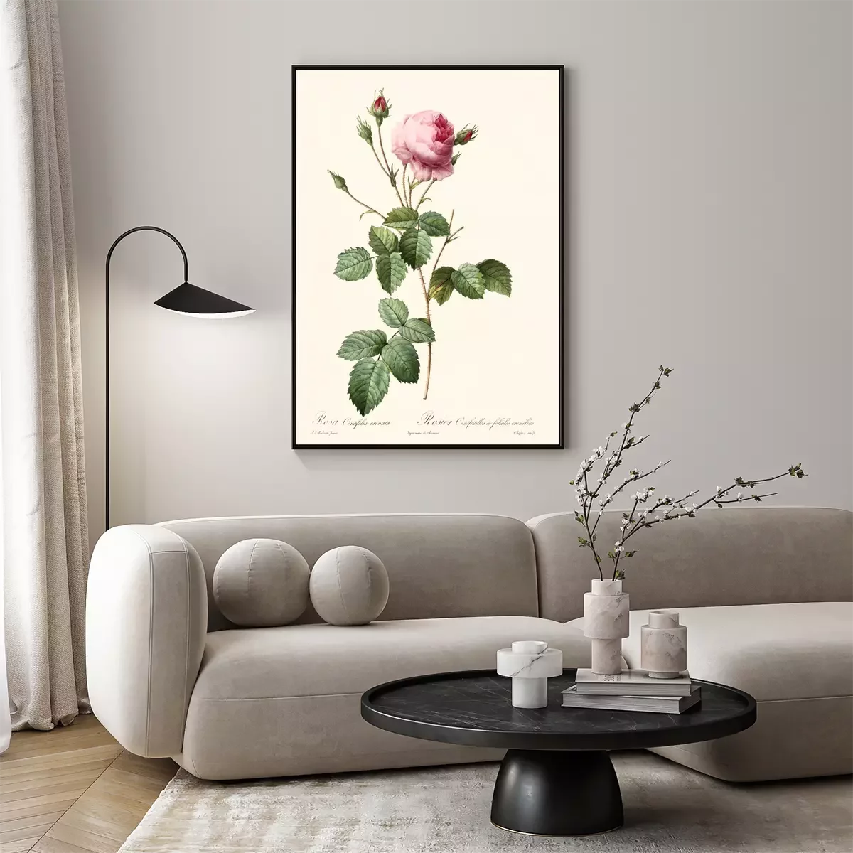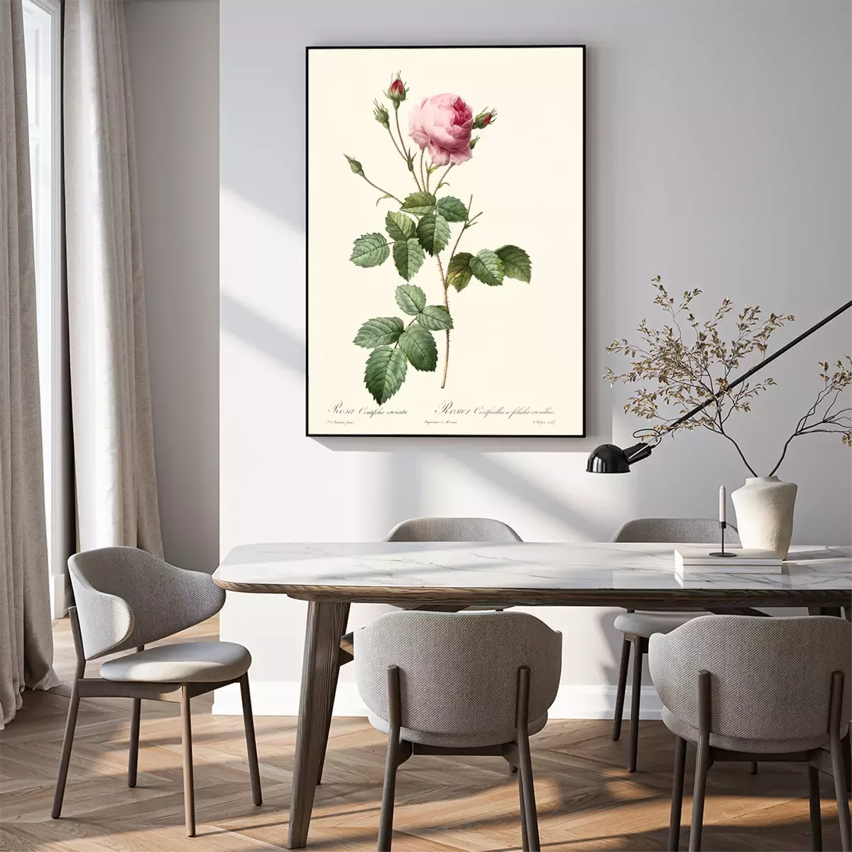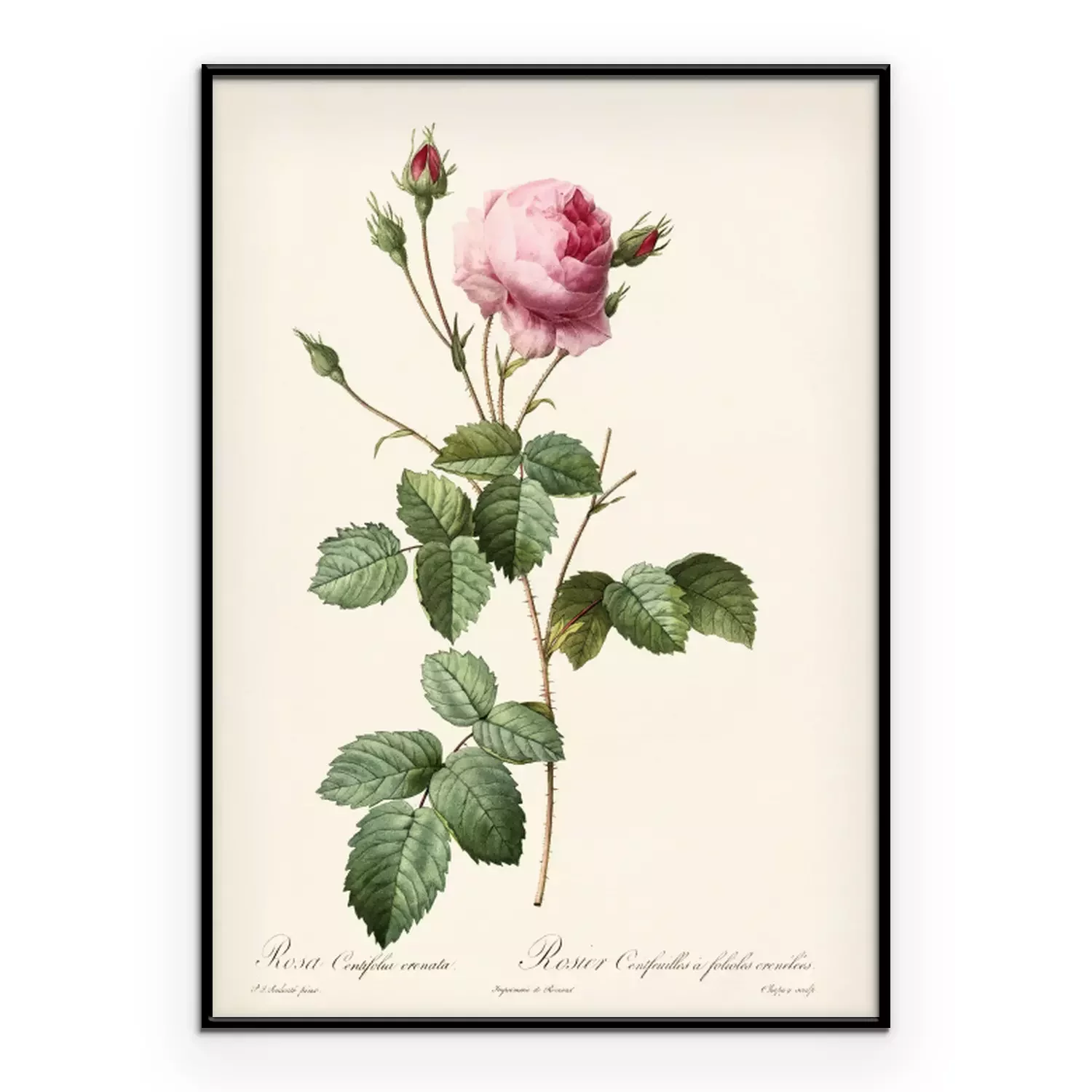 Poster: Botanische grafiek van een roze roos in retro stijl