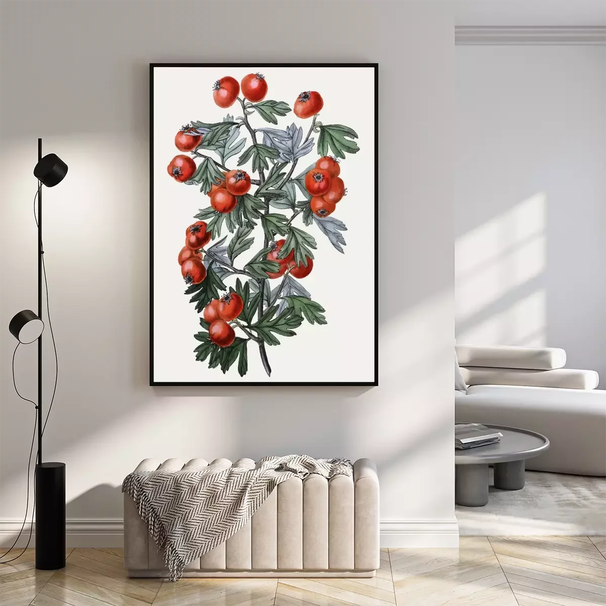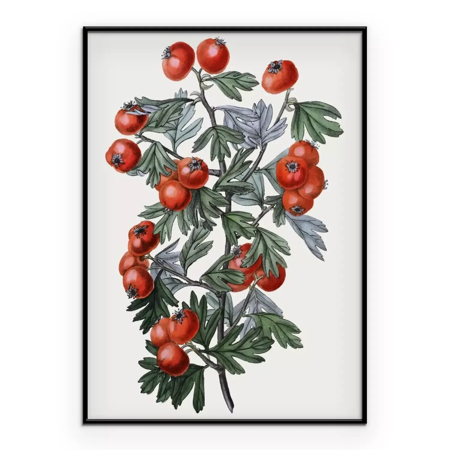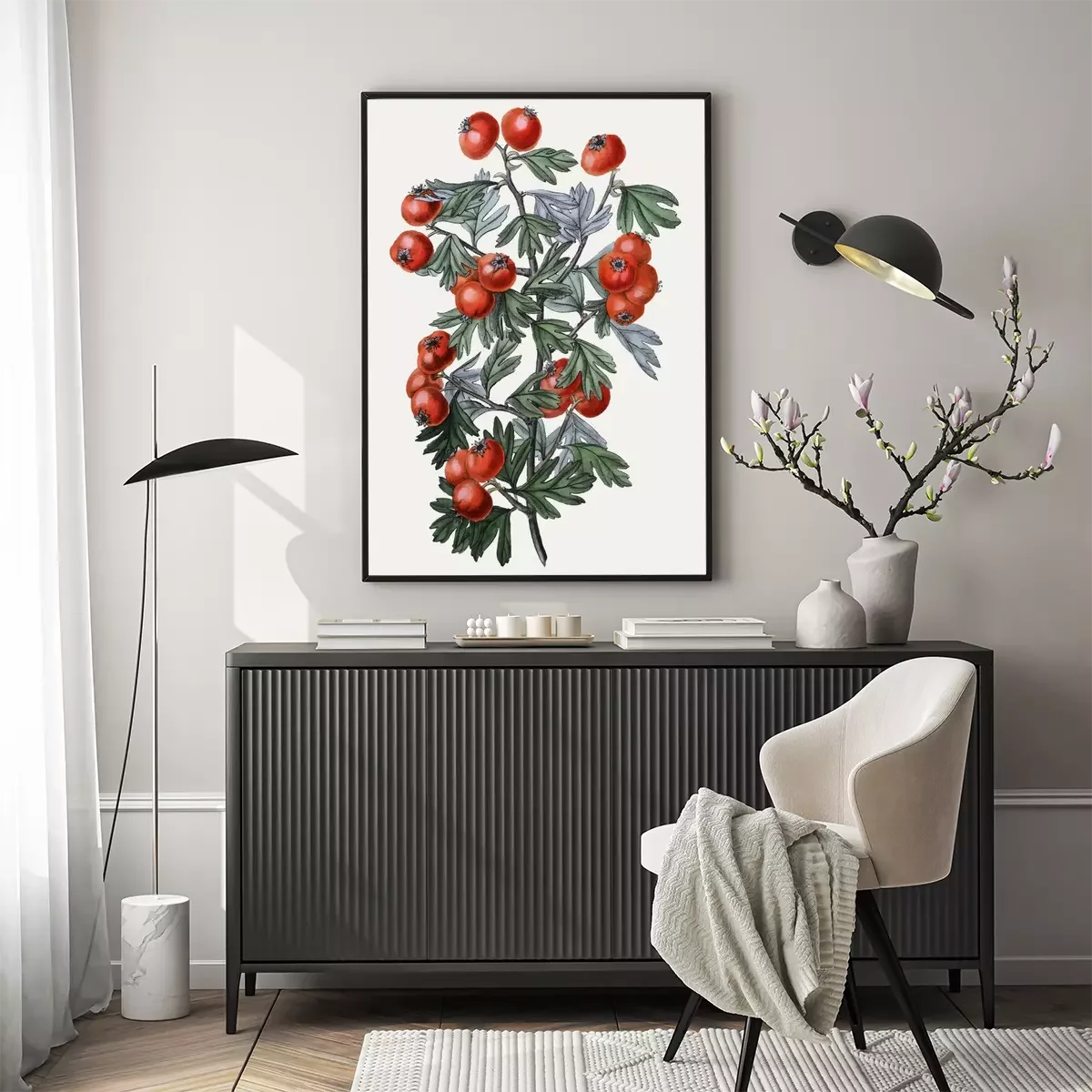 Takje van meidoorn met vruchten op een kleurrijke illustratie