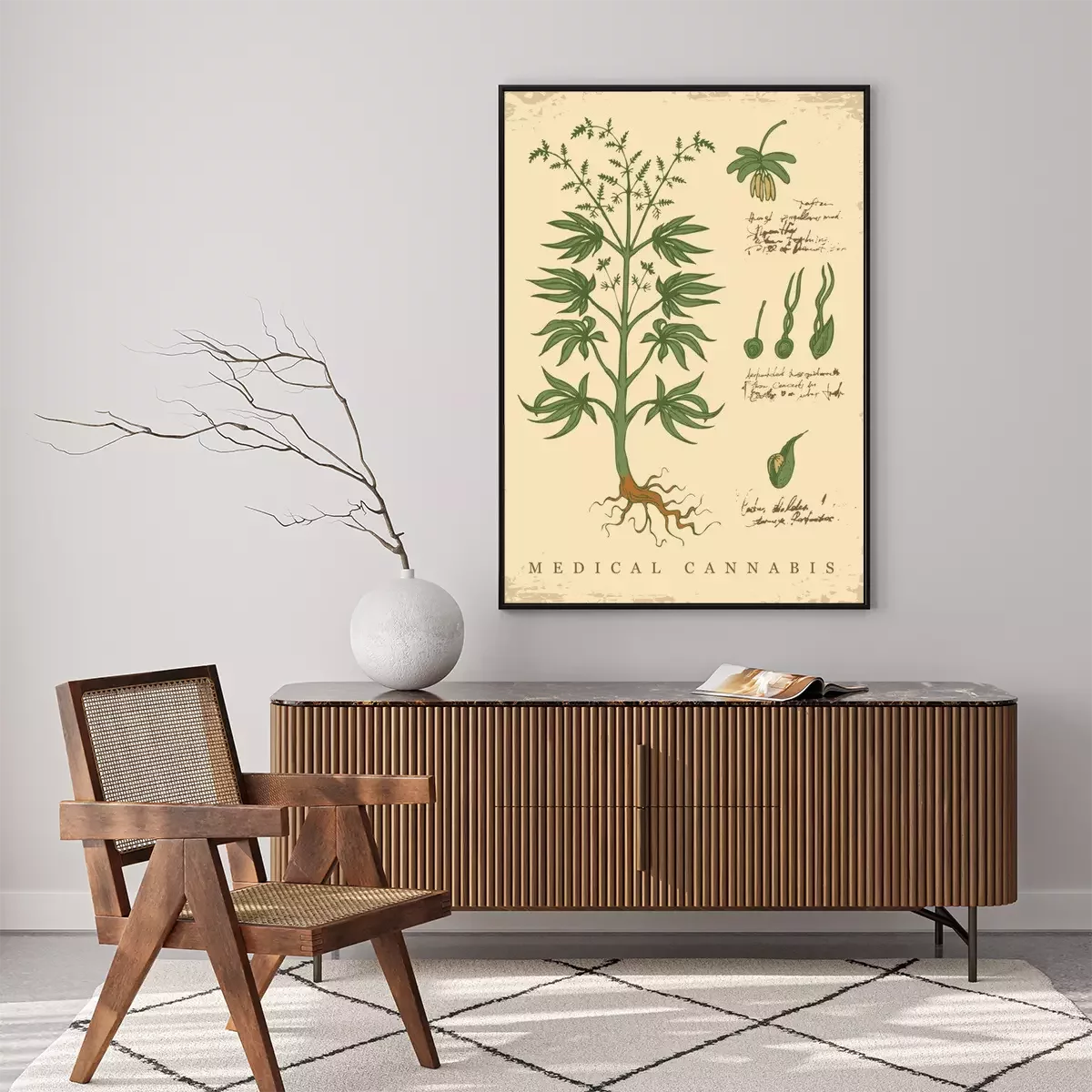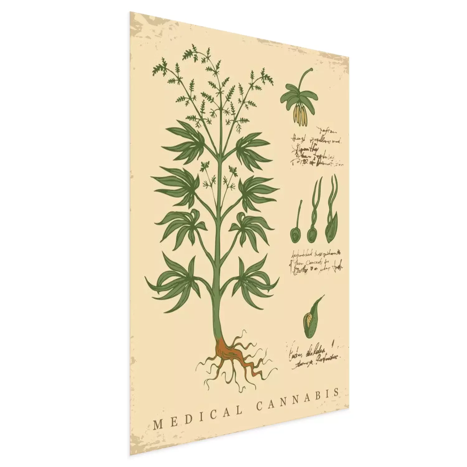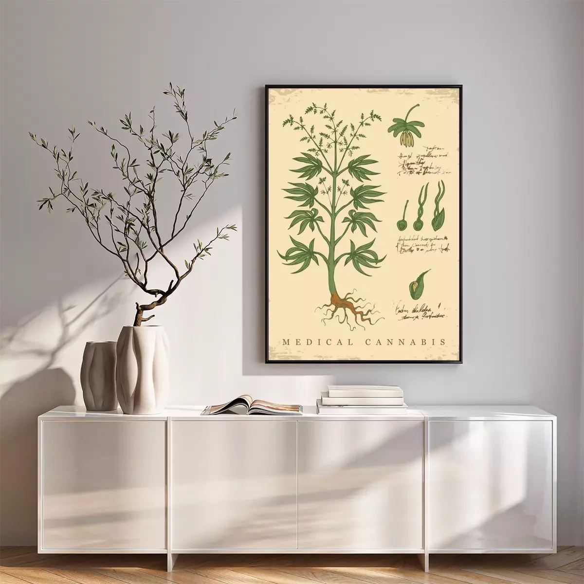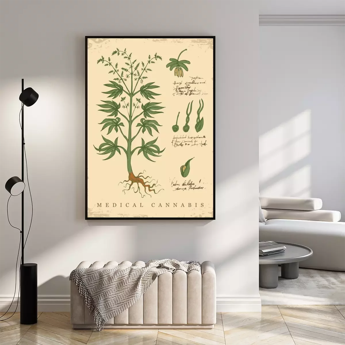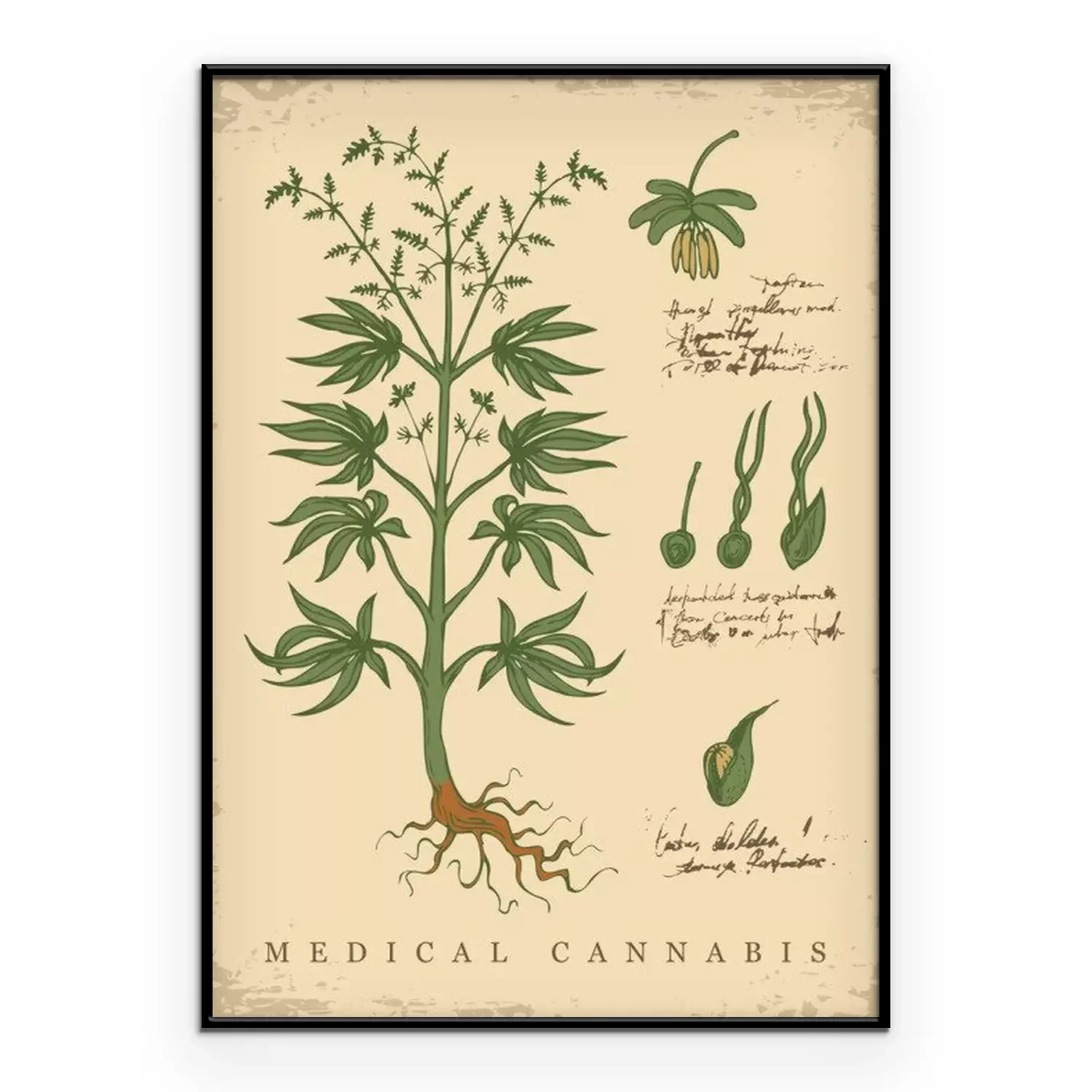 Poster: Botanische retrografiek van geneeskrachtige hennep