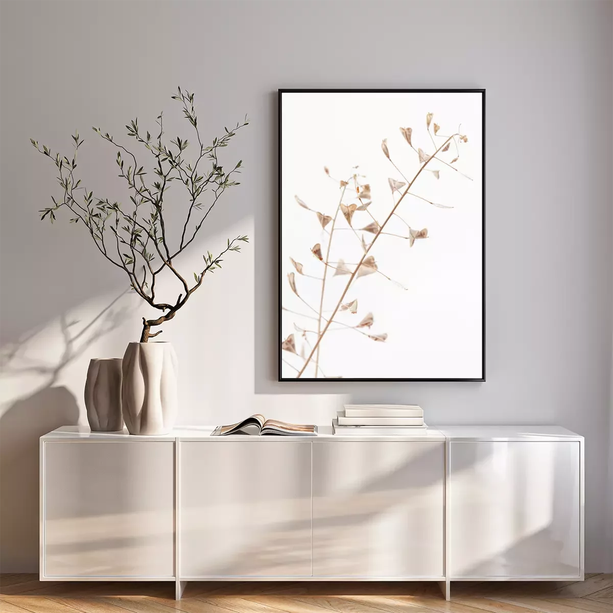 Poster: Branch romantic beige color shepherd's bag dry little flowers vertical