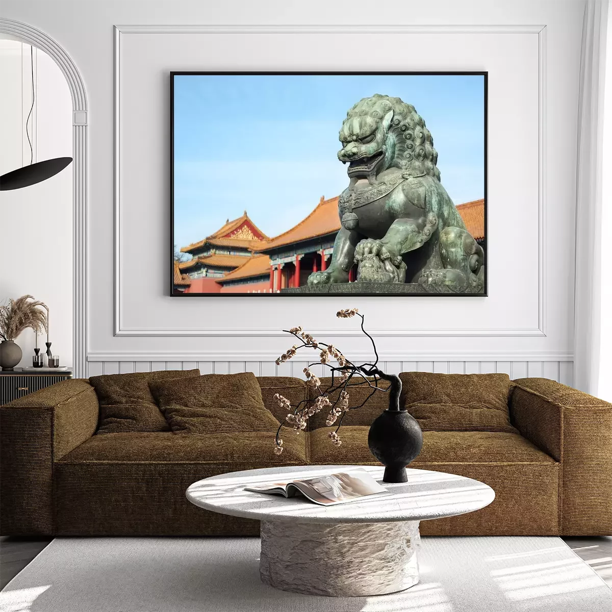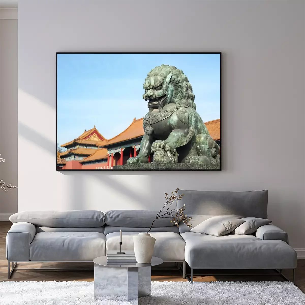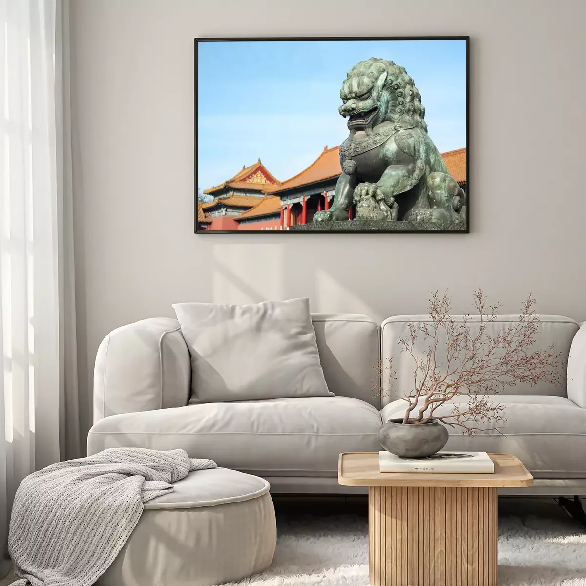Poster: Bronzen leeuw voogd in de Verboden Stad, Beijing