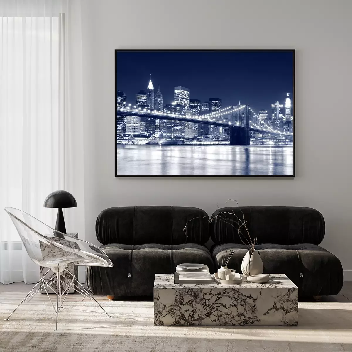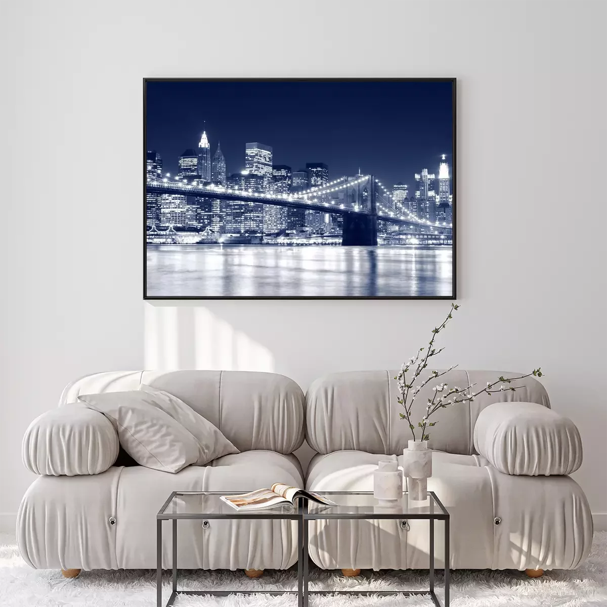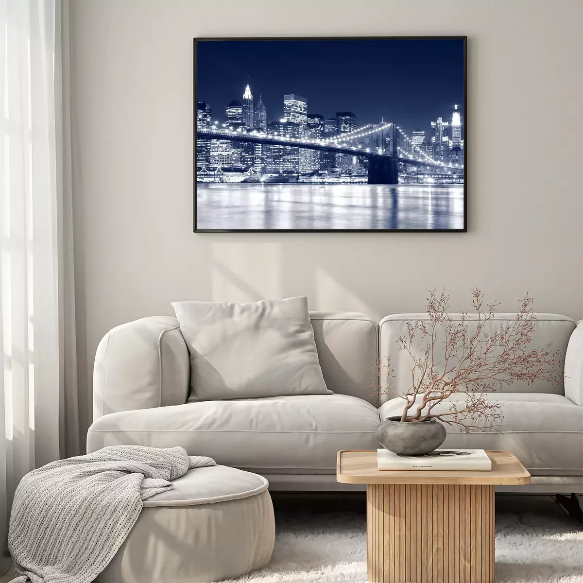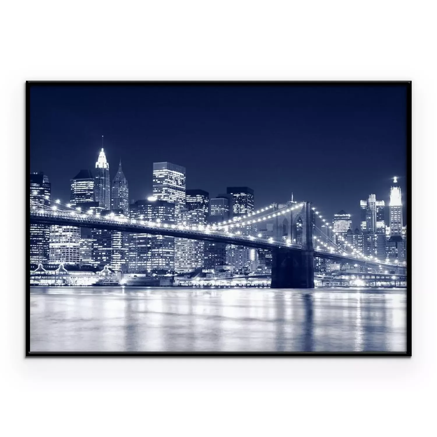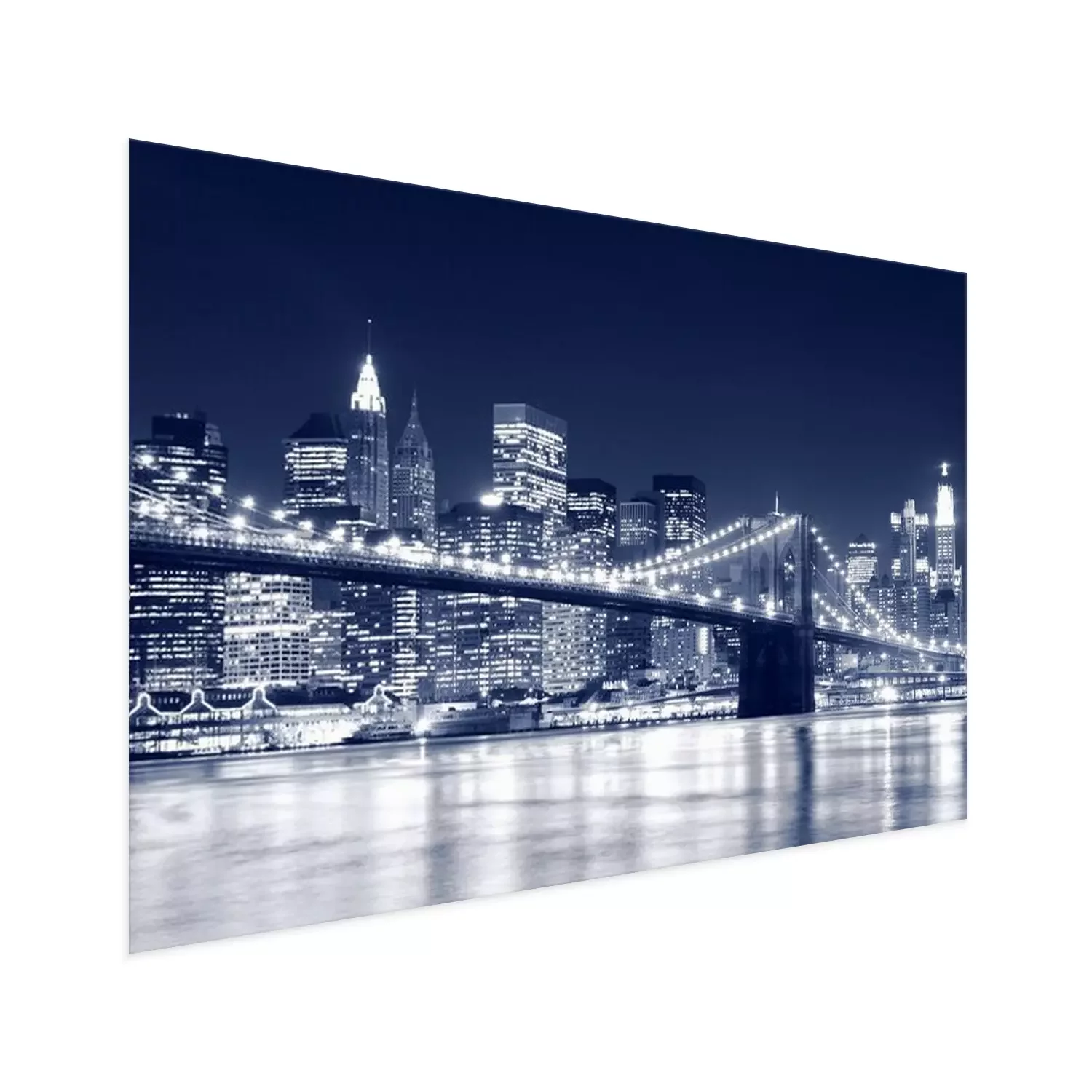 Poster: Brooklyn Bridge en Manhattan skyline in de nacht, New York City