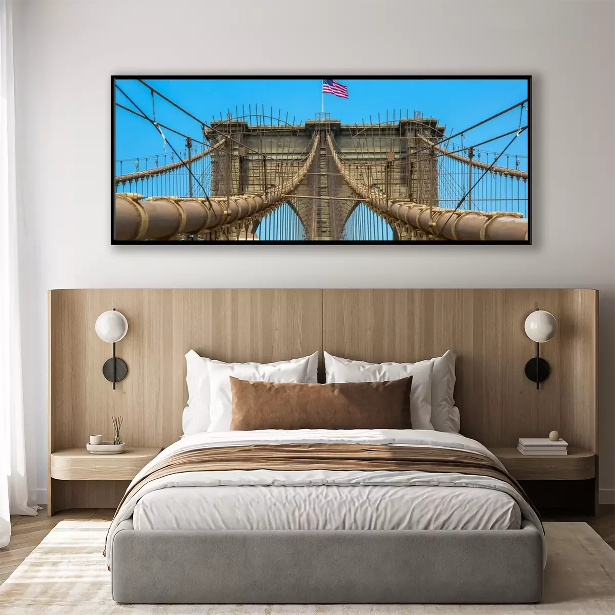 Poster: Brooklyn Bridge met de vlag van de V.S