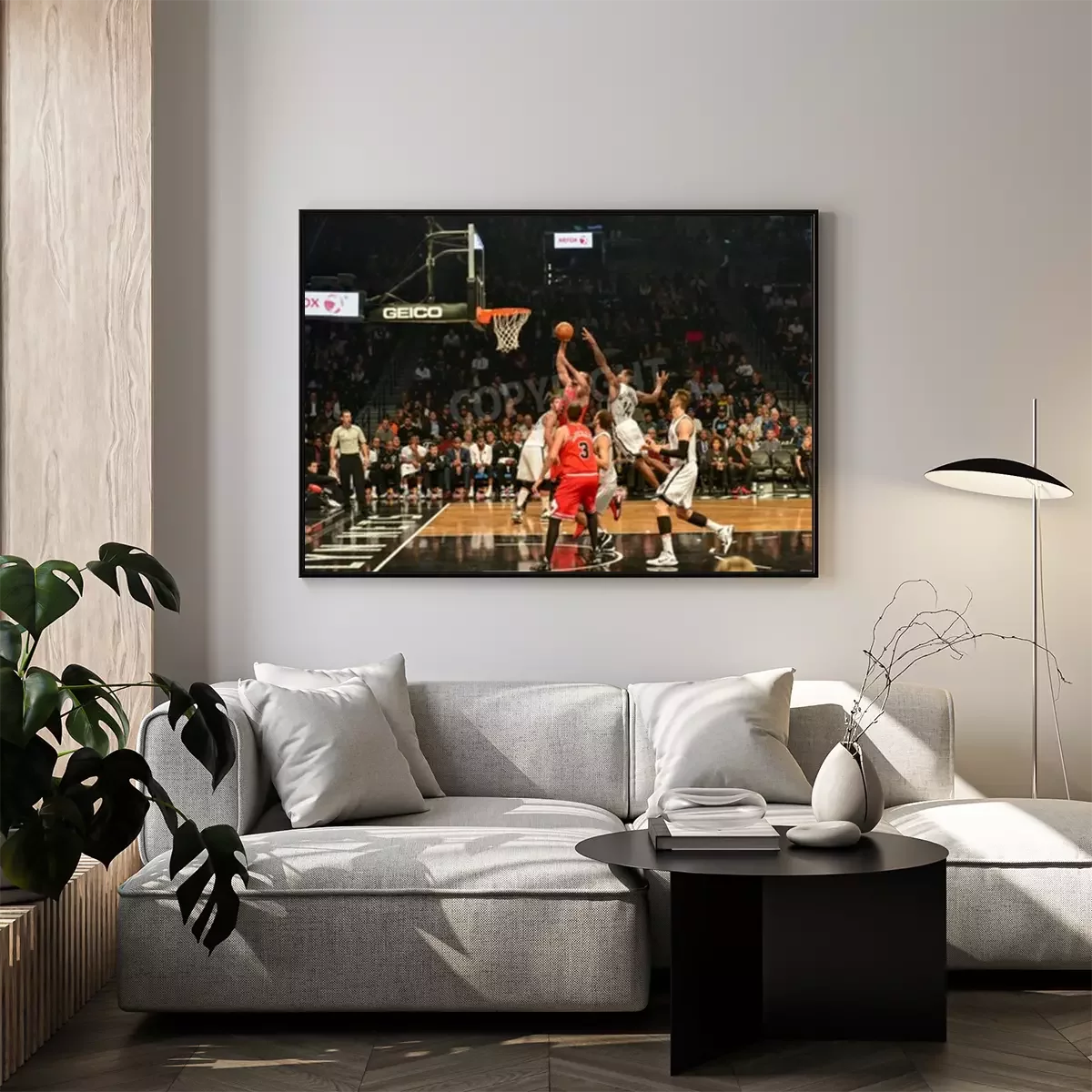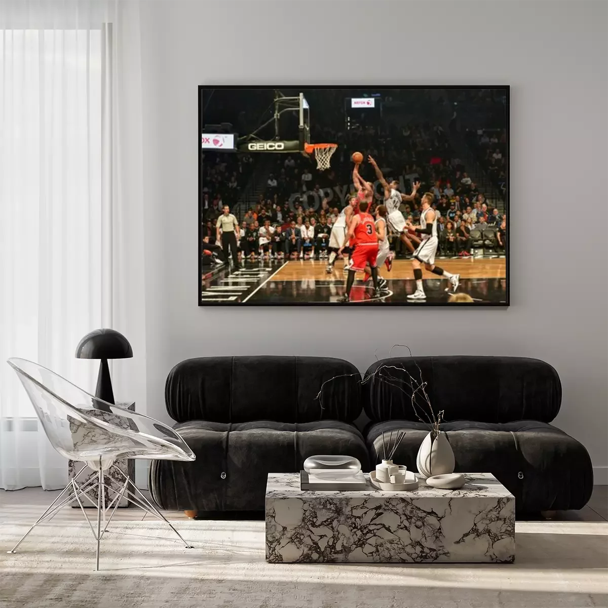 Poster: Brooklyn, New York - 28 oktober 2015: Brooklyn Nets versus Chicago Bulls bij Barclays Center openingswedstrijd.