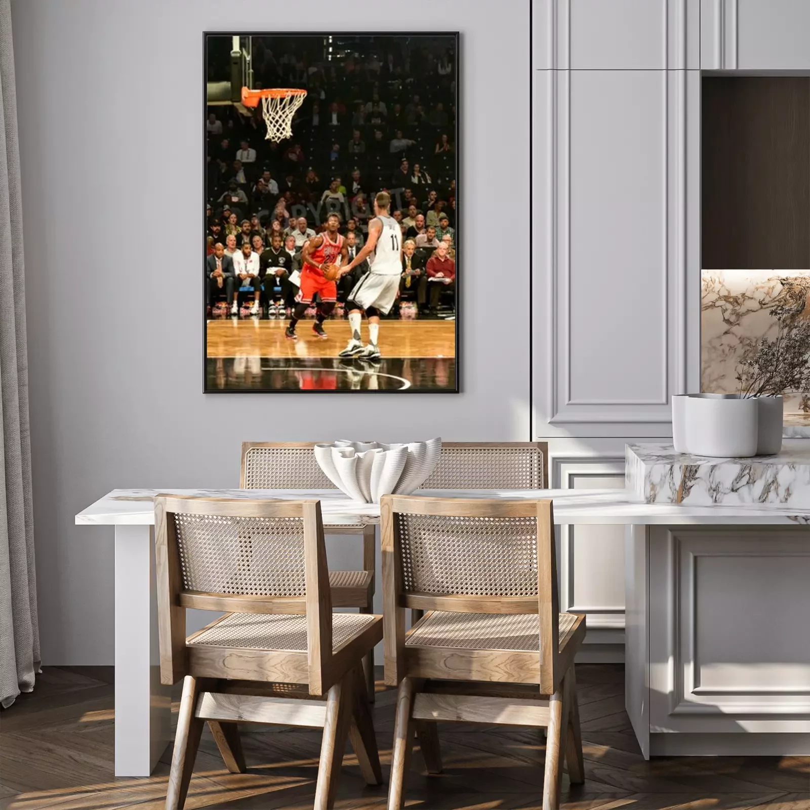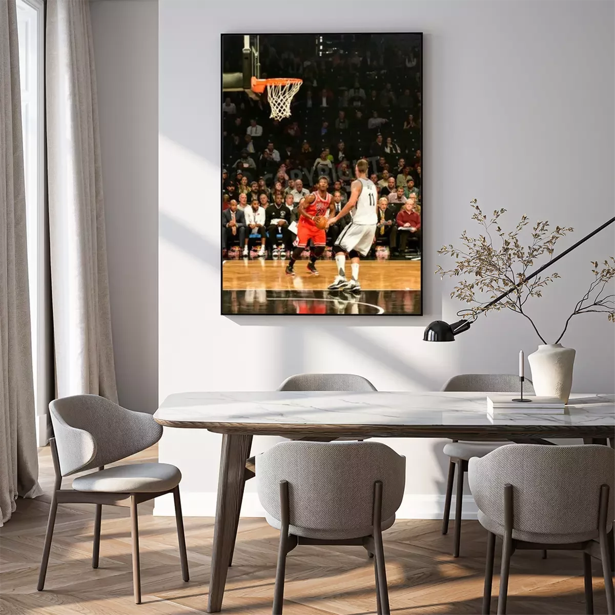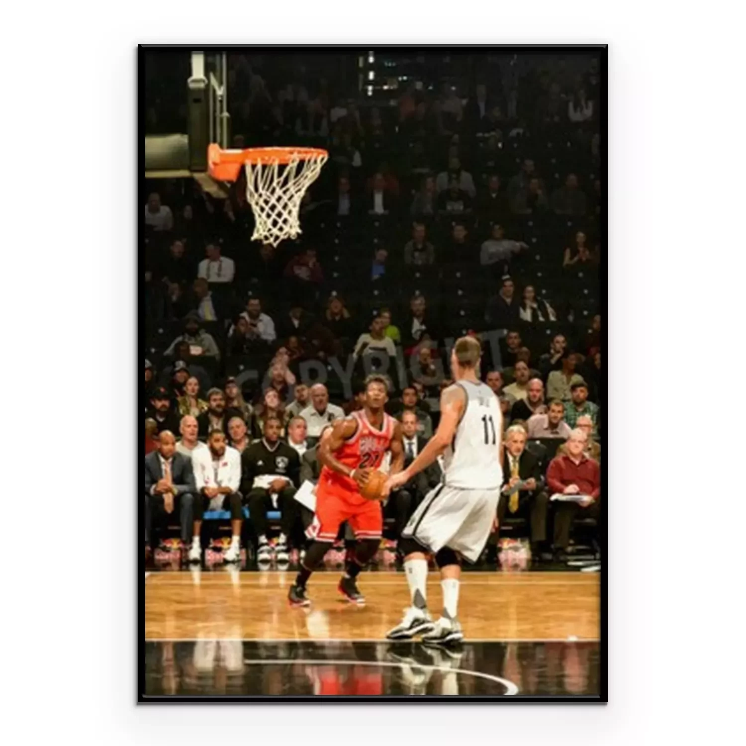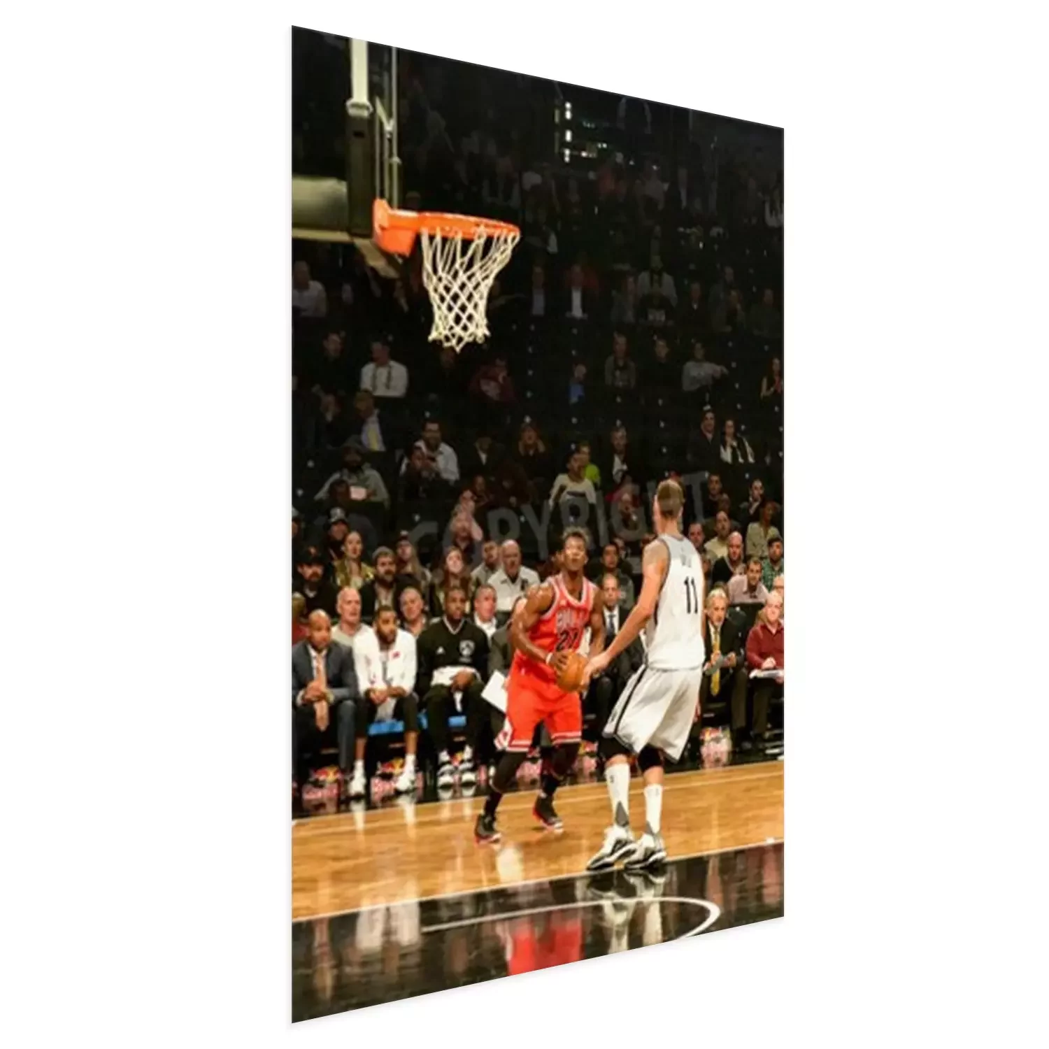 Poster: Brooklyn, New York - 28 oktober 2015: Brooklyn Nets versus Chicago Bulls bij Barclays Center openingswedstrijd.