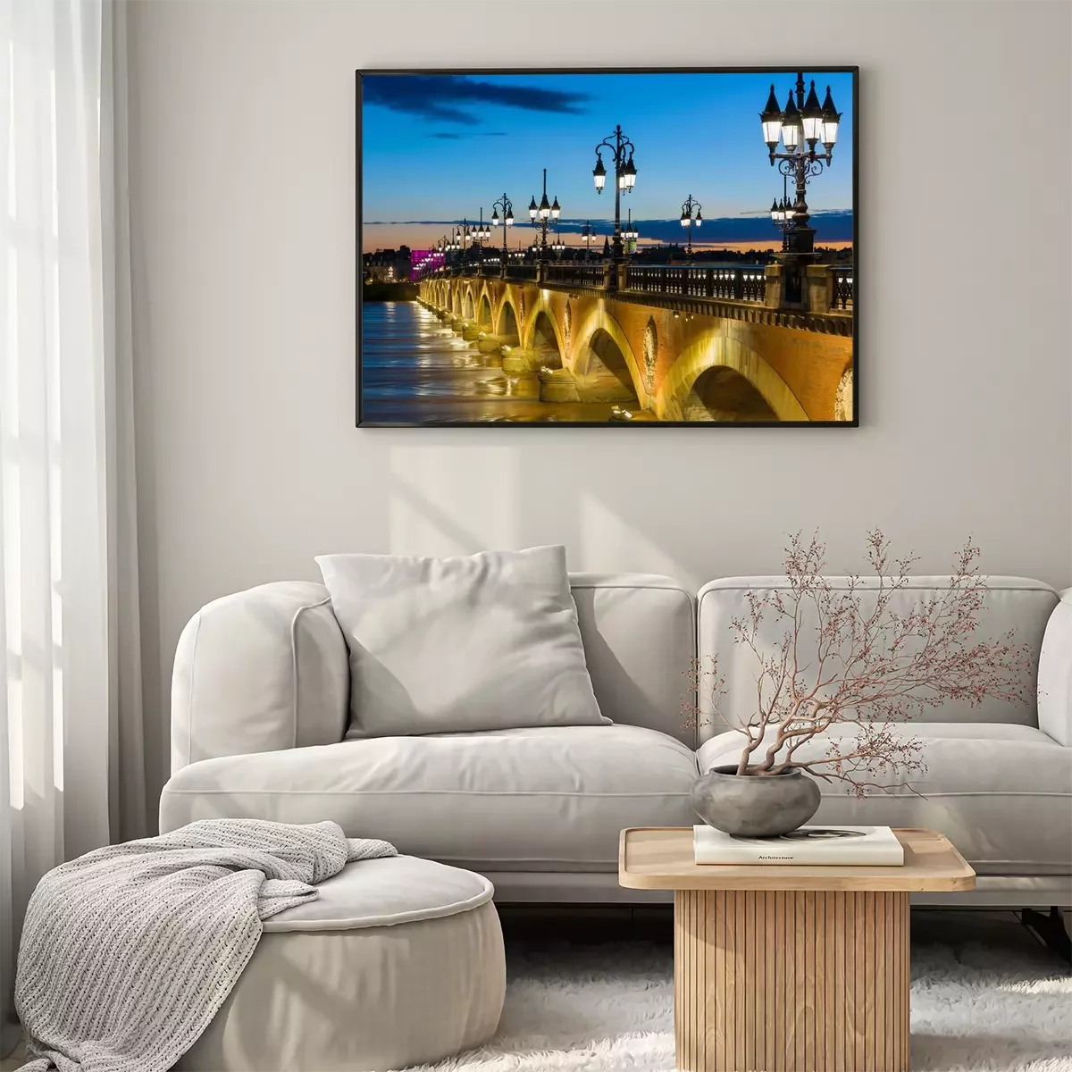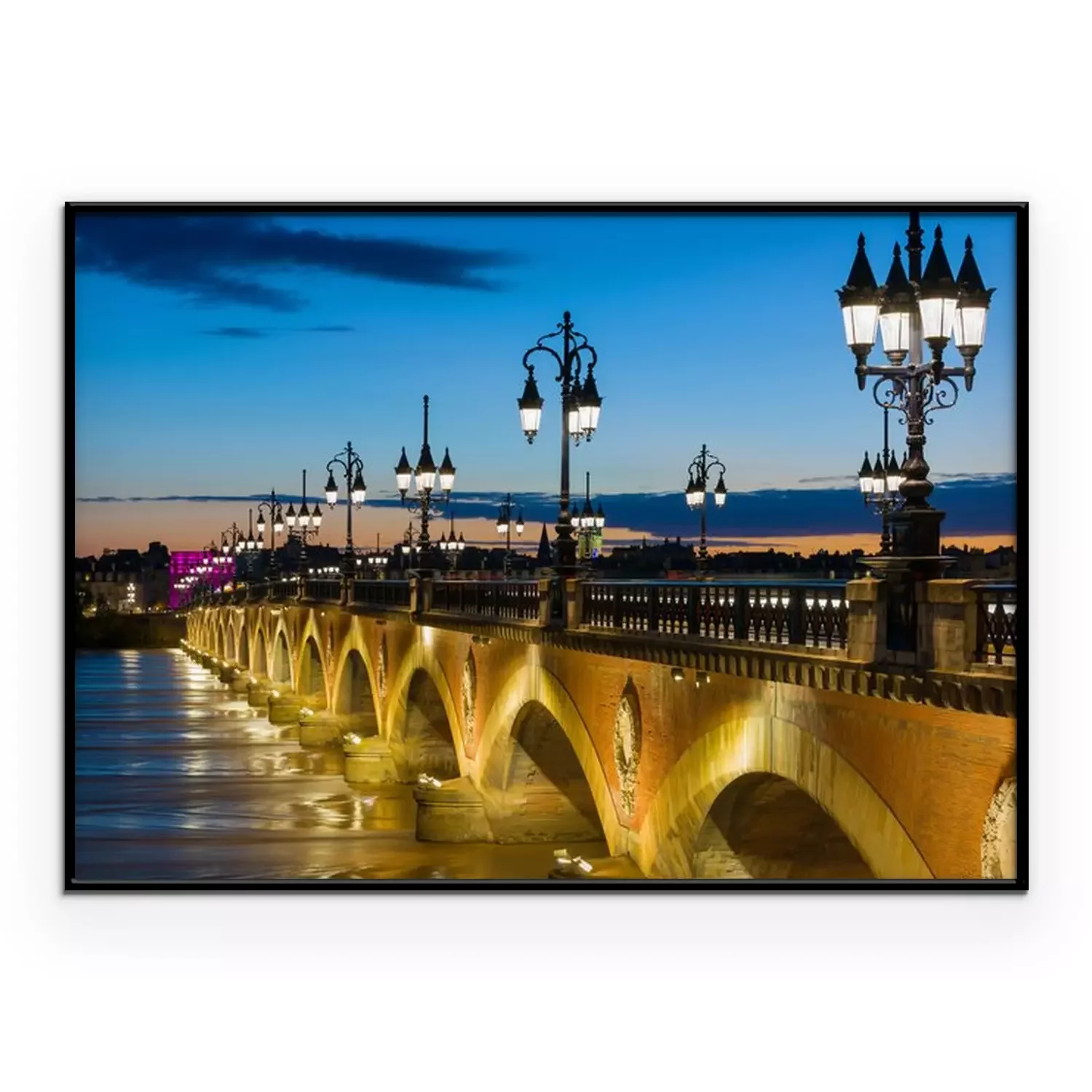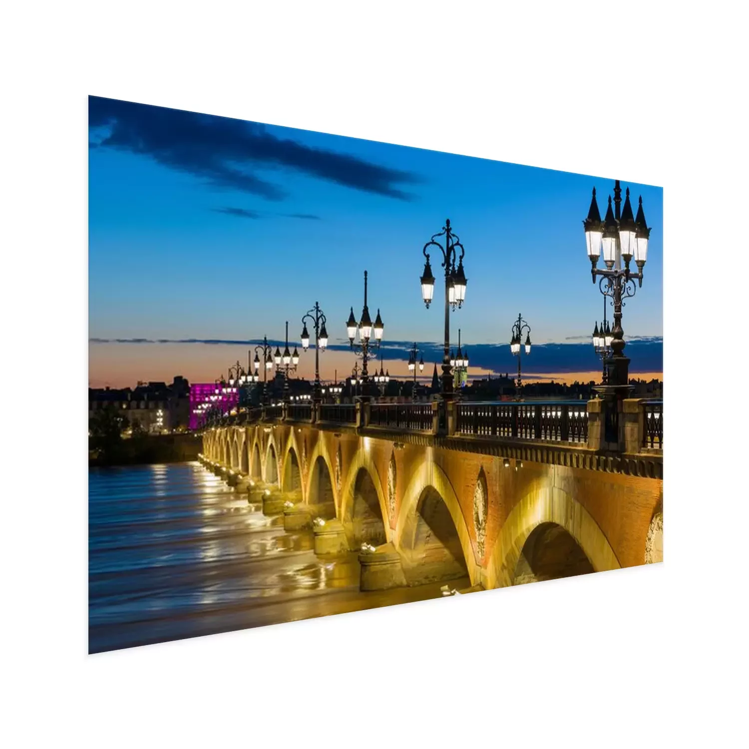 Poster: Brug in de stad 's nachts
