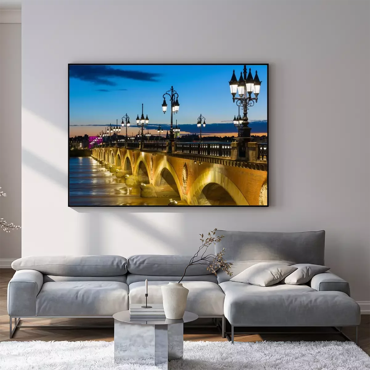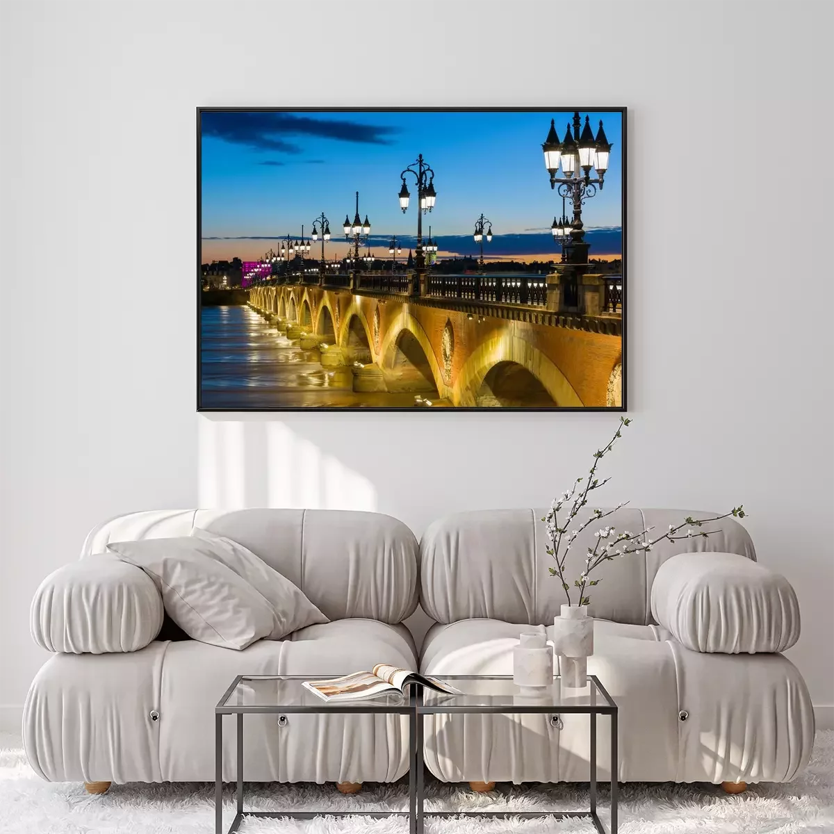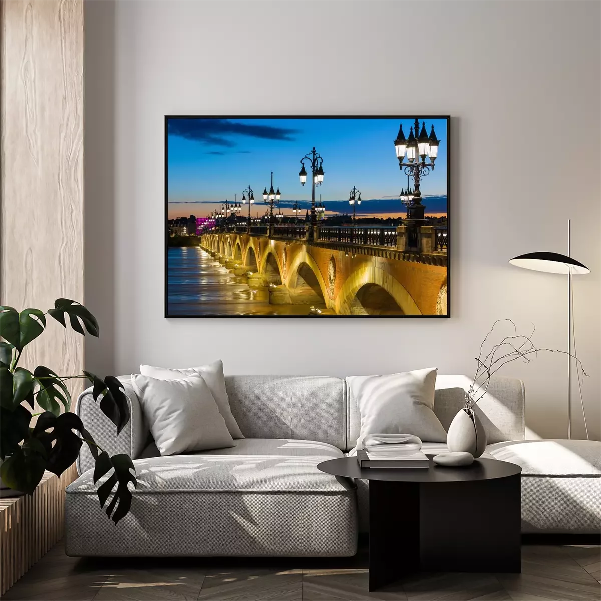 Poster: Brug in de stad 's nachts