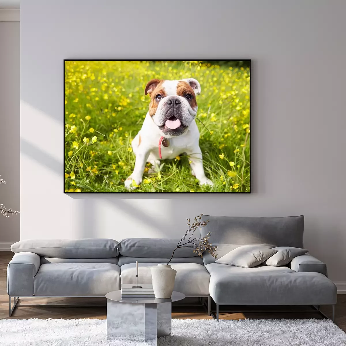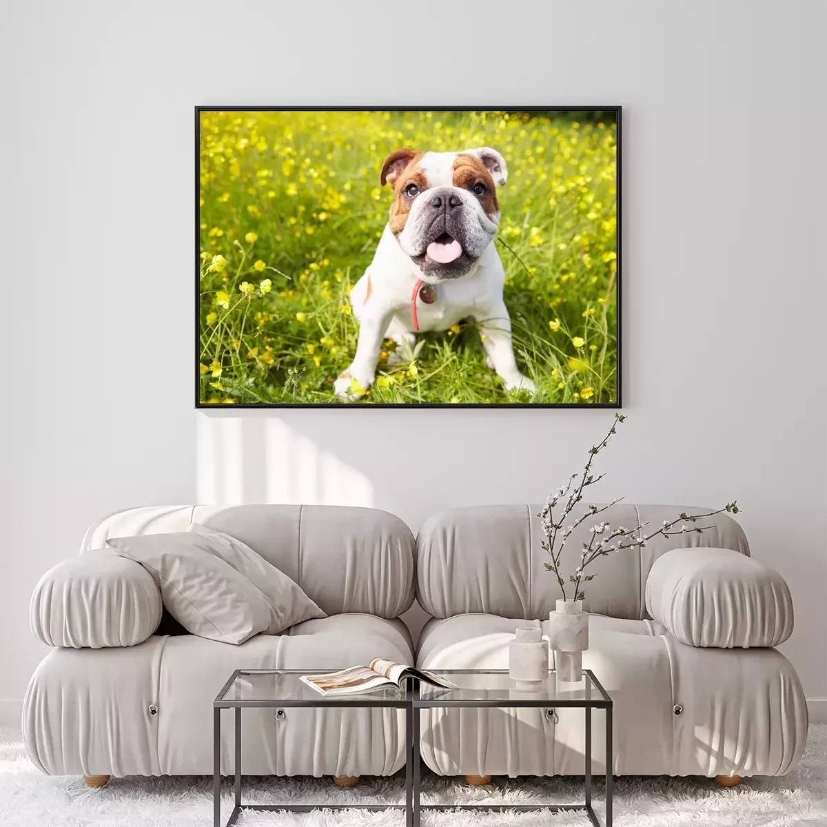 Poster: Buldoghond in de wei