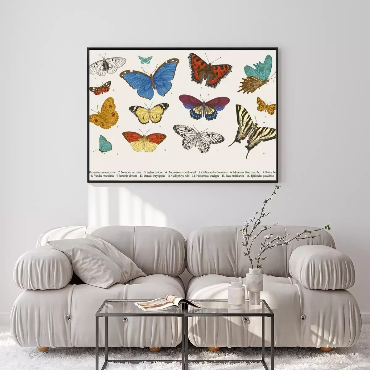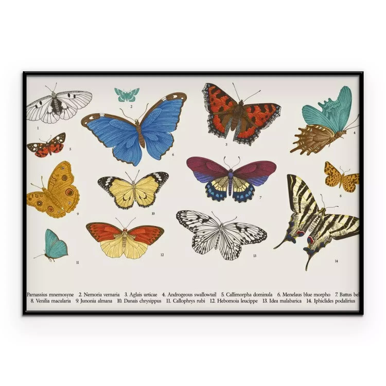 Poster: ..Butterflies. Set of elements for design. Vector vintage classic illustration. Colorful