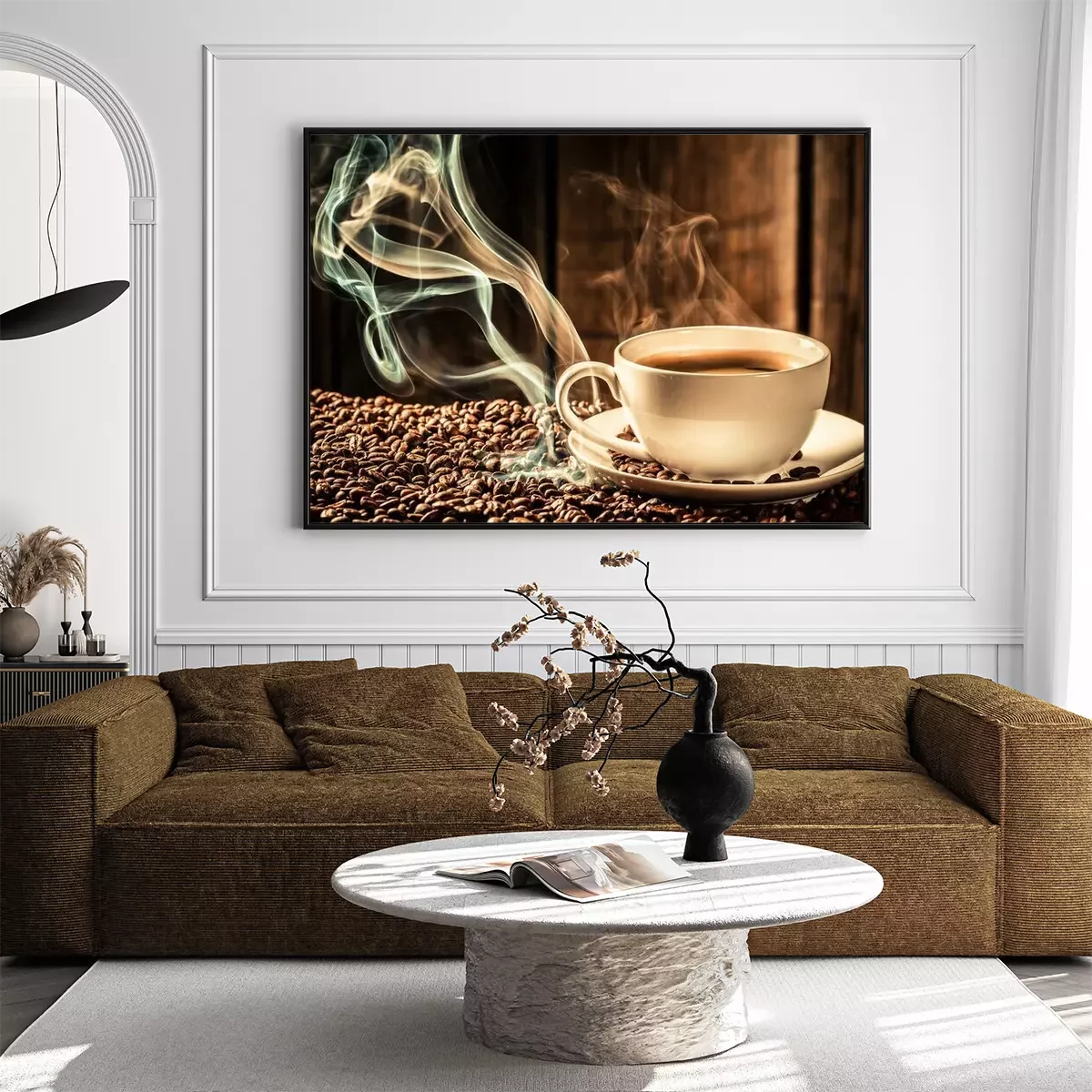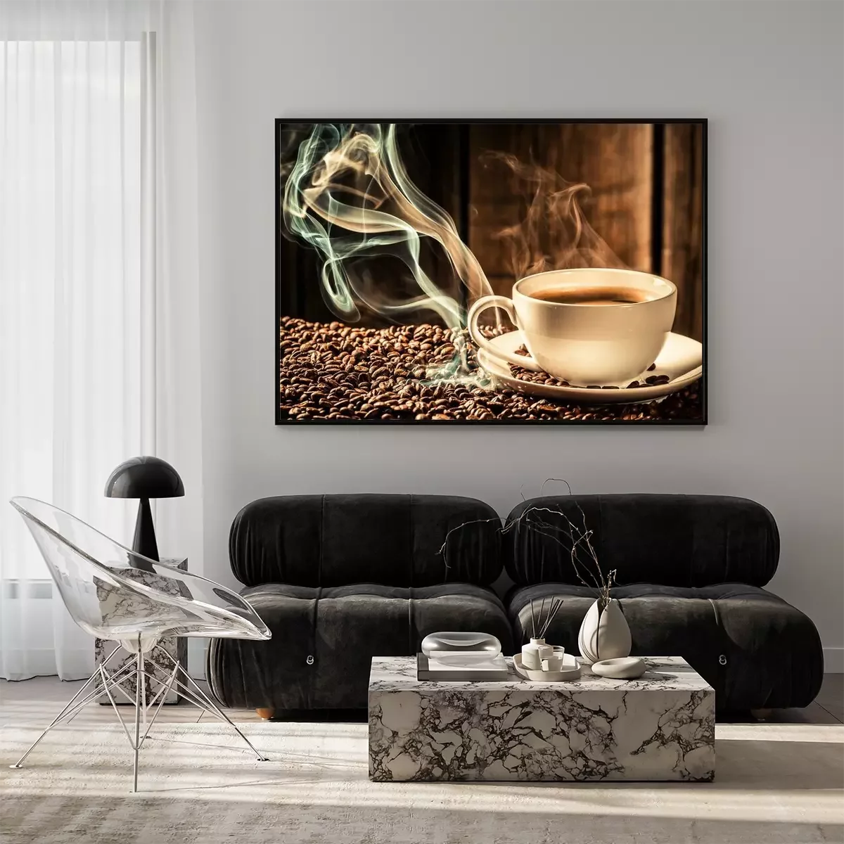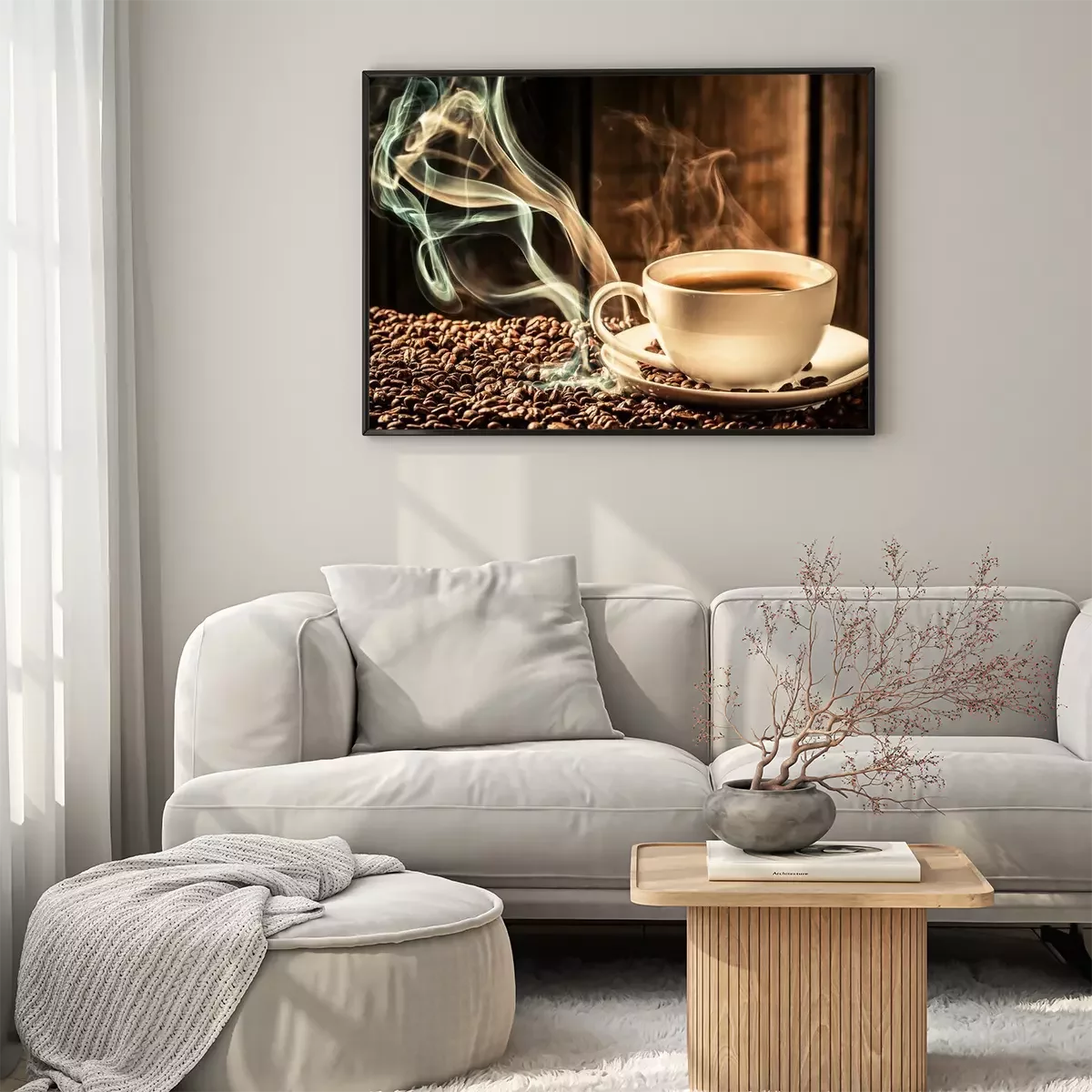 Poster: Button kopje koffie met geroosterde zaden