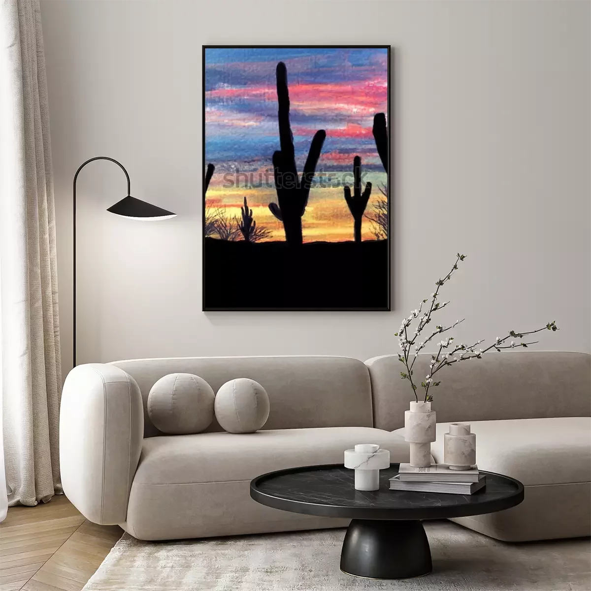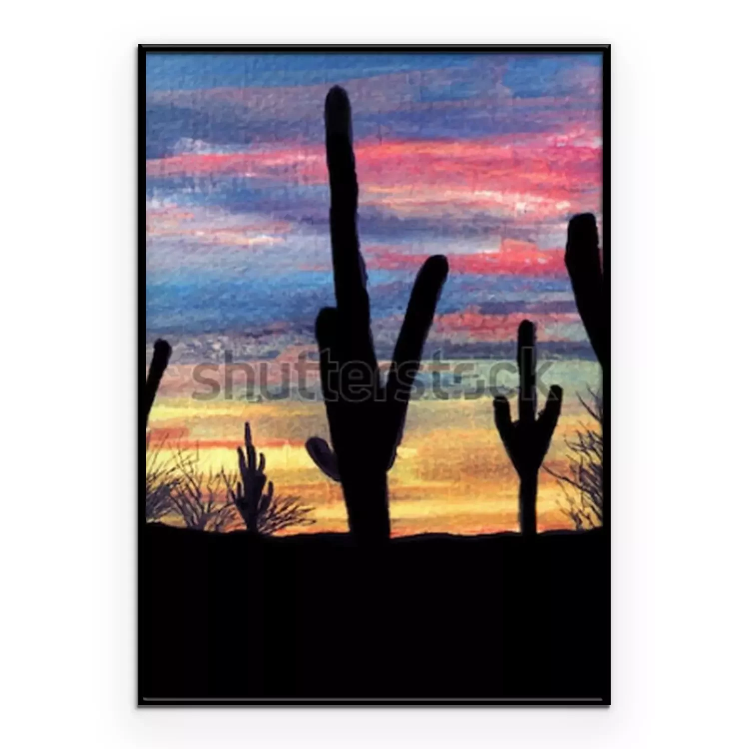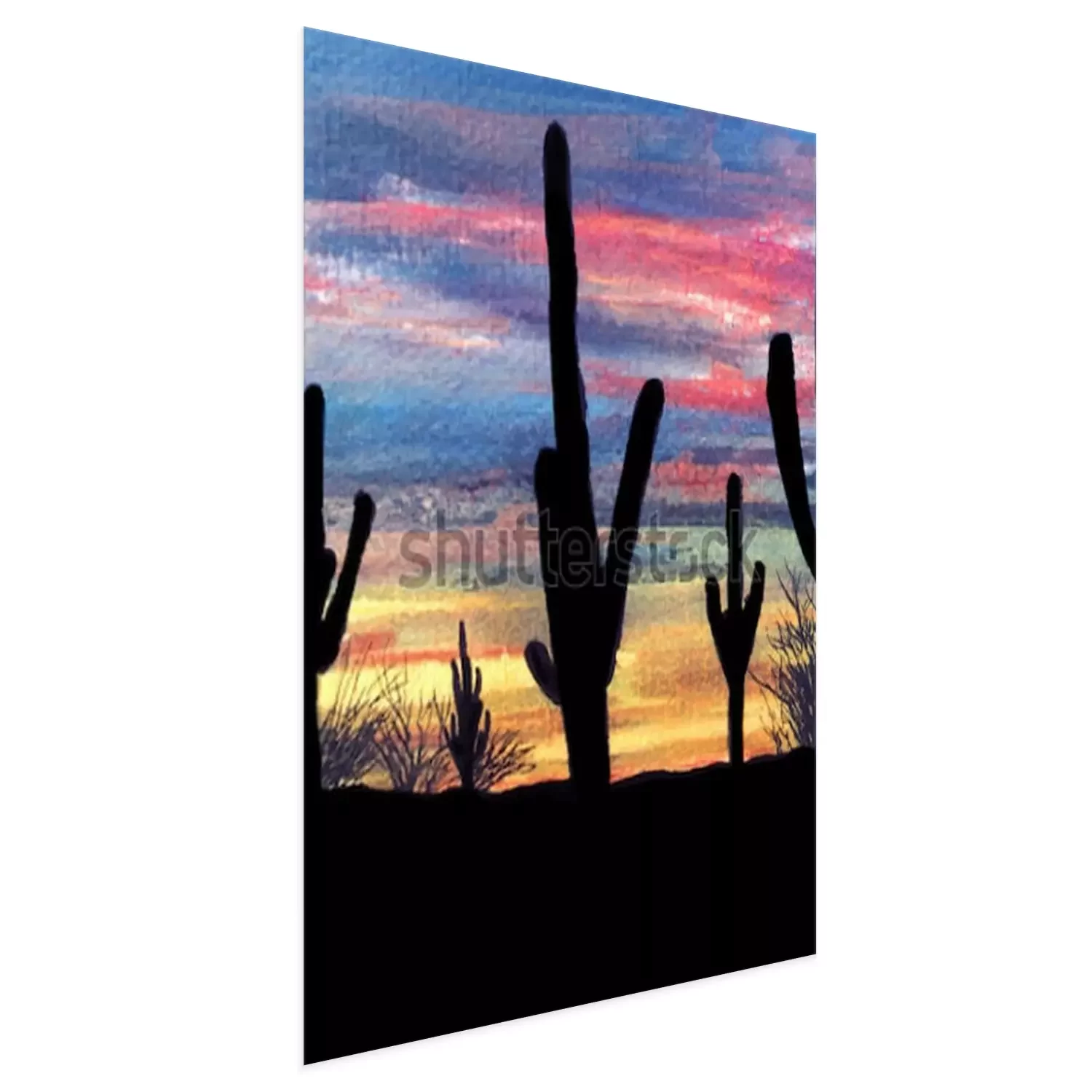 Poster: Cactussen tegen de achtergrond van een aquarelhemel