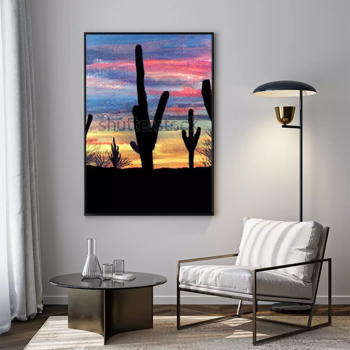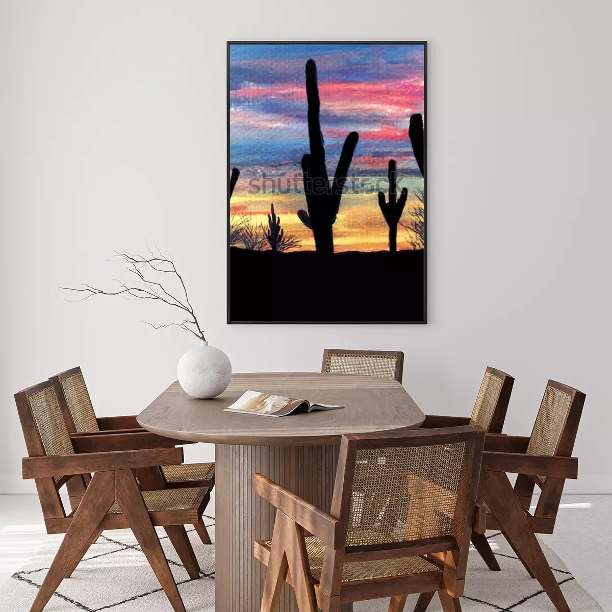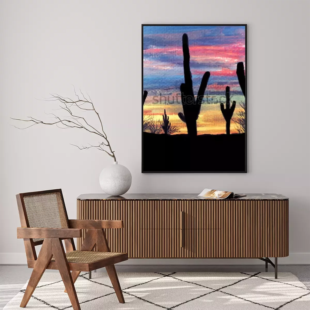 Poster: Cactussen tegen de achtergrond van een aquarelhemel