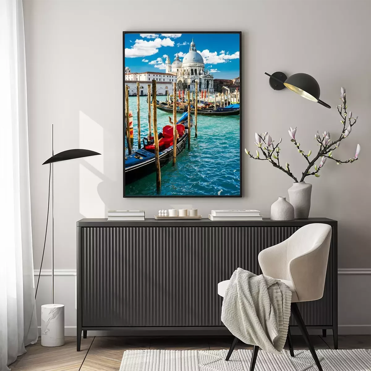Poster: Canal Grande in Venetië, Italië, met kleurrijke gondelboten