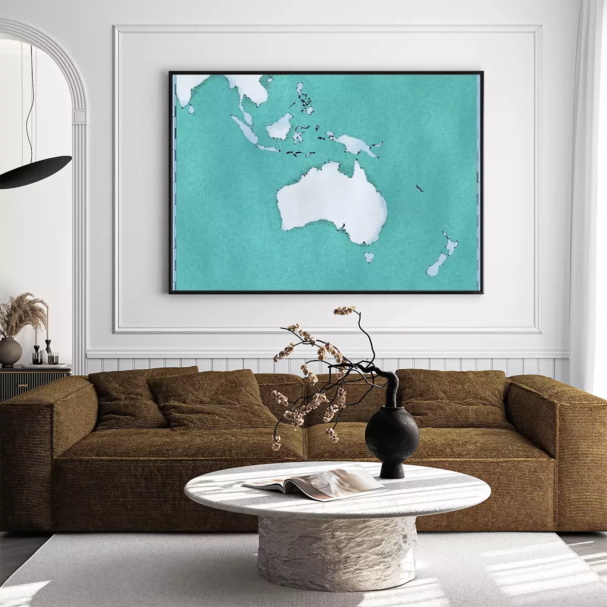 Poster Cartina dell’Oceania, disegnata illustrata pennellate, cartina geografica, fisica. Cartografia, atlante geografico