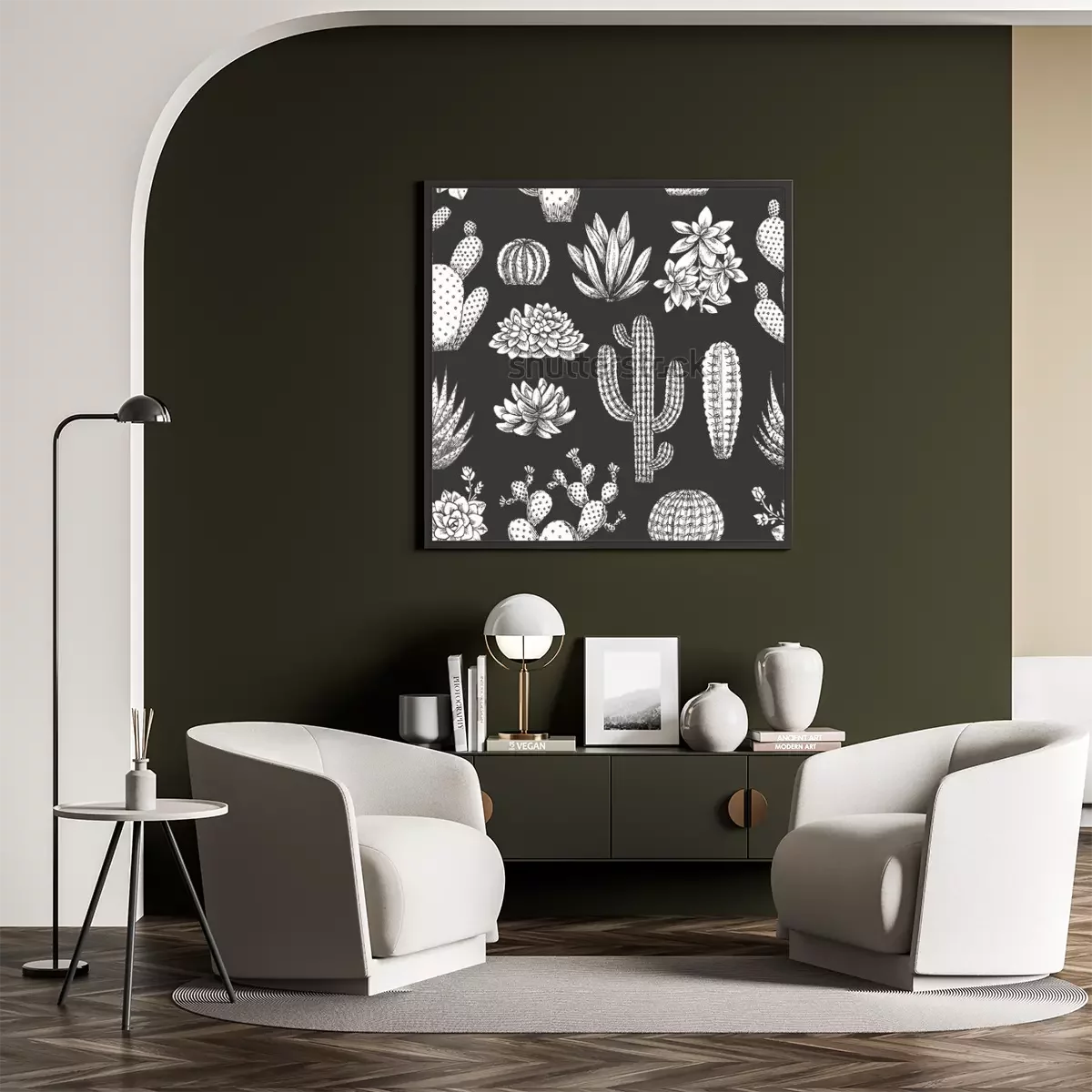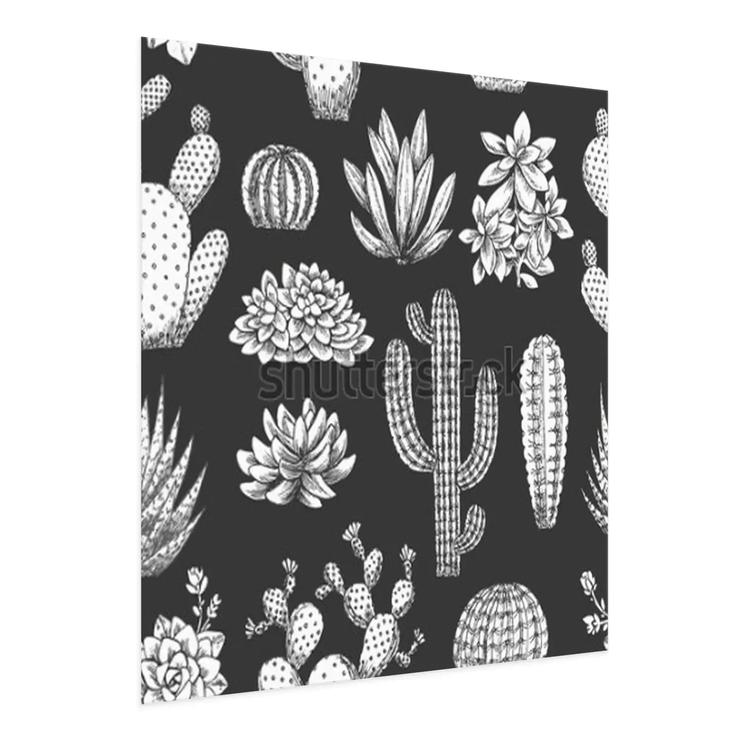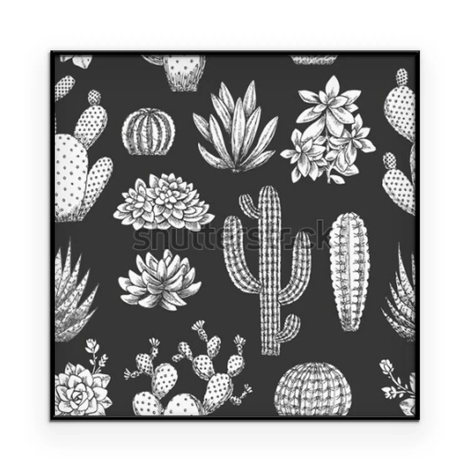 Poster: Cartoon cactussen op een donkere achtergrond