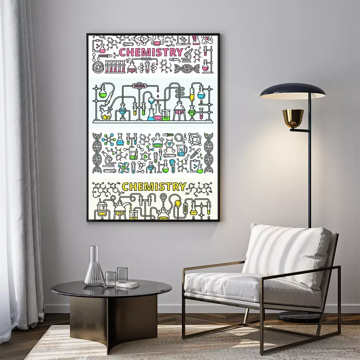 Poster: Chemie lab banner set. Overzichtsreeks van de vectorbanner van het chemielaboratorium voor Webontwerp