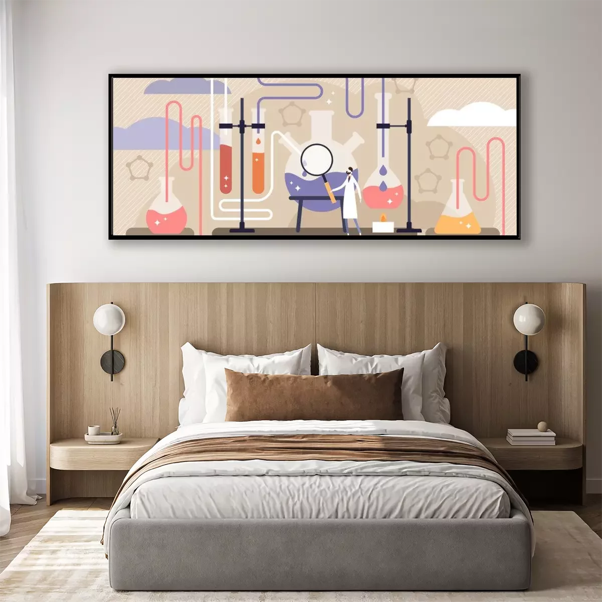 Poster Chemie vector illustratie. Flat mini wetenschap onderzoek personen concept.