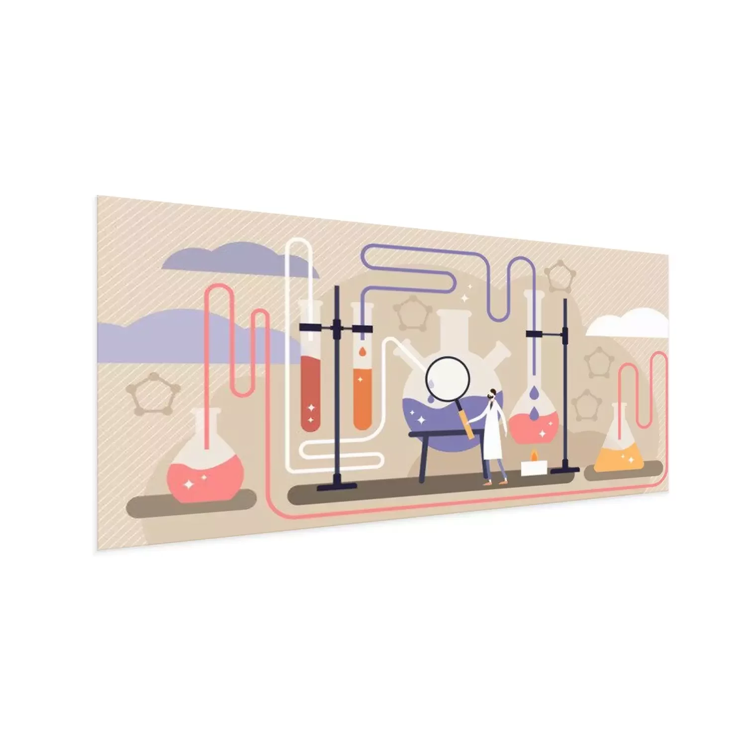Poster: Chemie vector illustratie. Flat mini wetenschap onderzoek personen concept.