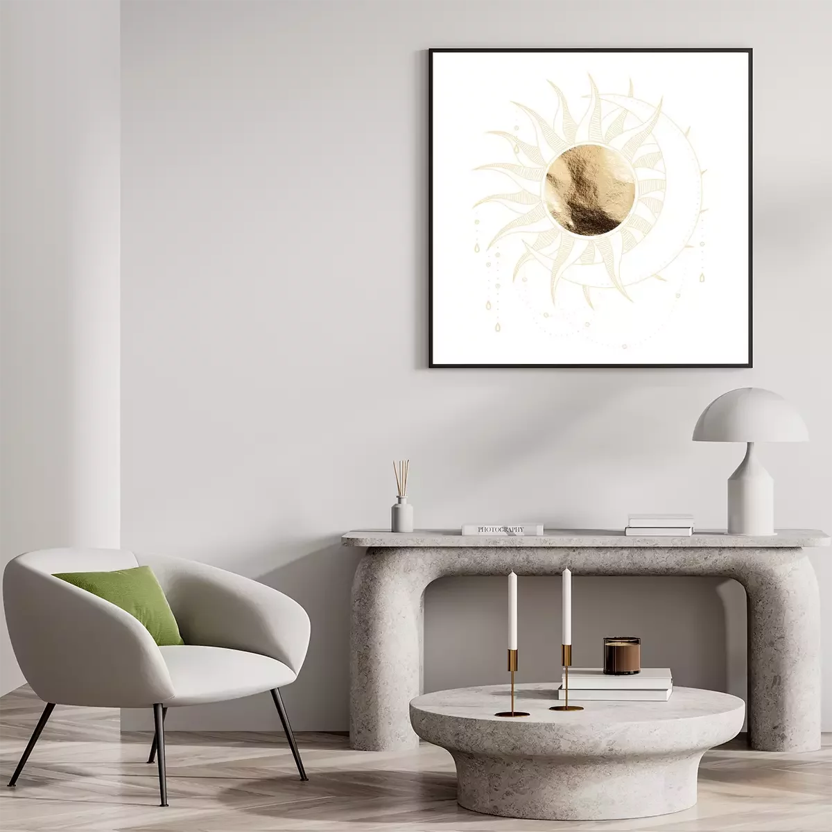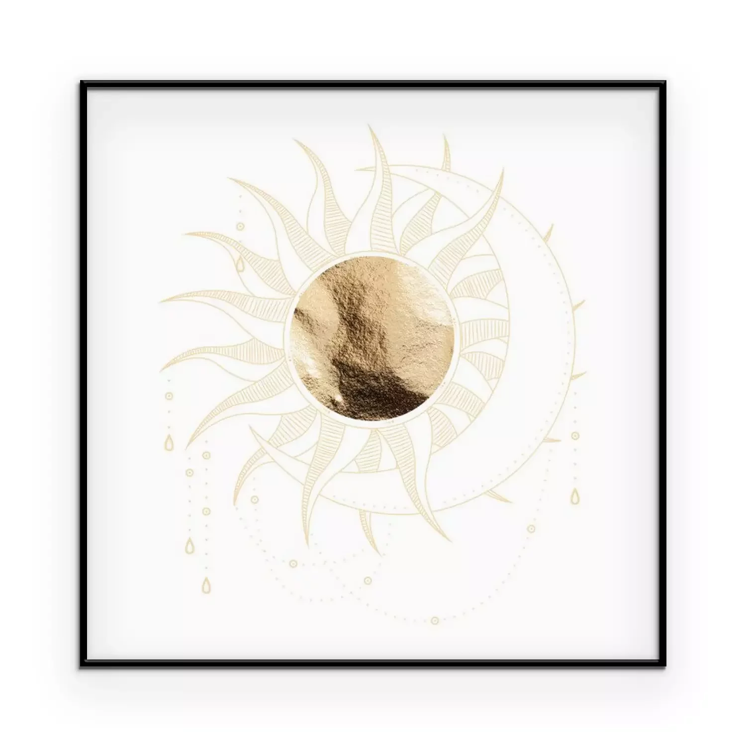 Poster: chic golden luxurious retro vintage engraving style. image of the sun and moon phases. culture of accultism. Vector graphics