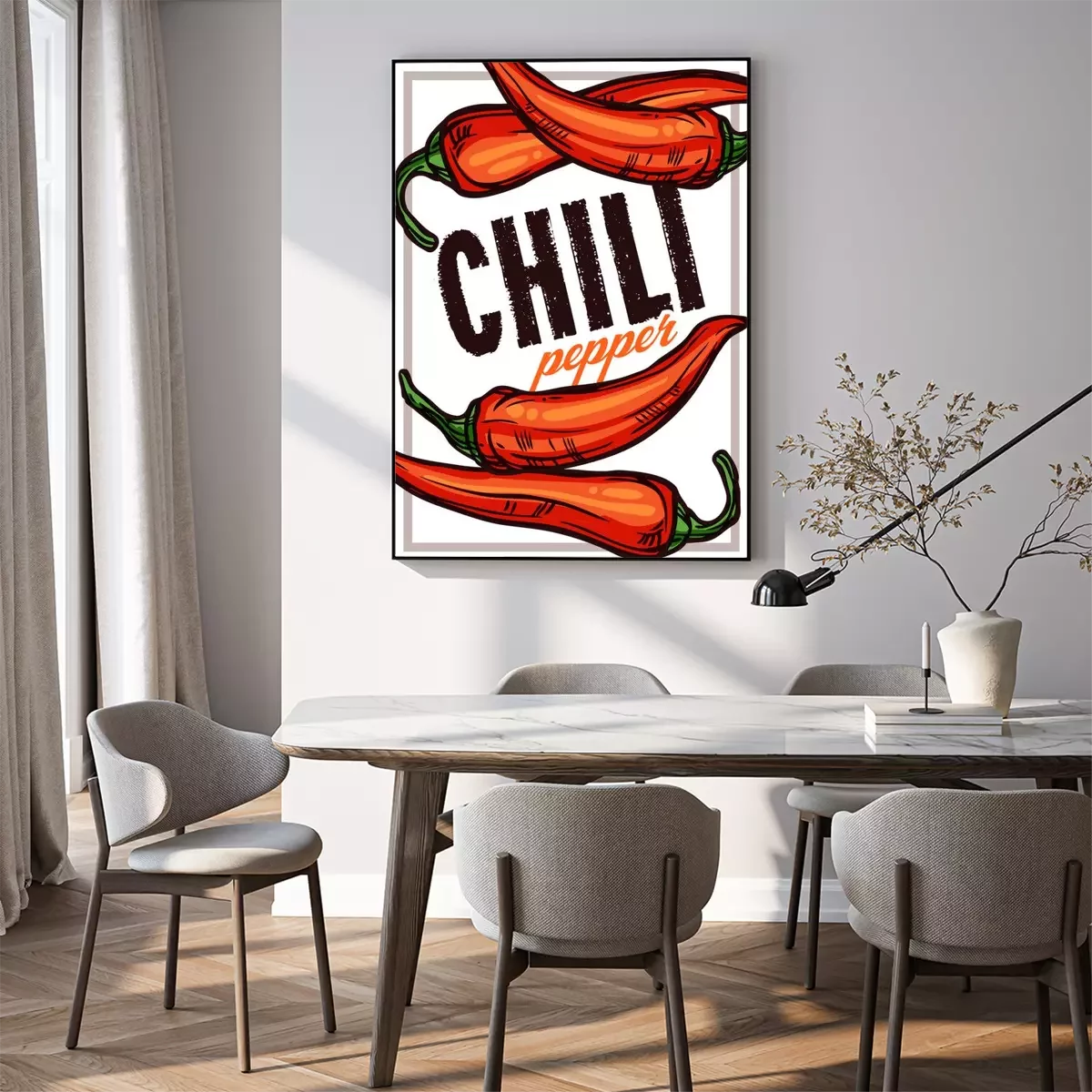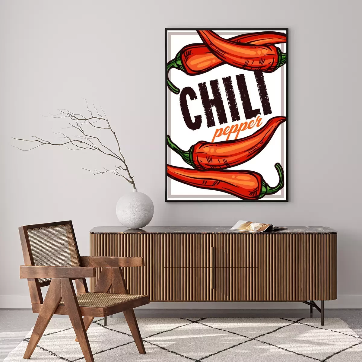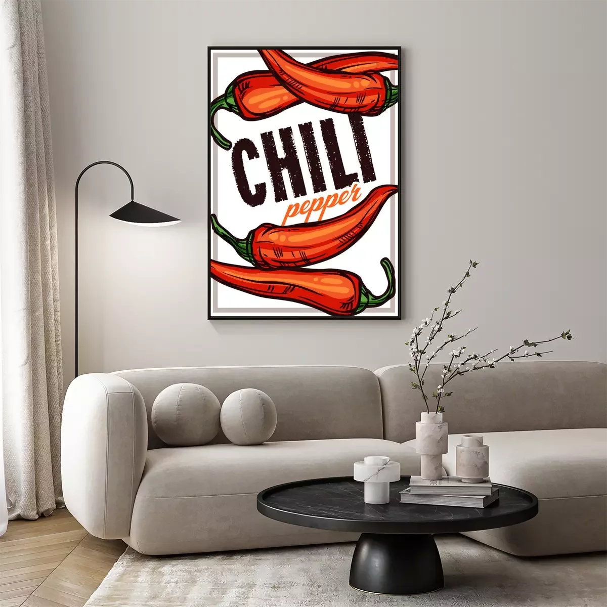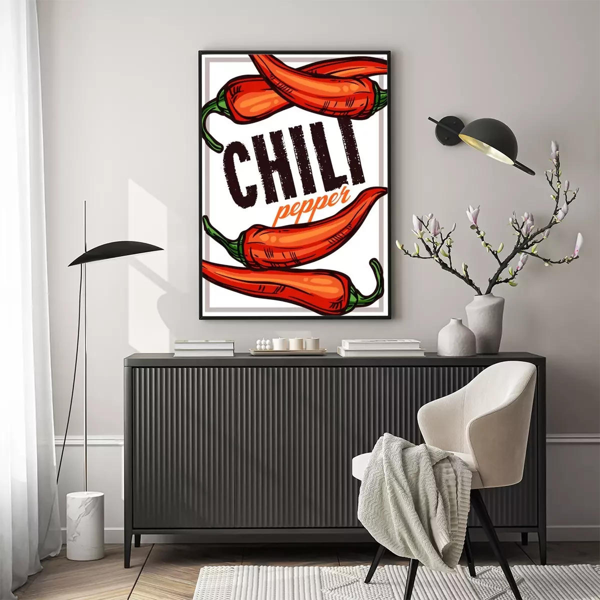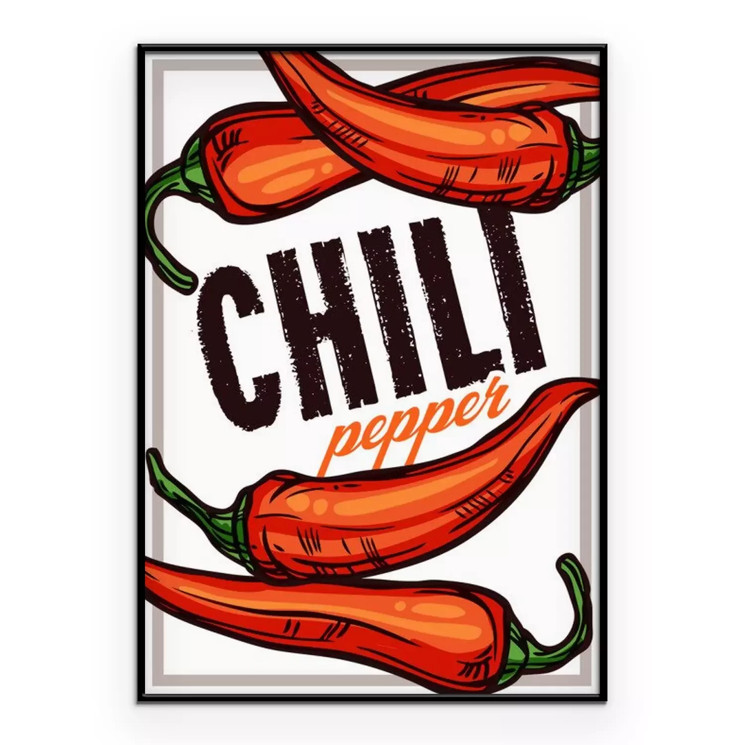 Poster: Chili pepper color vector illustration. Hand drawn poster or card with vegetables. Sketch food design