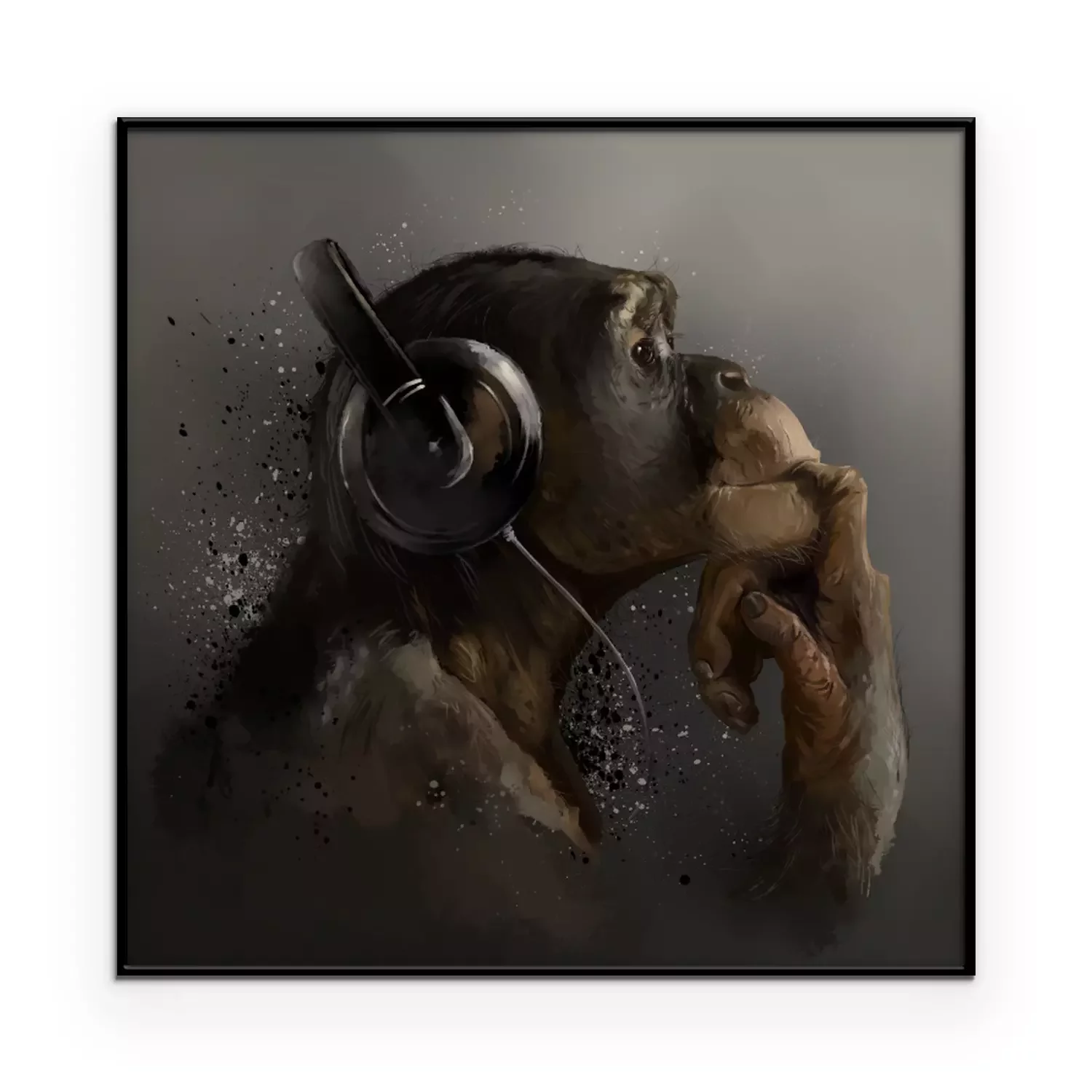 Poster Chimpanzee listening to music. Watercolor drawing