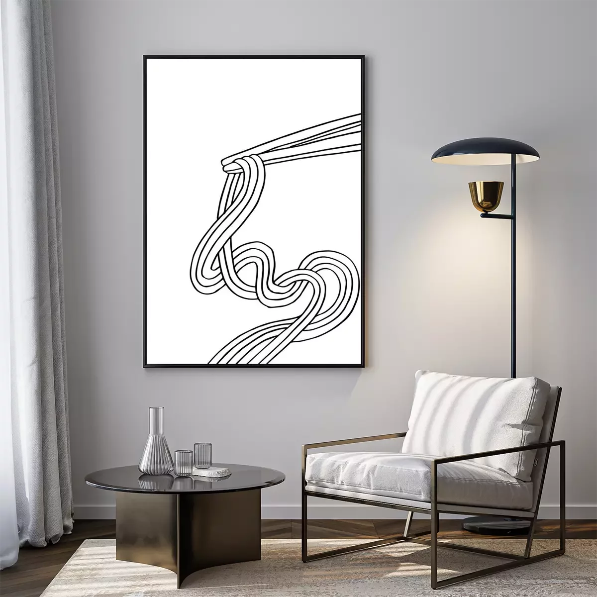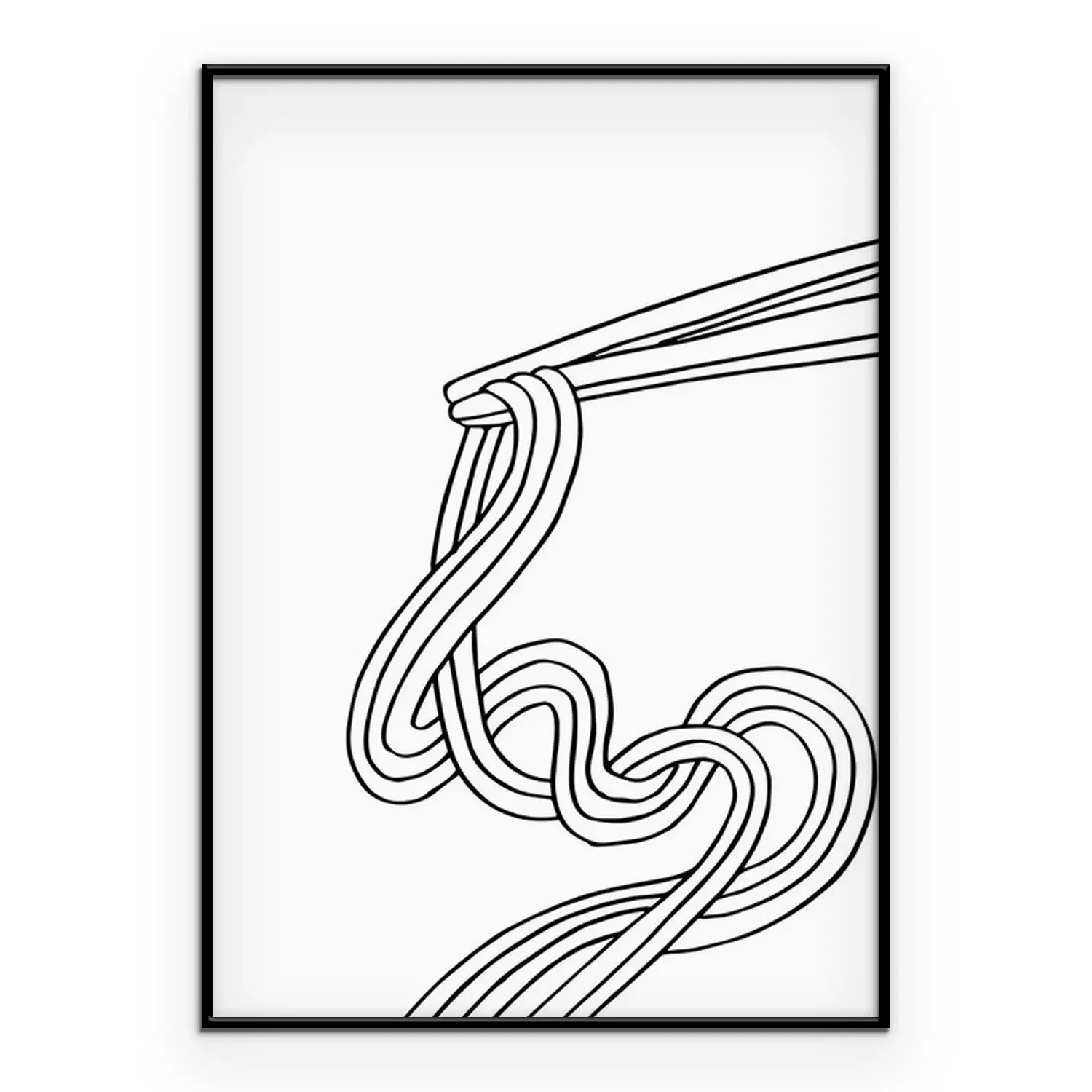 Poster Chinese Noodles and chopsticks.Sketchy style.