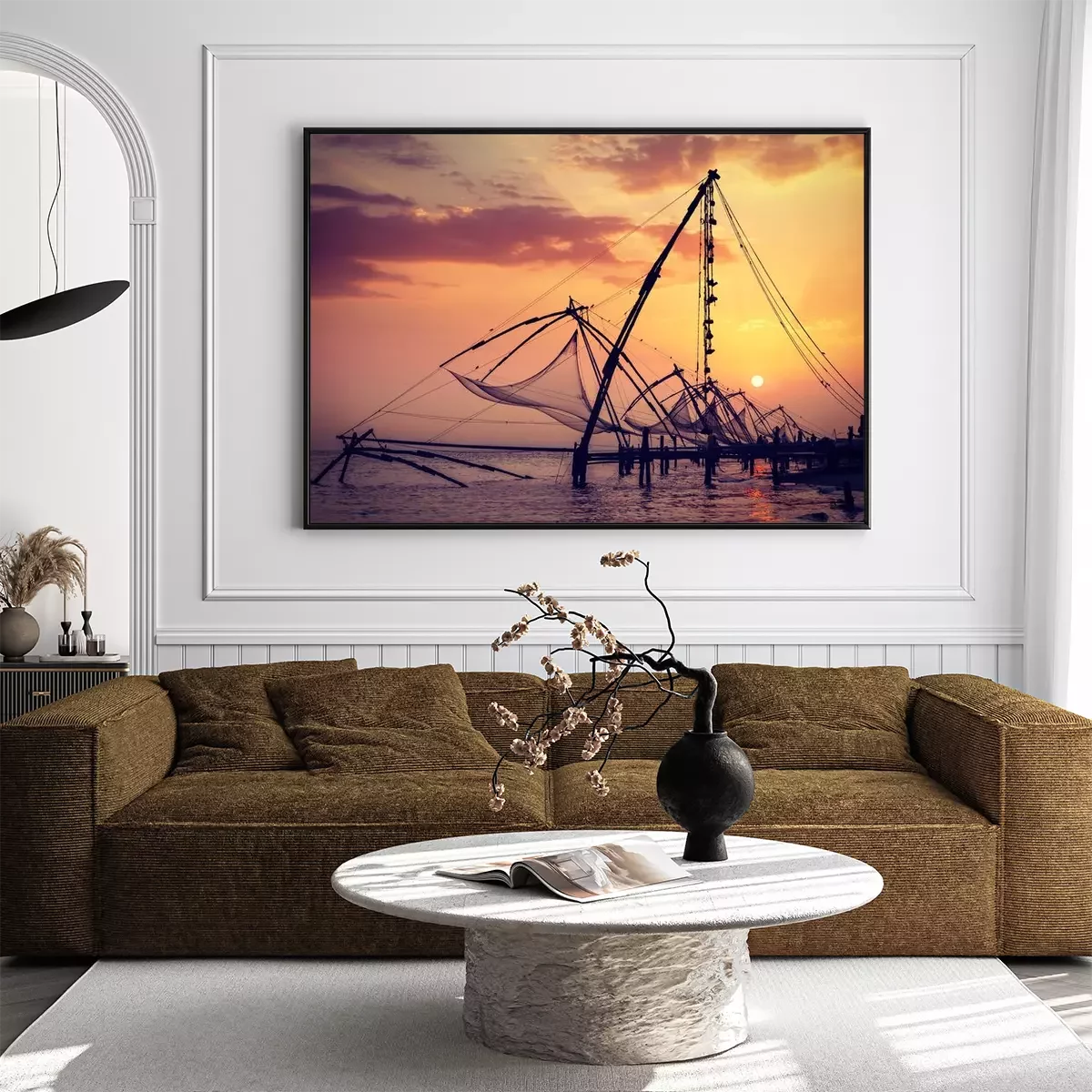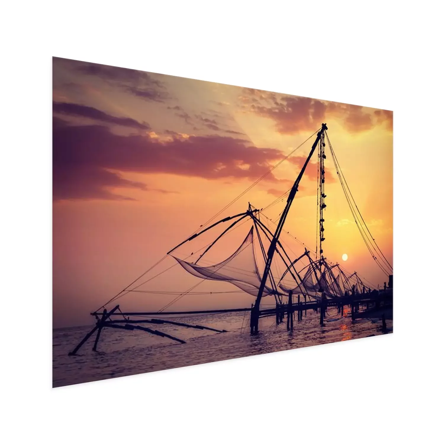 Poster: Chinese visnetten op zonsondergang. Kochi, Kerala, India