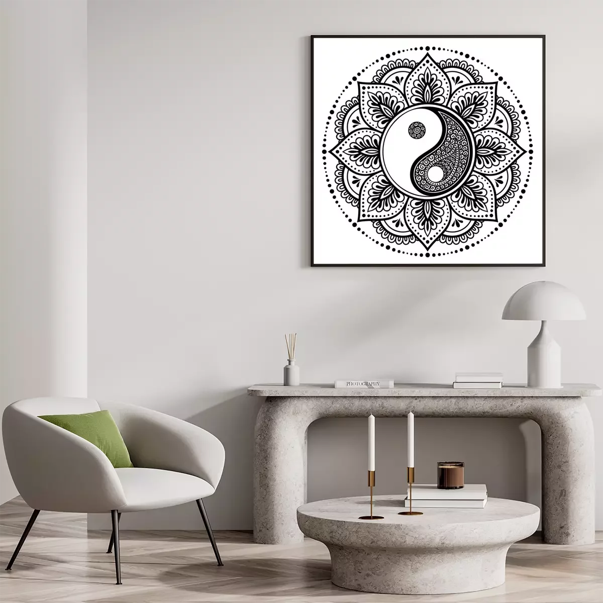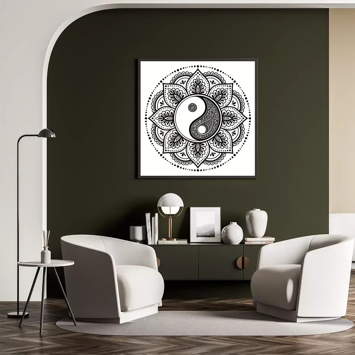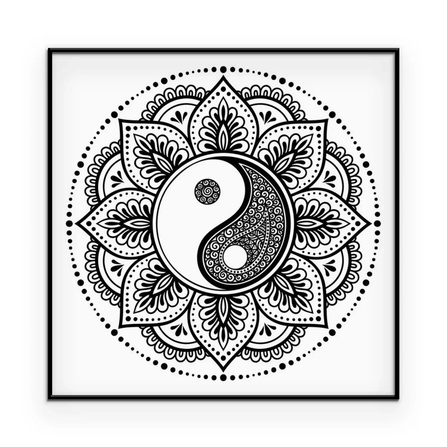 Poster Circular pattern in form of mandala for Henna, Mehndi, tattoo, decoration. Decorative ornament in ethnic oriental style with Yin-yang hand drawn symbol. Outline doodle vector illustration.
