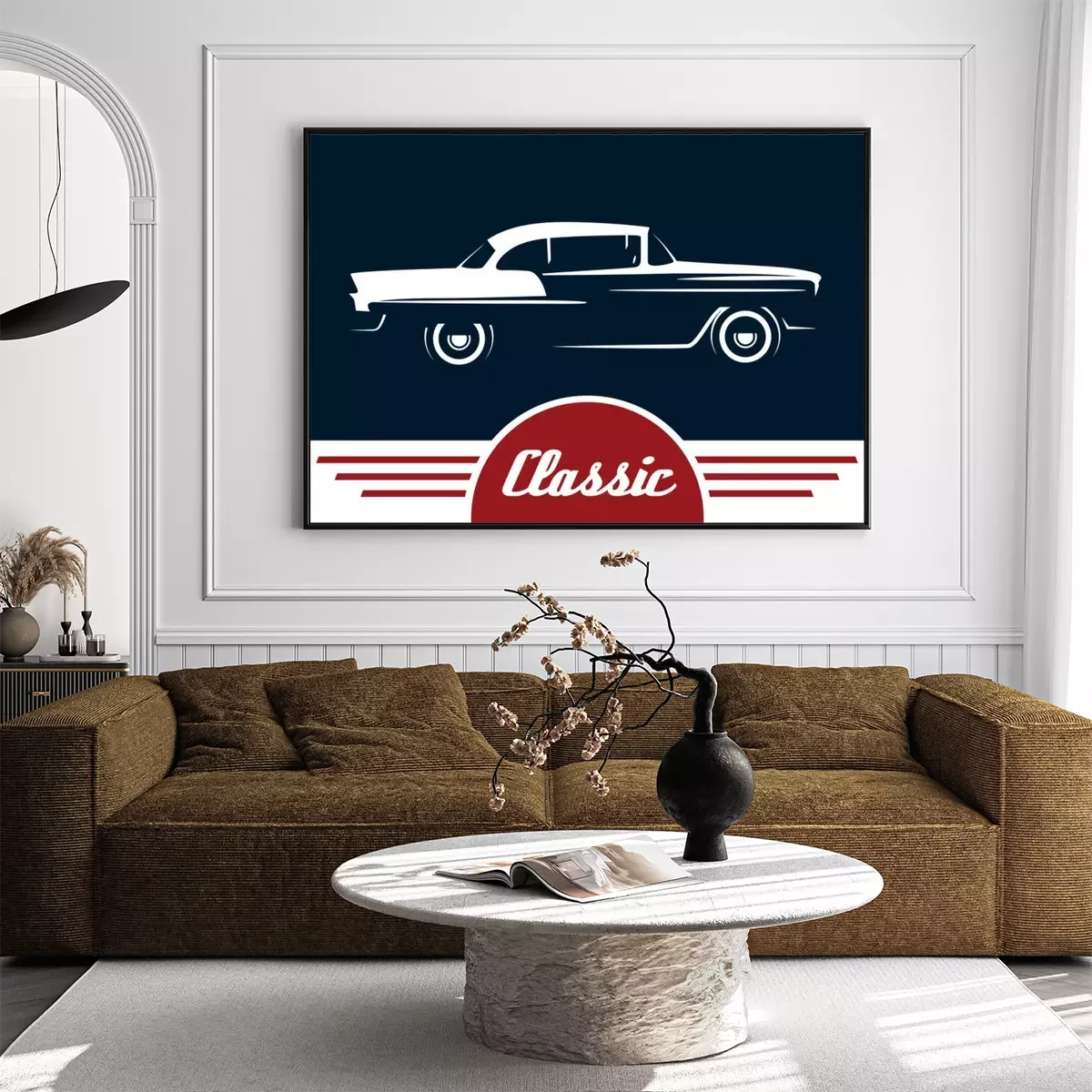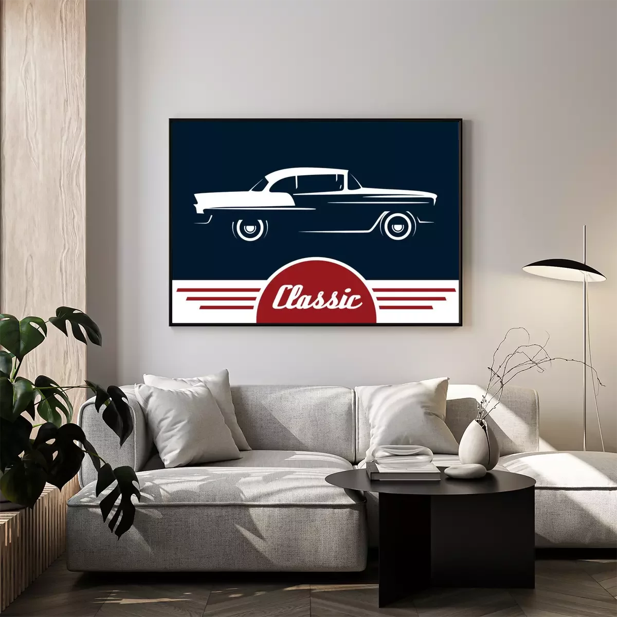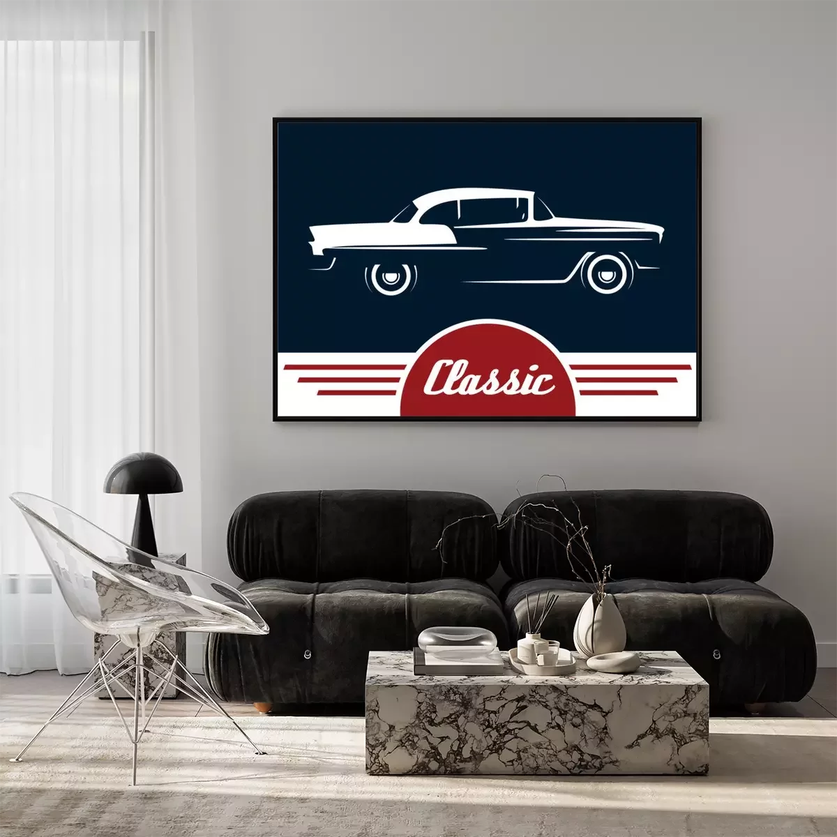Poster Classic Reto car - Vintage voertuig silhouet. vector design