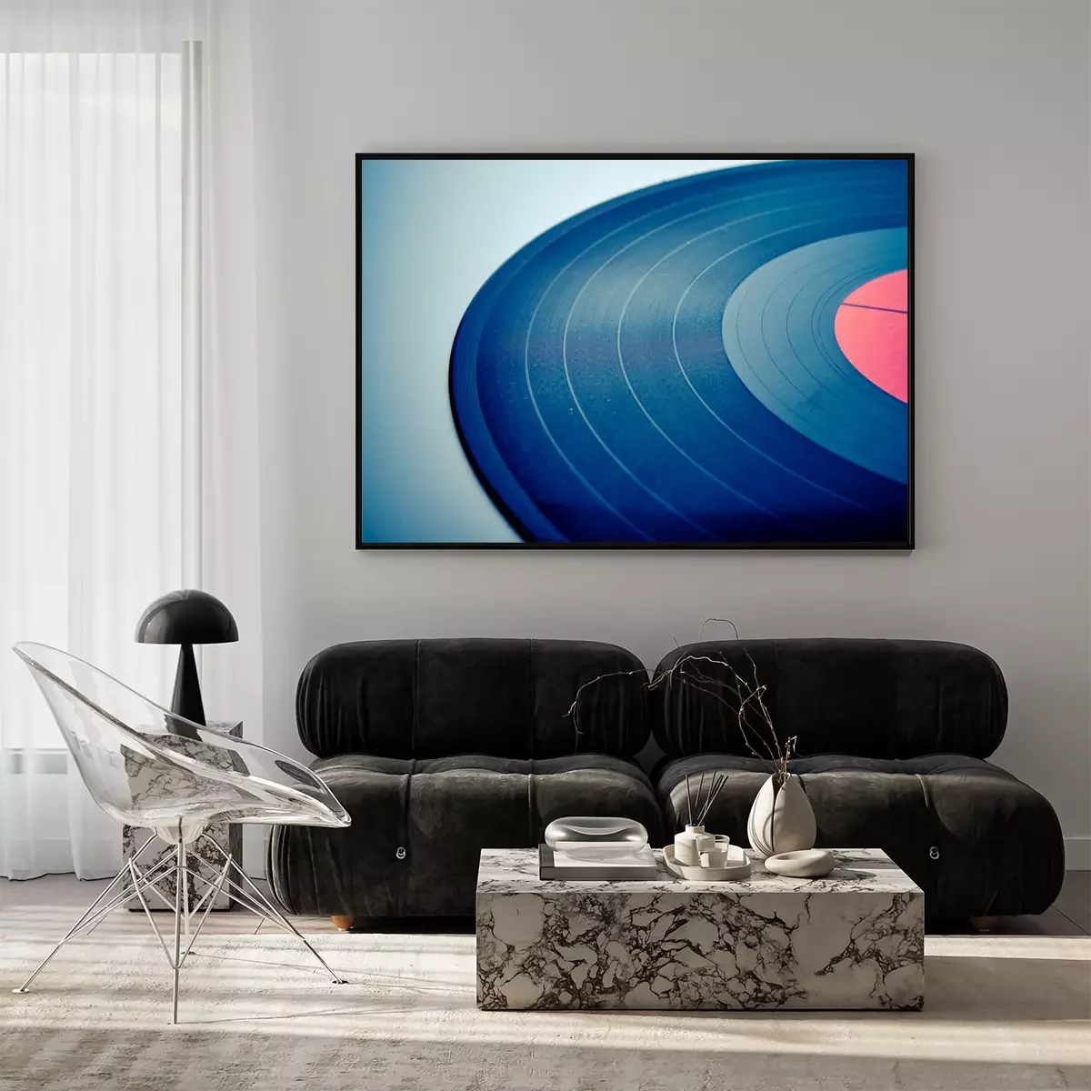 Poster: Close-up van een vinylplaat