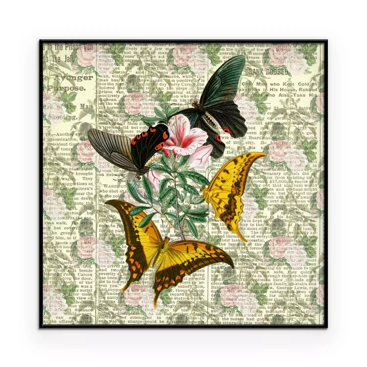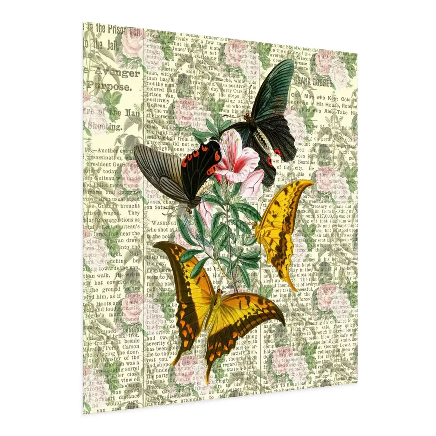 Poster: Collage met vlinders op een tijdschriftachtergrond