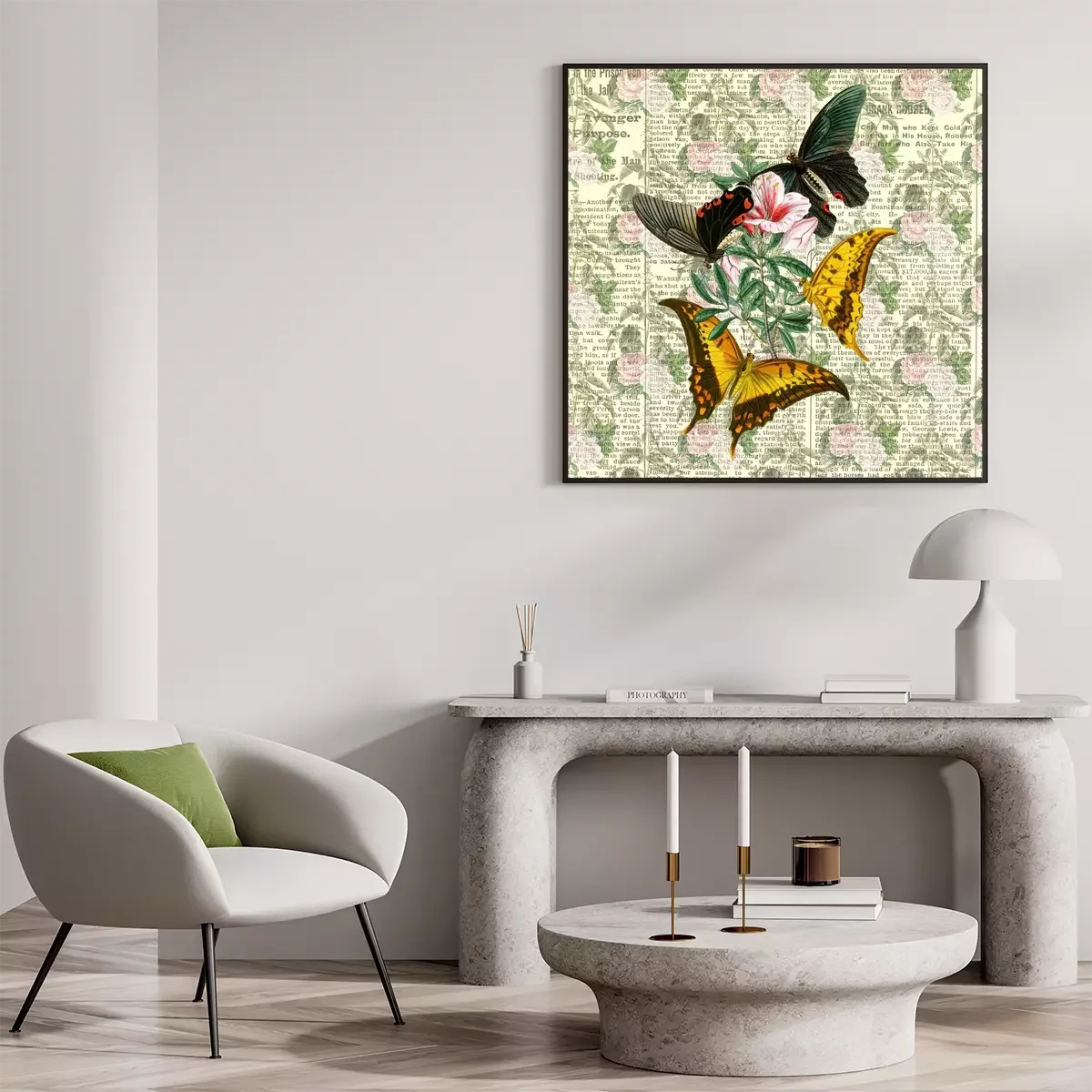 Poster Collage met vlinders op een tijdschriftachtergrond