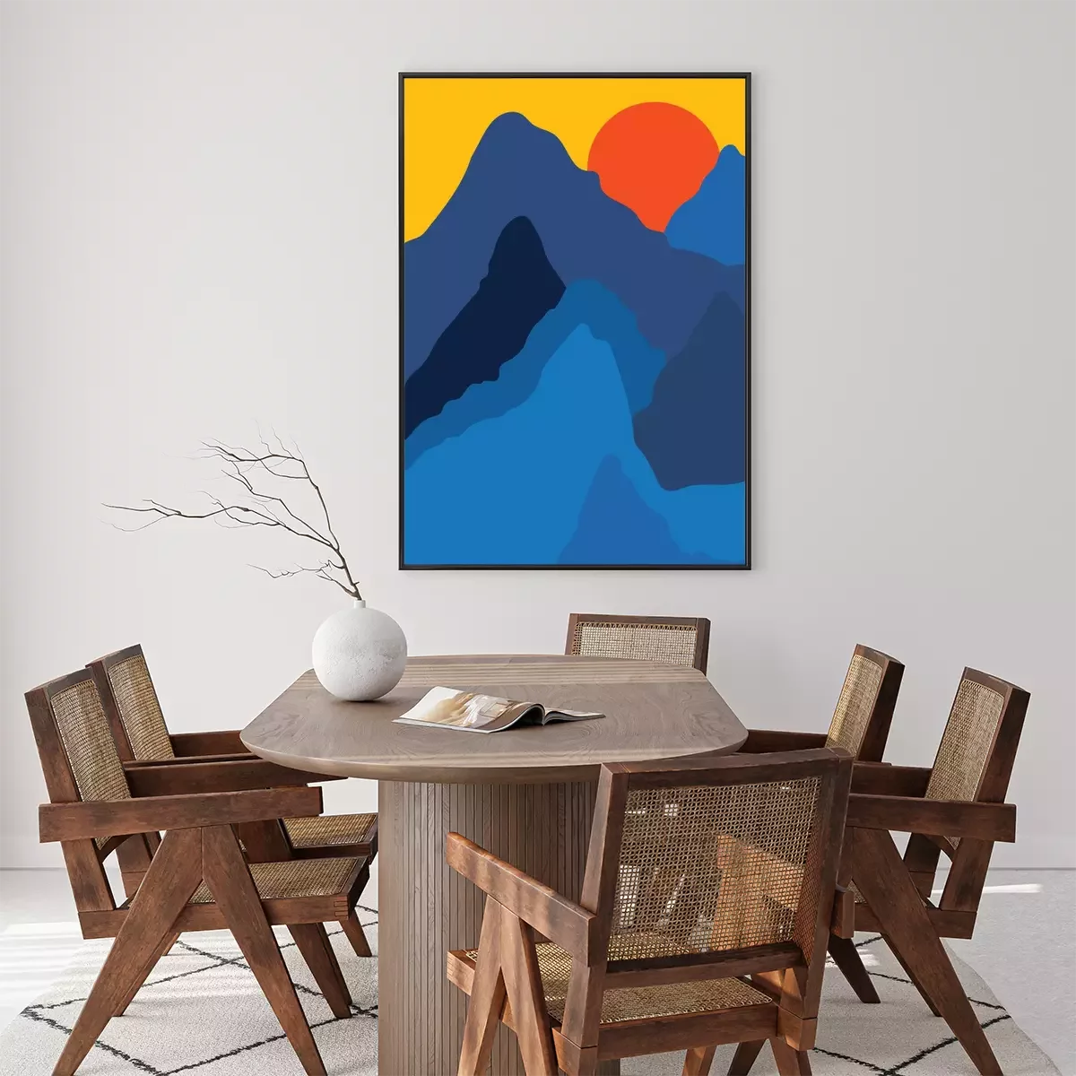 Poster Colorful background with landscape, abstract mountains. Abstract colored backdrop with hand-drawn elements or curves. Creative vector illustration - poster design.