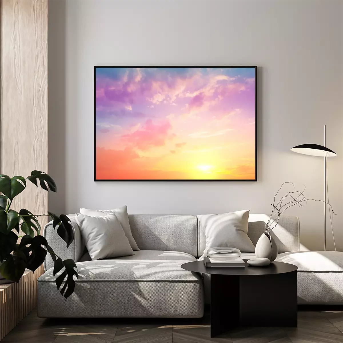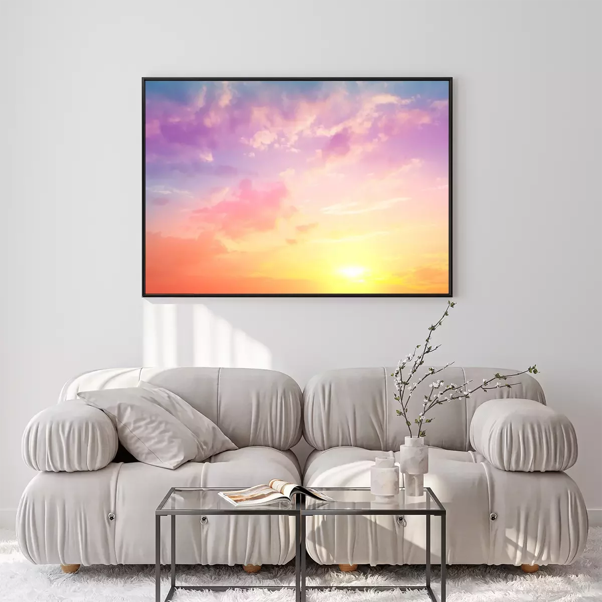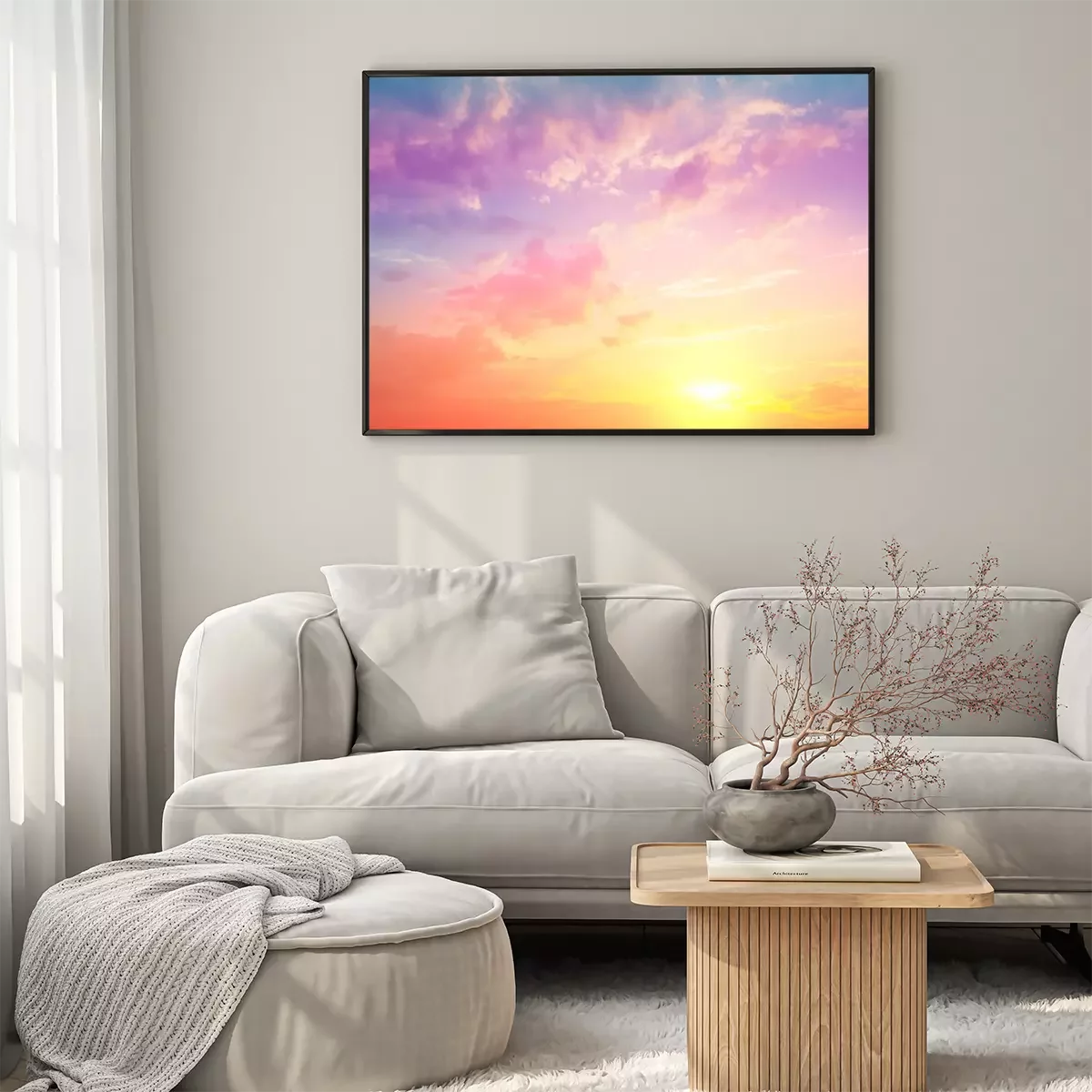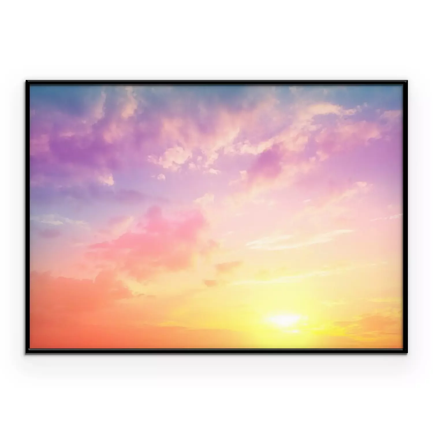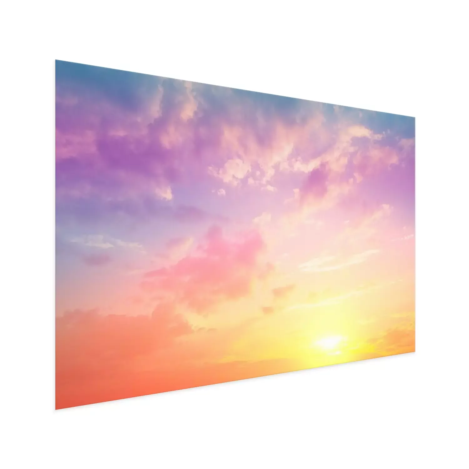 Poster: Colorful cloudy sky at sunset. Gradient color. Sky texture, abstract nature background