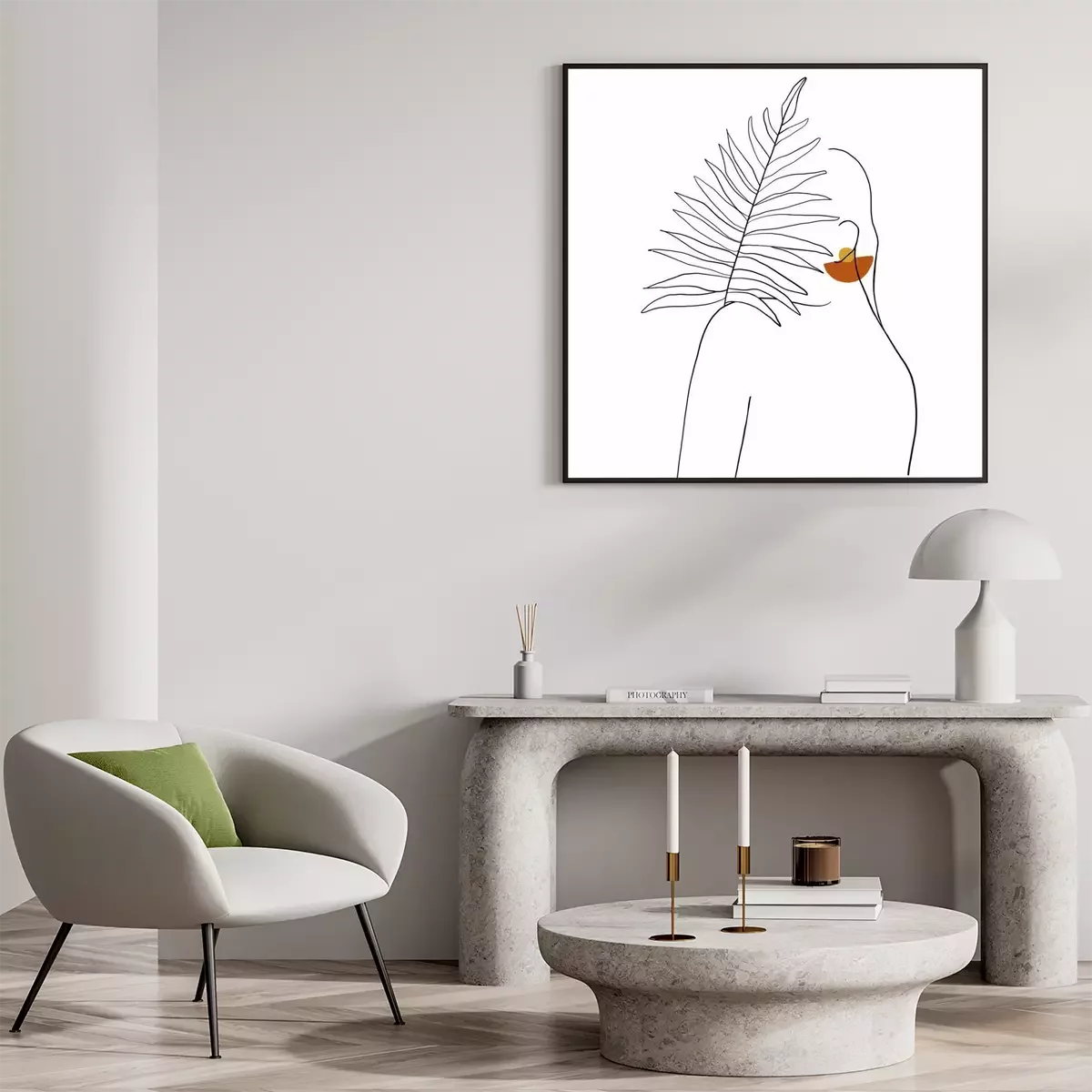 Vrouwengezicht in lijntekeningstijl met plantenmotieven
