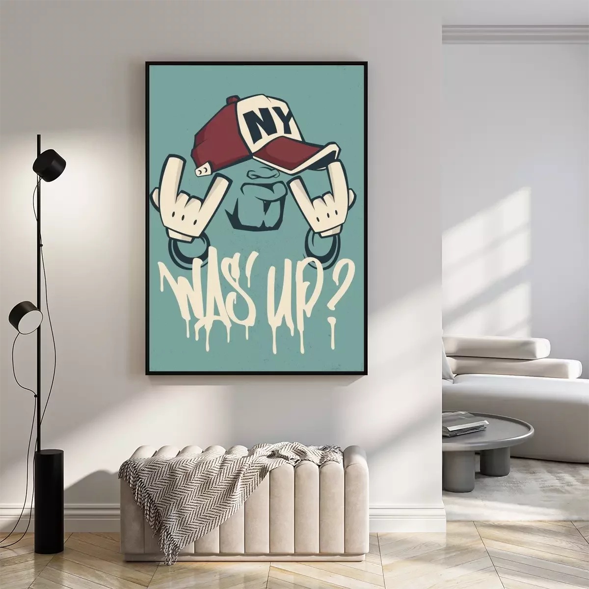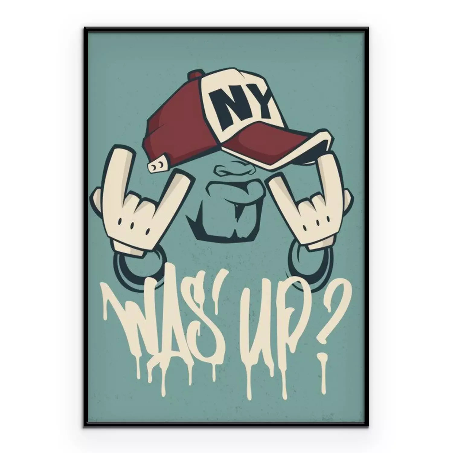 Poster: Cool man in cap, hiphop gezicht vector print ontwerp