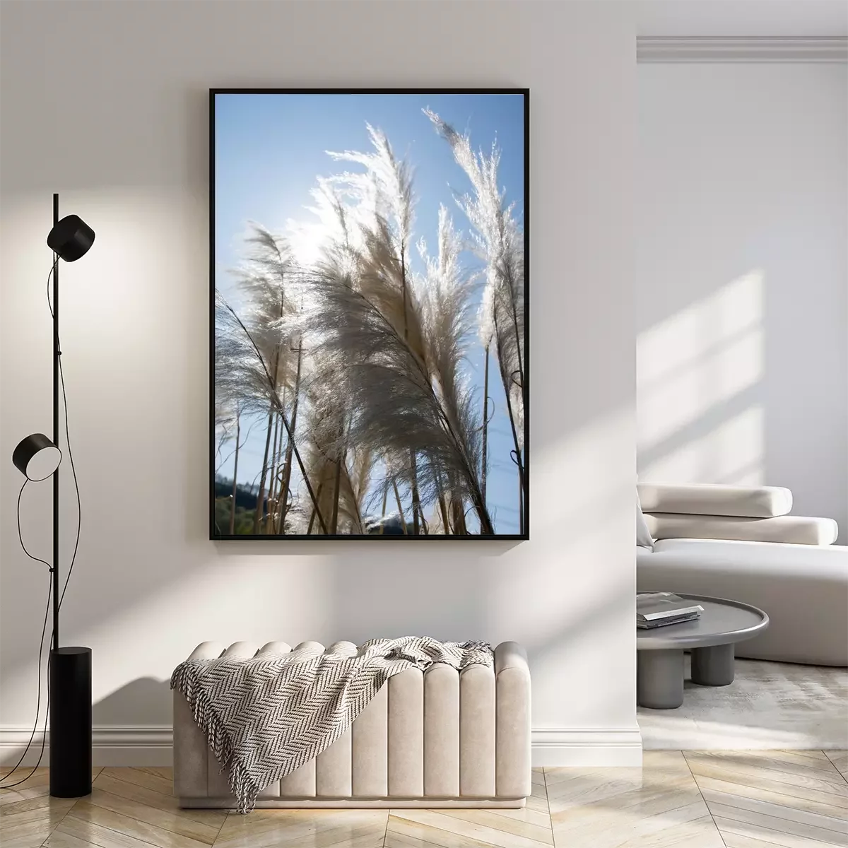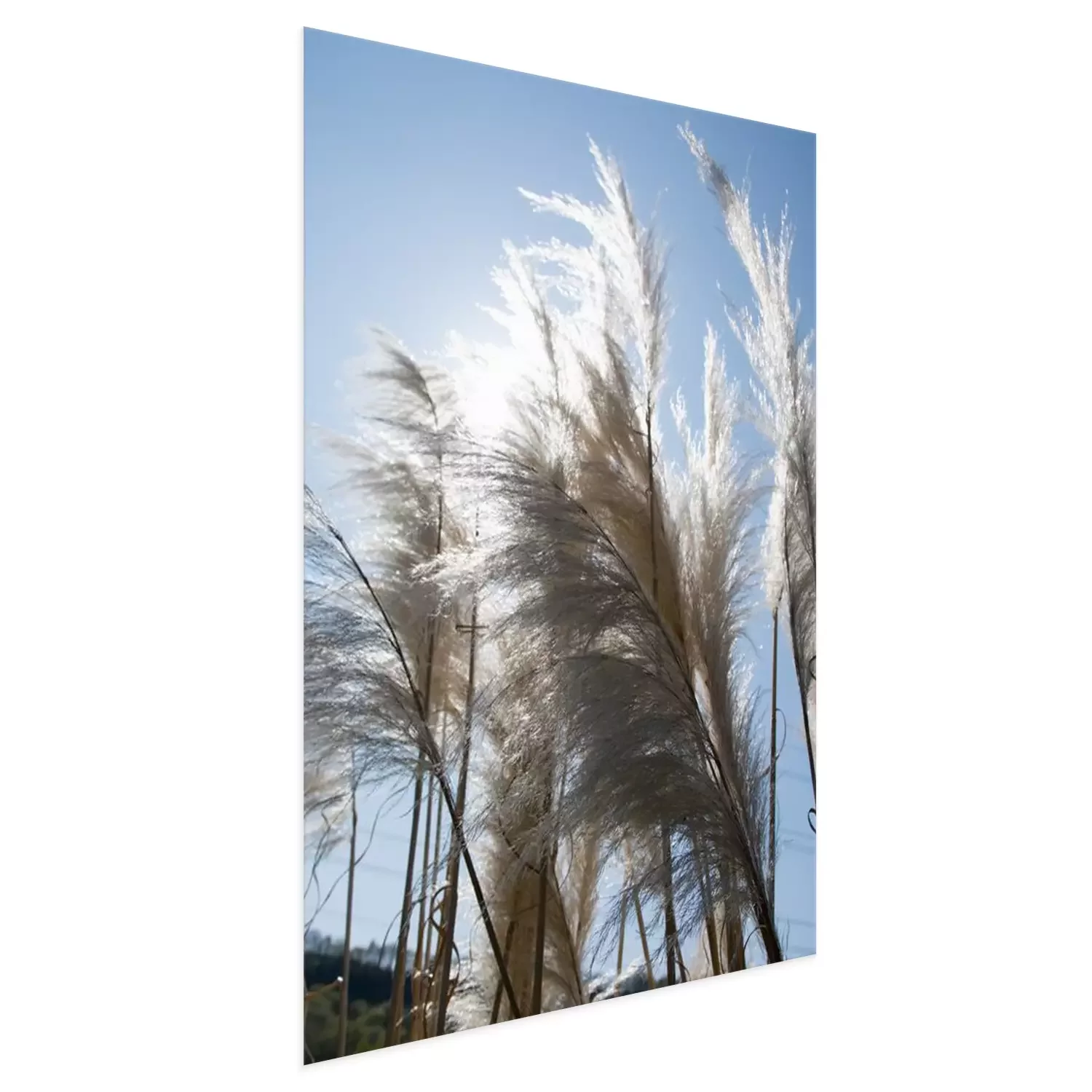 Poster: Cortaderia selloana, commonly known as pampas grass grows in a yorkshire (uk) garden in spring.
