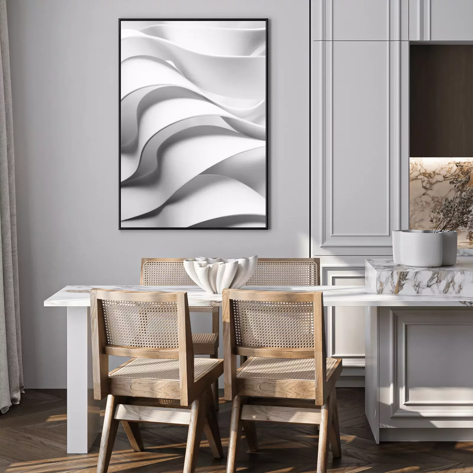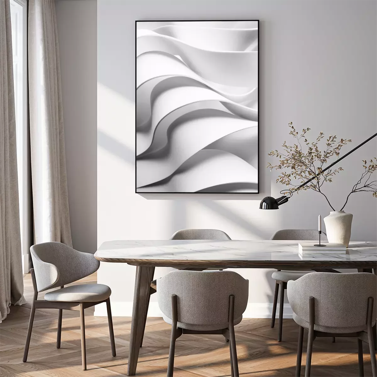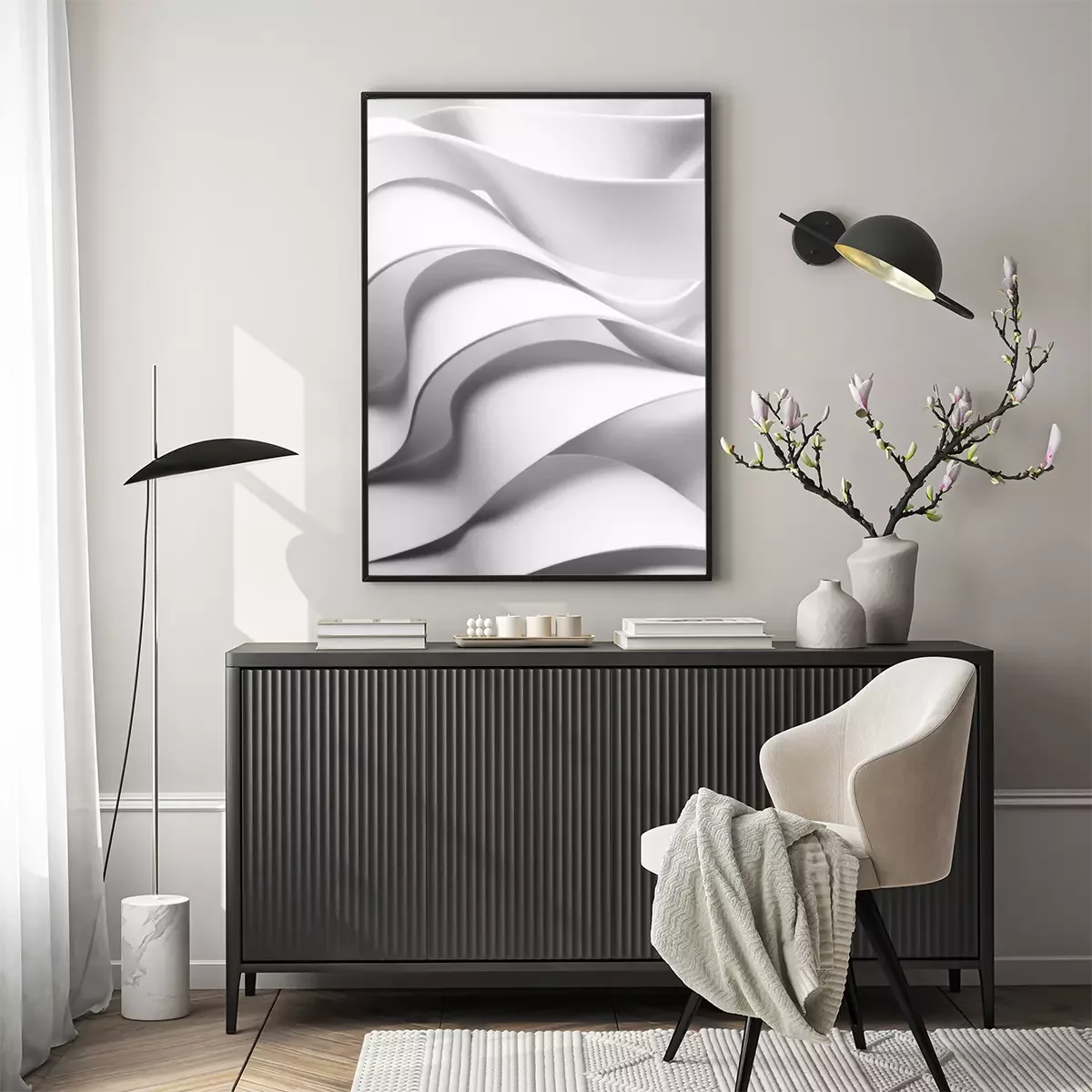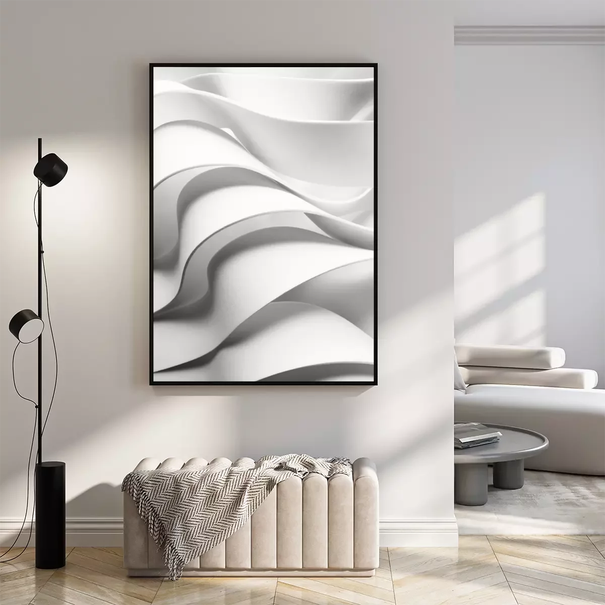 Poster: Curved elements, white abstract background