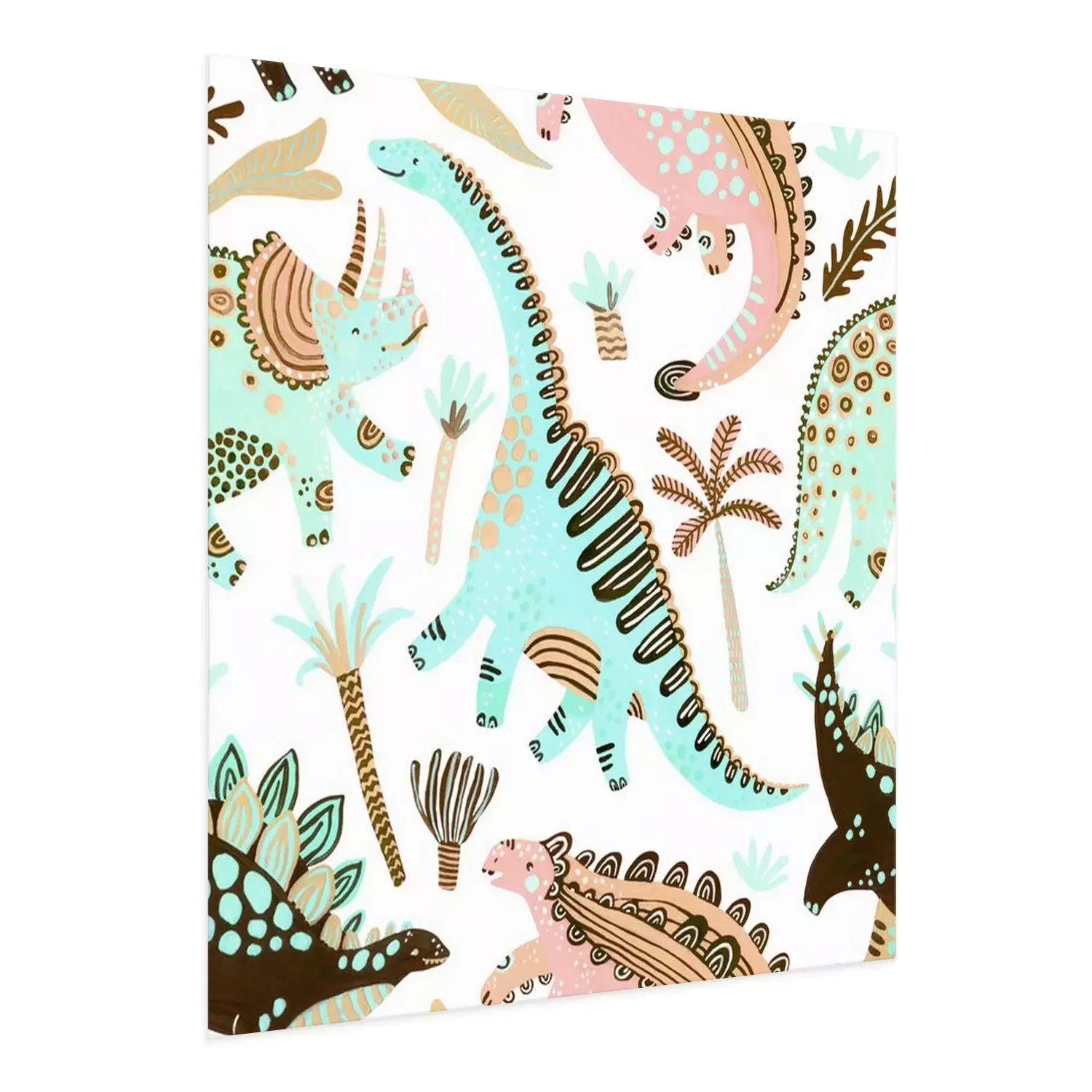 Poster Cute cartoon dinosaurs seamless pattern in scandinavian style
