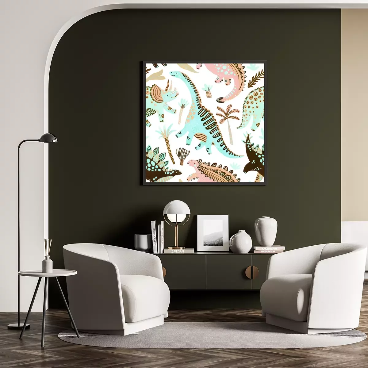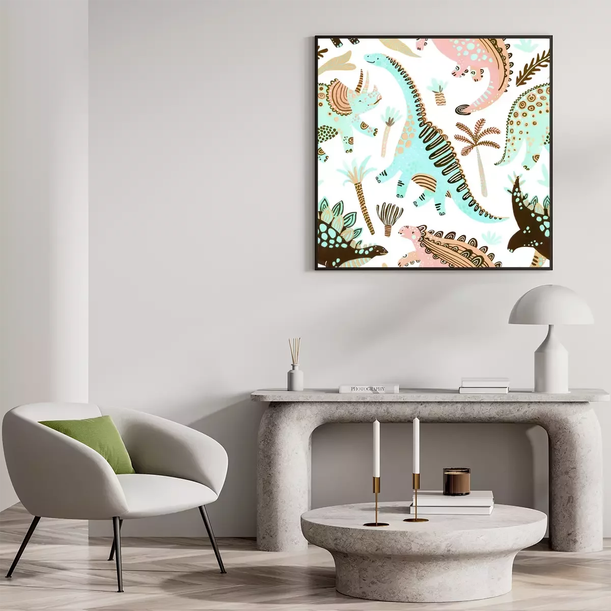 Cute cartoon dinosaur poster in scandinavian style