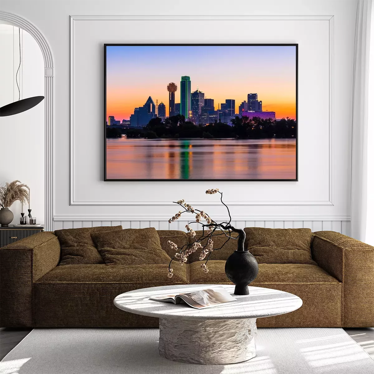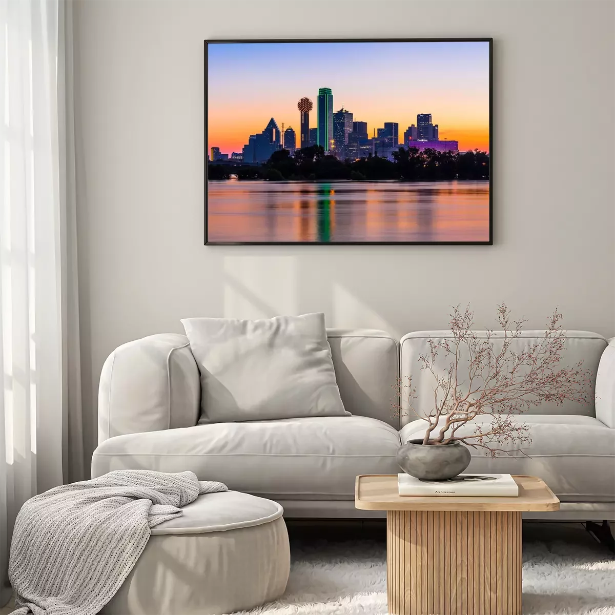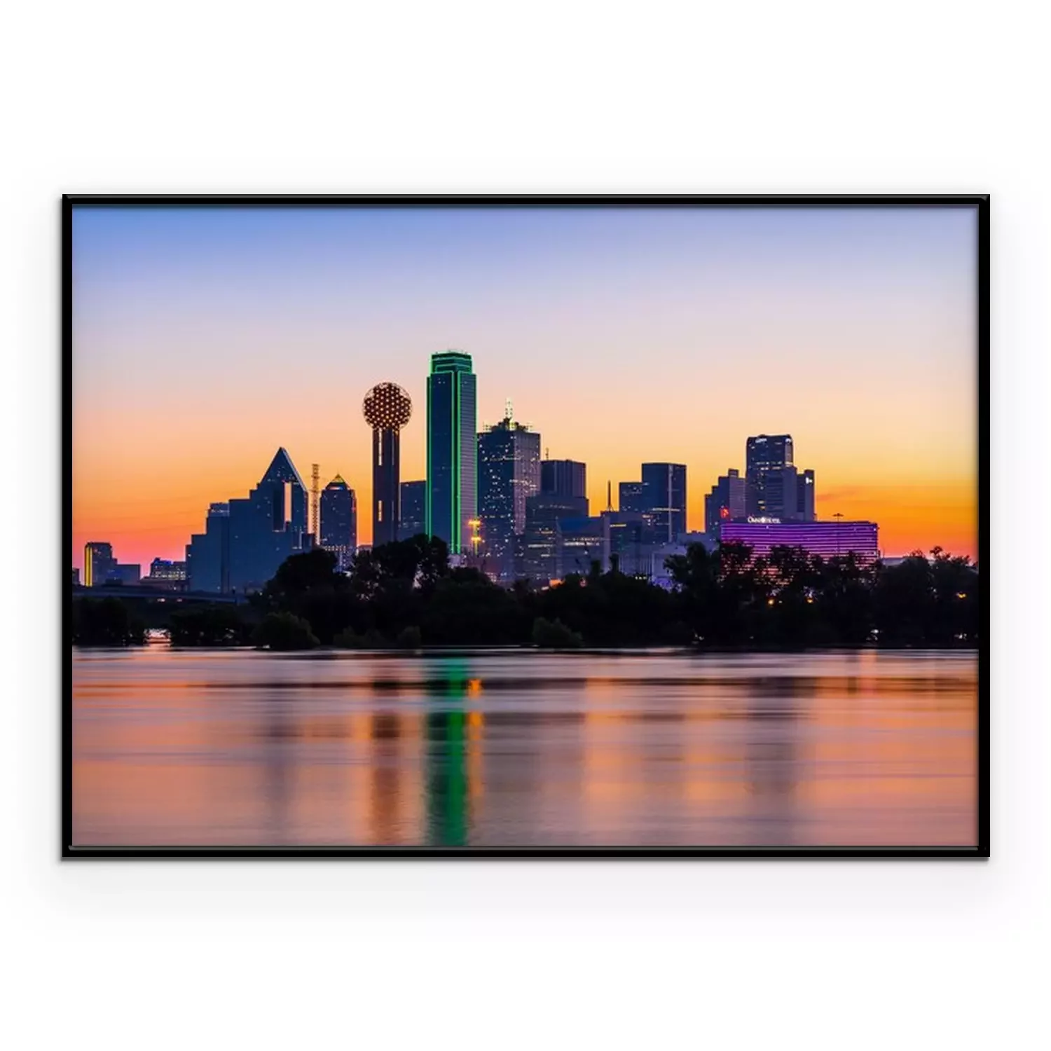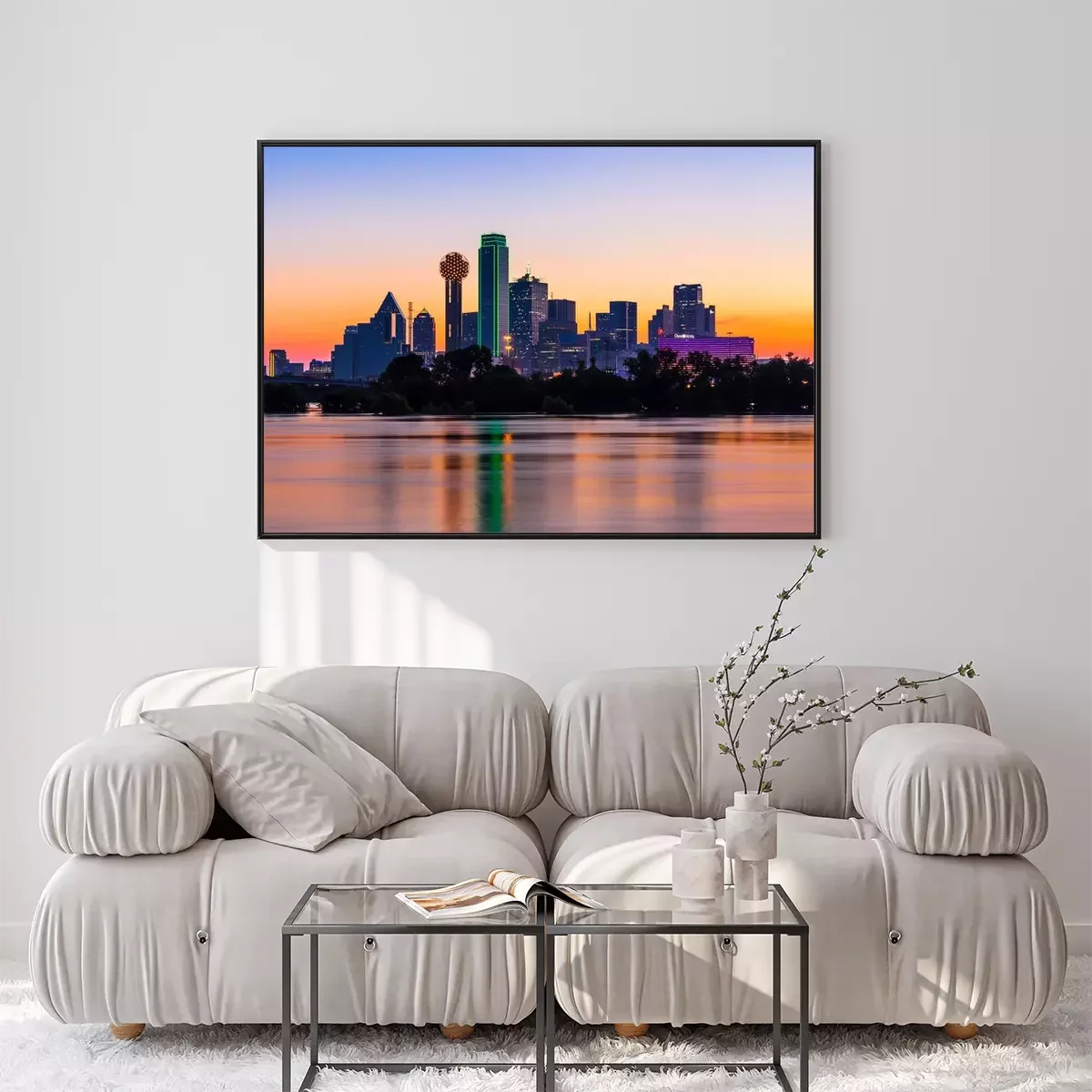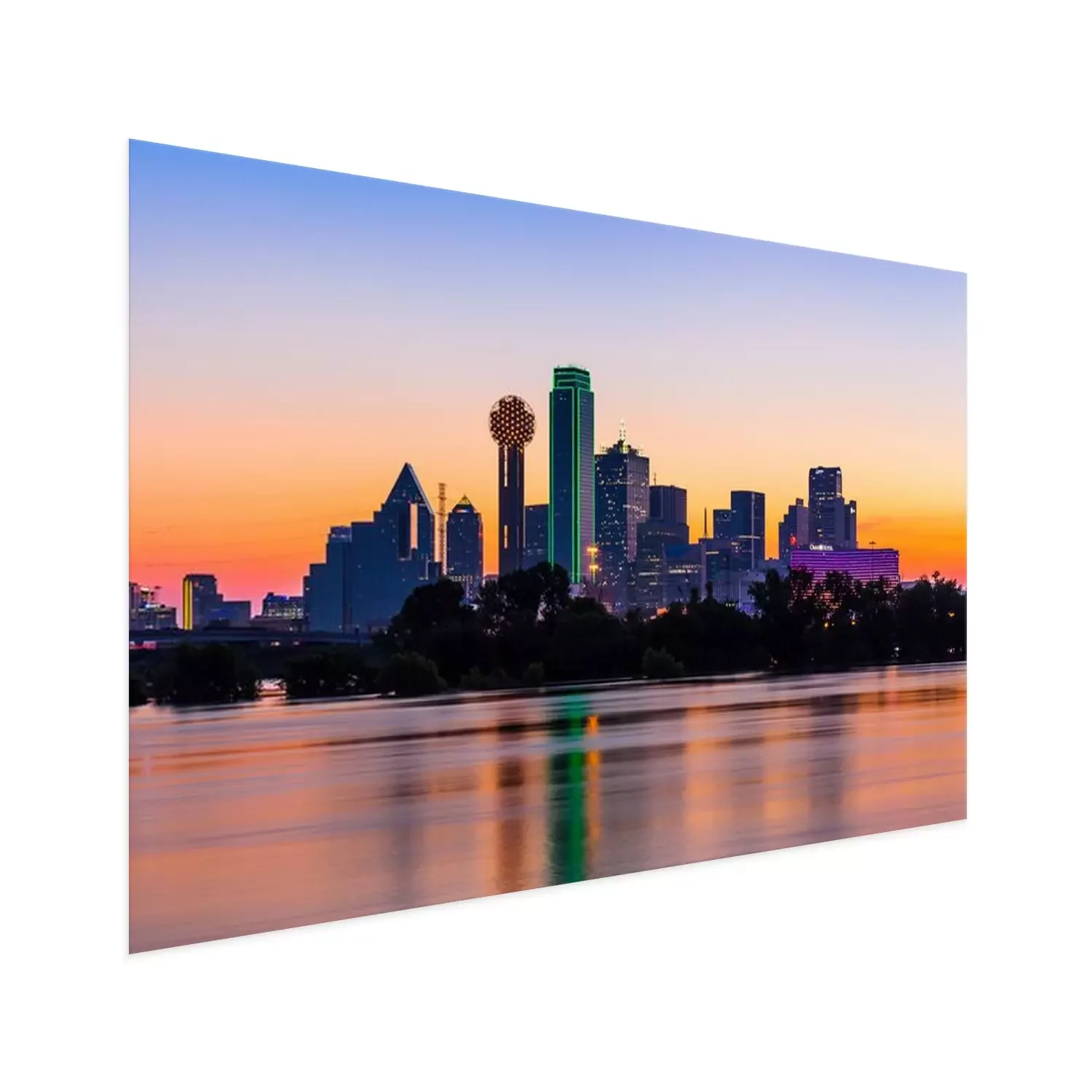Poster: Dallas-panorama van het oosten op het wateroppervlak