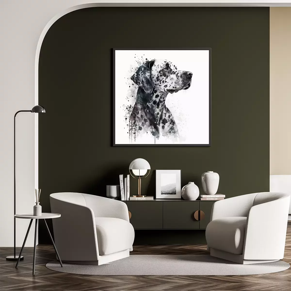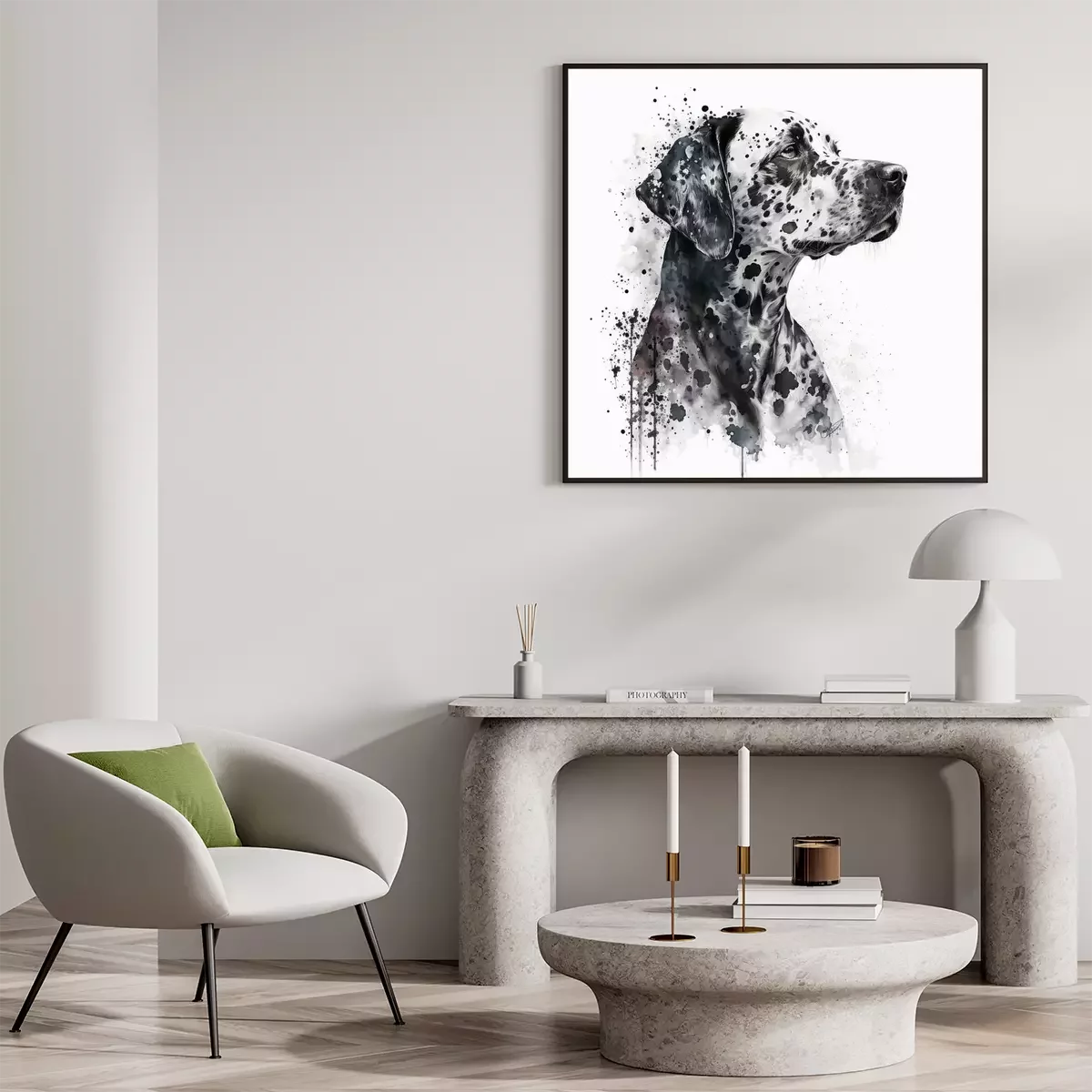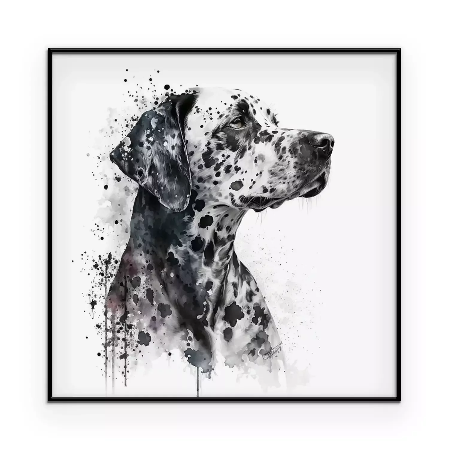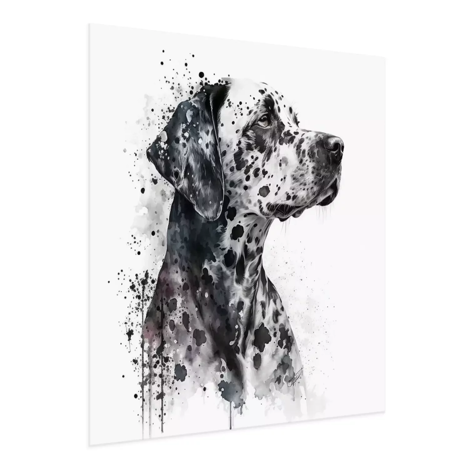 Welkom aan alle liefhebbers van viervoeters. Wij hebben voor jullie de perfecte honden posters. Als jullie huisdieren worden behandeld als gezinsleden, dan is het de moeite waard om deze liefde te benadrukken in het interieur van jullie woning. De snelste manier om dit te doen is met posters. Hond kan een echt opvallende decoratie worden in het arrangement, als er maar een interessante weergave van is. En dat is precies wat wij aanbieden. Wat drukt de door ons gekozen poster uit? Dalmatiër wordt gepresenteerd in een artistieke en expressieve illustratie. Het is een tekening die enerzijds zeer realistisch is, en anderzijds vol van expressie en karakter. Op het portret zijn gespatte zwarte verfplekken zichtbaar, die vlekken op de vacht vormen, maar ook buiten de contouren van het dier uitgaan. Dat is precies wat deze honden posters tot een zeer originele interieurdecoratie maakt, en niet alleen voor een kinderkamer. Hoewel men zou kunnen denken dat posters met honden een kinderlijk karakter zouden hebben, is dat in dit geval helemaal niet zo. Dit is een ontwerp dat ook in de woonkamer, slaapkamer of hal past, als daar precies de ligplaats van het huisdier is. Zeker een voordeel van zo'n afbeelding is de tijdloosheid die onze posters kenmerkt. Hond als muurdecoratie zal zeker niet vervelen als je van viervoeters houdt. Het is dus de moeite waard om voor zo'n decoratie te kiezen om een aangename inrichting te creëren voor vele jaren. Het voordeel van deze oplossing wordt ook beïnvloed door de kleurstelling, beperkt tot zwart en wit, die onze posters kenmerkt. Dalmatiërs zijn uiterst effectief vanwege hun vlekken, en zo'n patroon zal ook de aandacht trekken. Bovendien is dit kleurenduo zeer universeel, omdat het past bij zowel kleurrijke als ingetogen arrangementen. Er zijn dus veel mogelijkheden om dergelijke posters te gebruiken. Hond past ook in de kamer van een kind of tiener. Als een kleintje droomt van een hondje, maar nog te jong is om ervoor te zorgen, kunnen een tijdelijke oplossing posters zijn. Hond van het ras dat zijn favoriet is, zal een schot in de roos zijn. In een jeugdige inrichting zal zo'n modern ontwerp een opvallende dominantie worden en tegelijkertijd de liefde voor de viervoeter benadrukken. Het is erg belangrijk om posters te kiezen die passen bij de gezinsleden. Honden die deel uitmaken van het gezin zijn een uitstekende inspiratie om een interieur te decoreren.