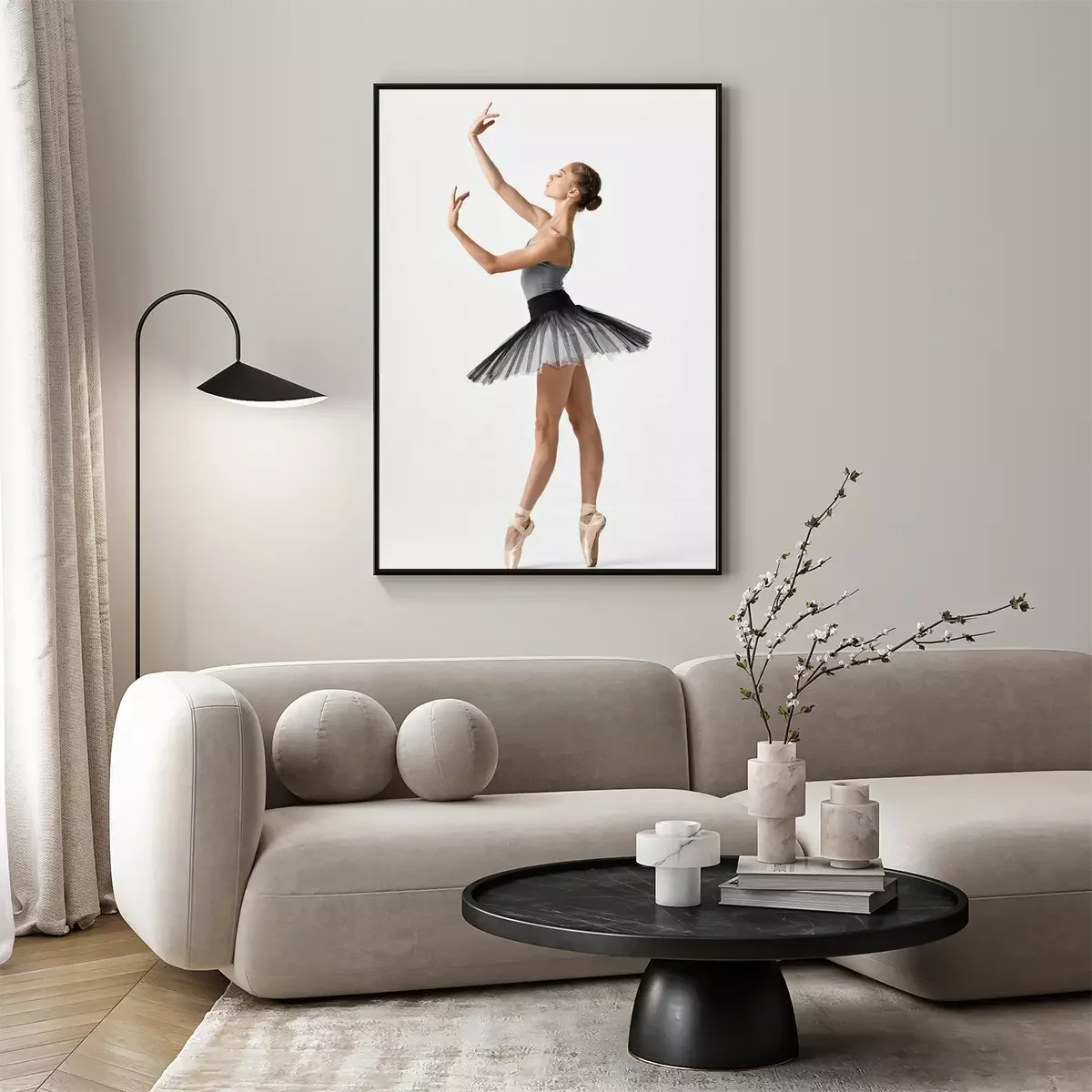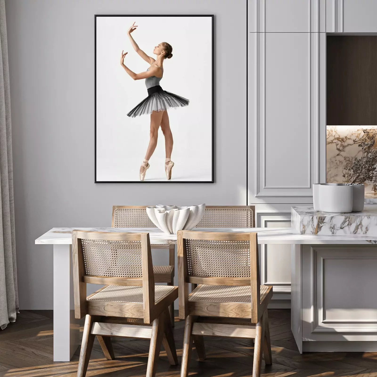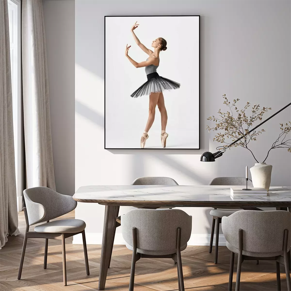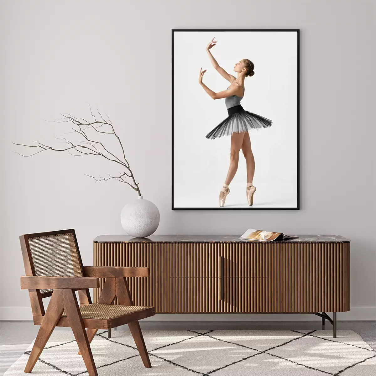 Poster: Dans- en balletballerina in zwart-wit kostuum