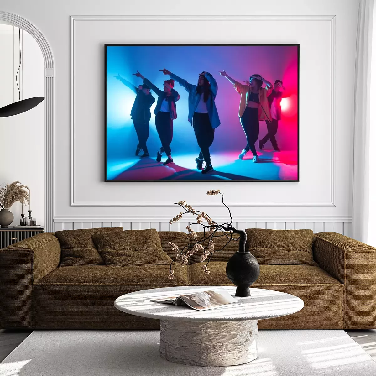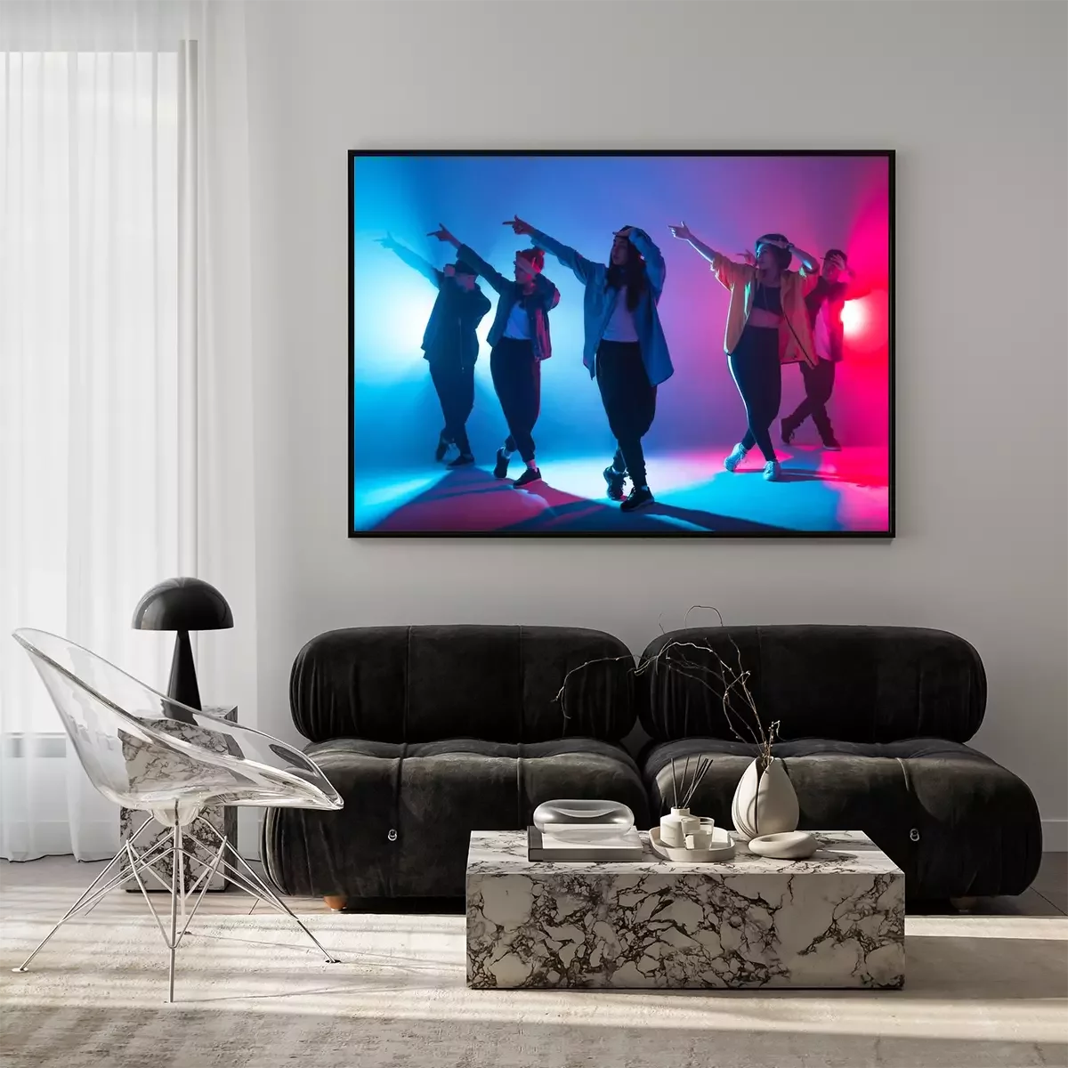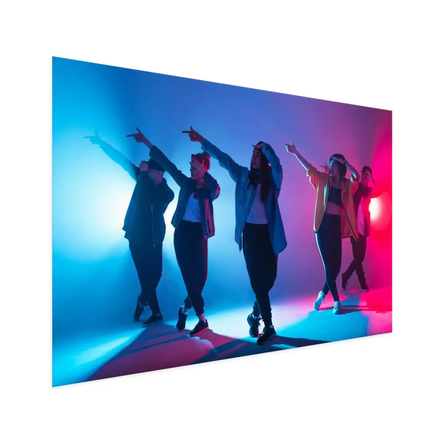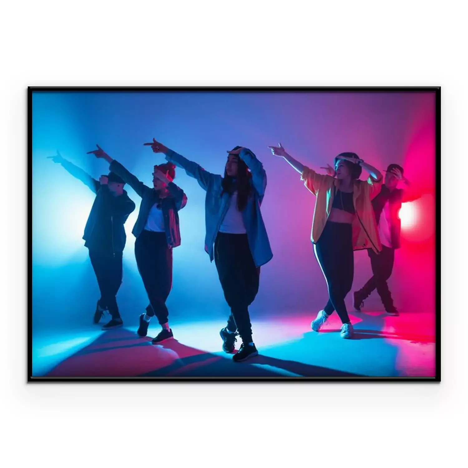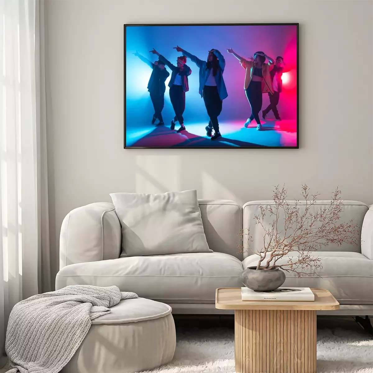 Poster: Dansers en dansers die een dansroutine uitvoeren